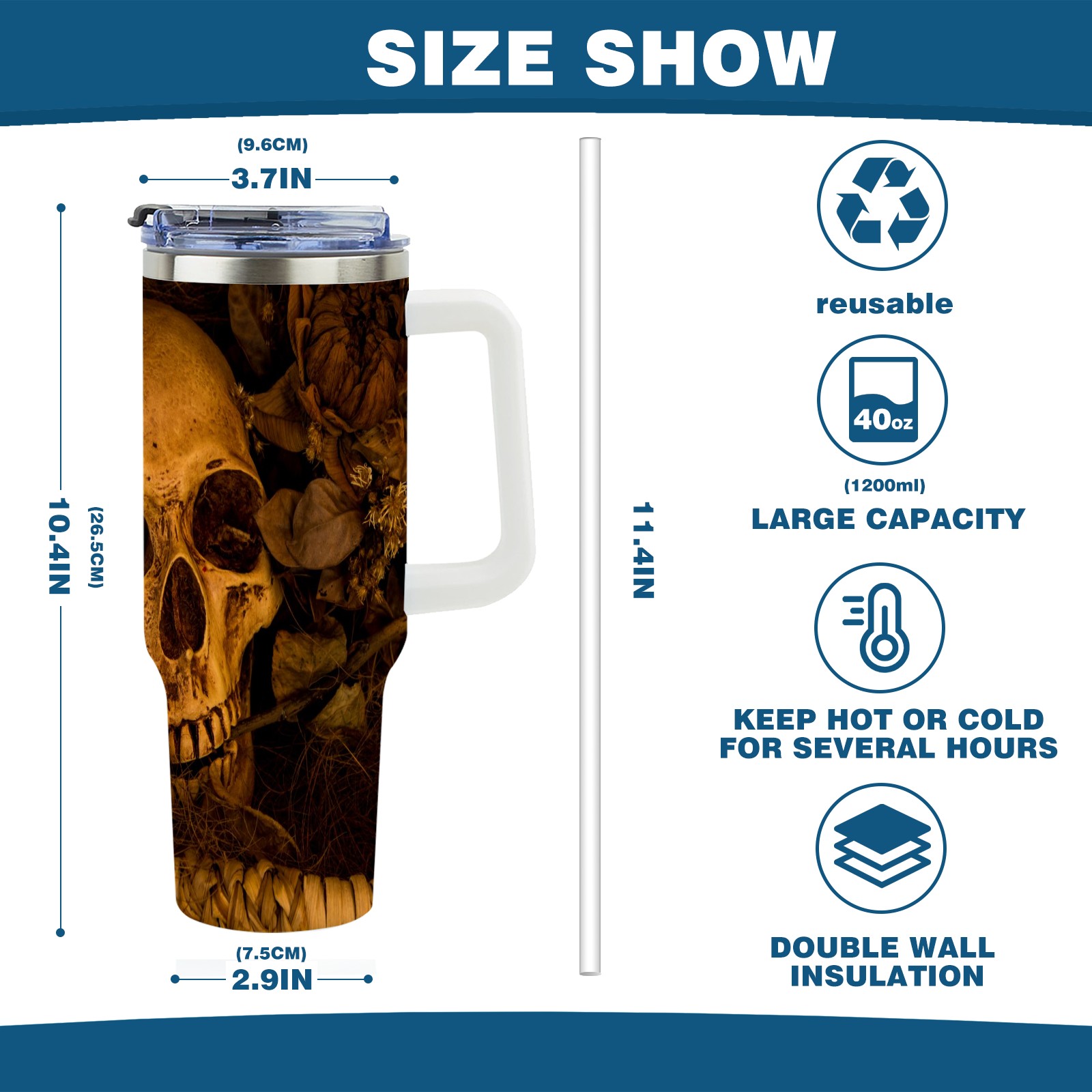 40 унций полностью напечатанный автомобильный стакан Retro Skull Floral