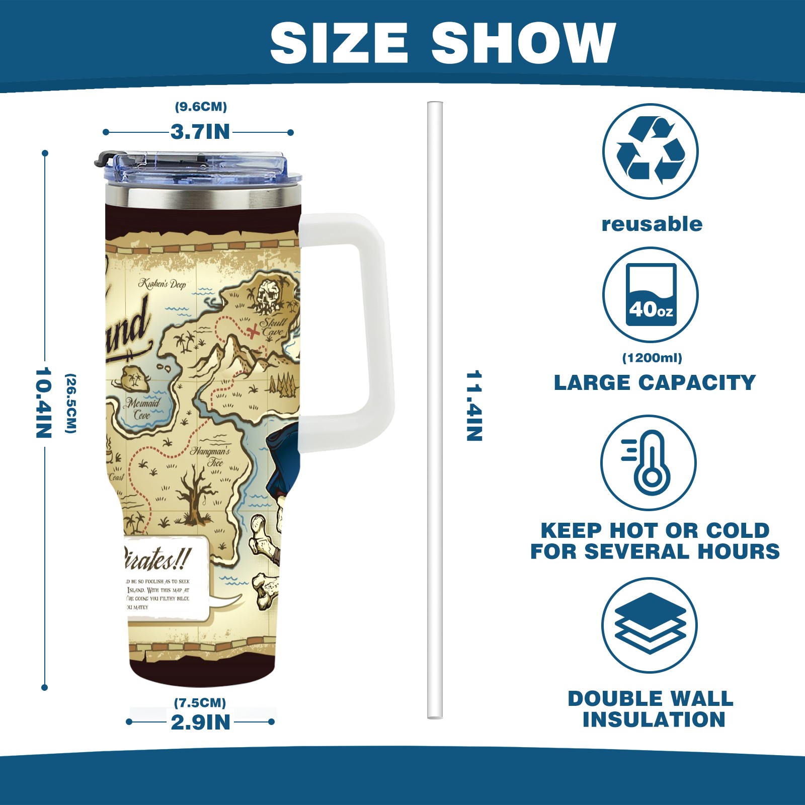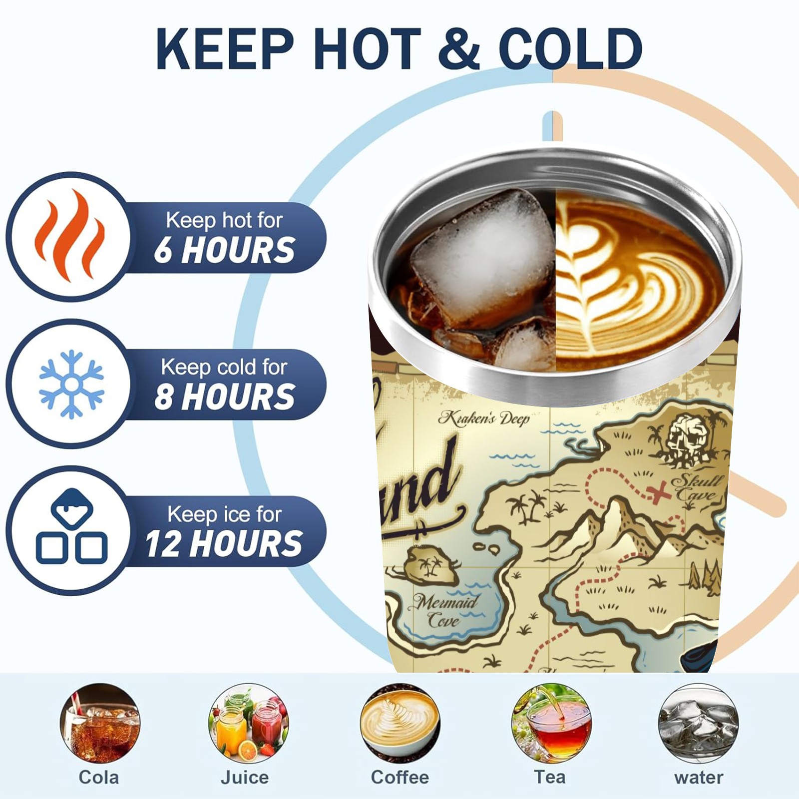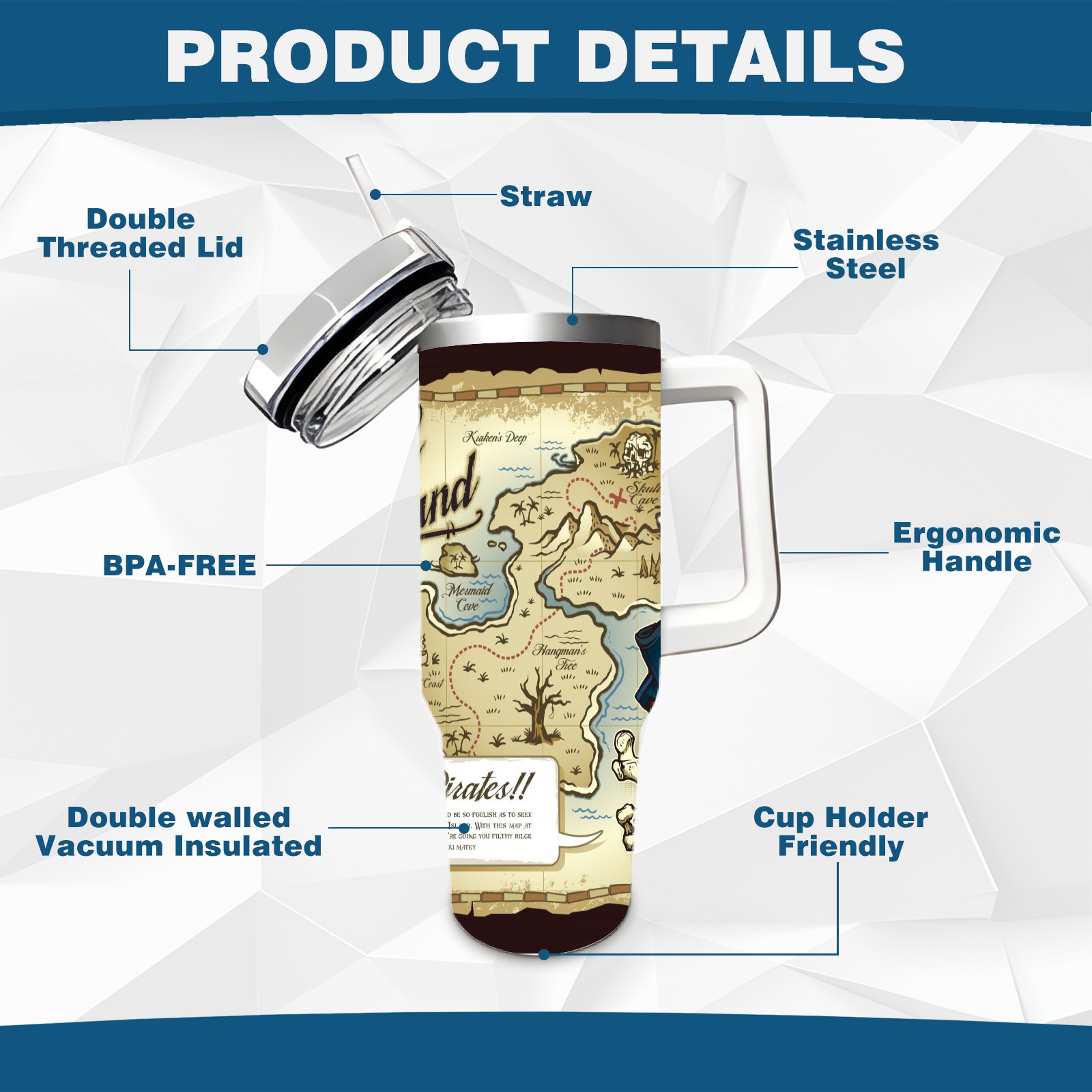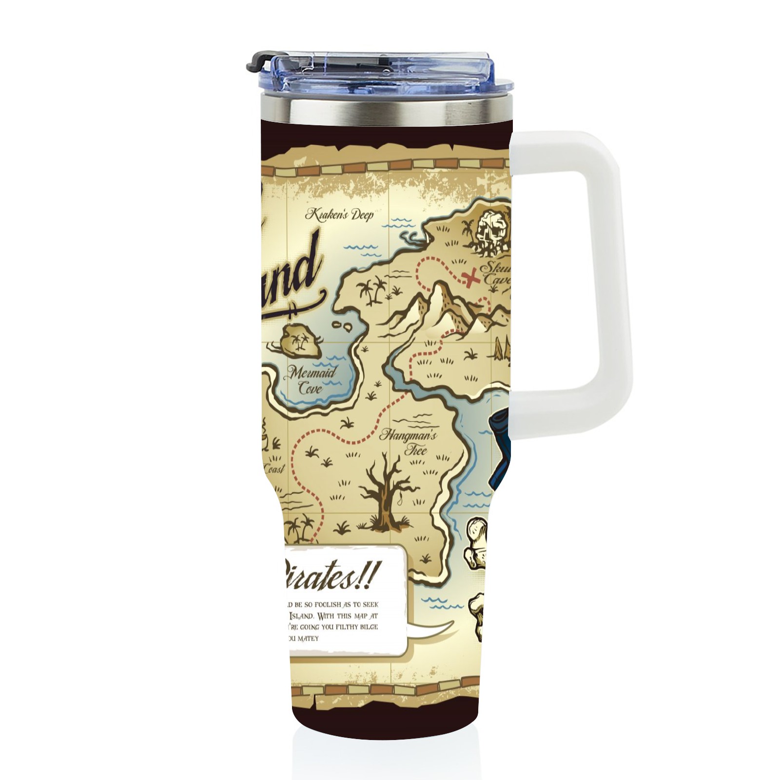 40 унций полностью напечатанный автомобильный стакан Old Retro Skull Island Treasure Pirate Map