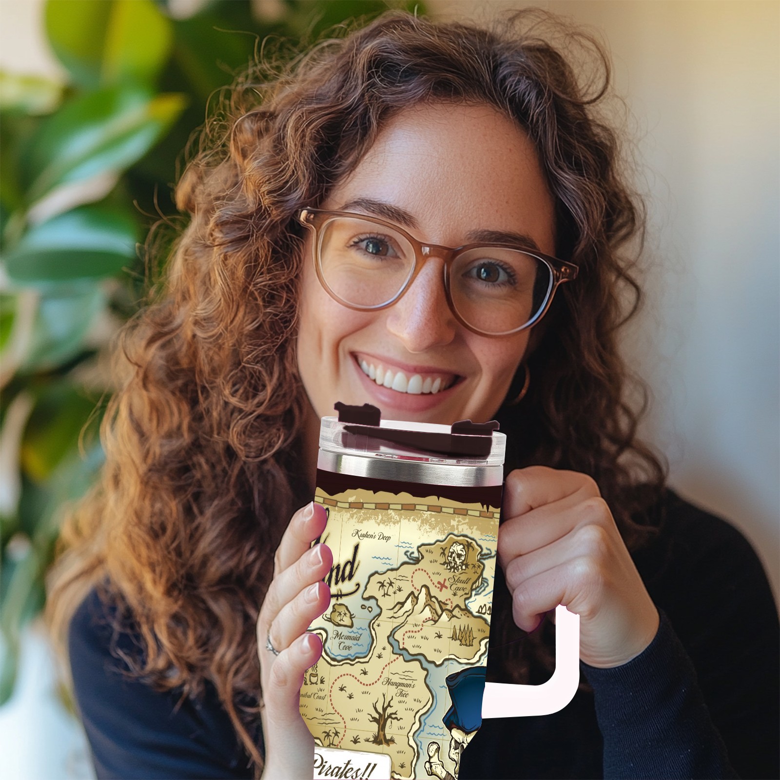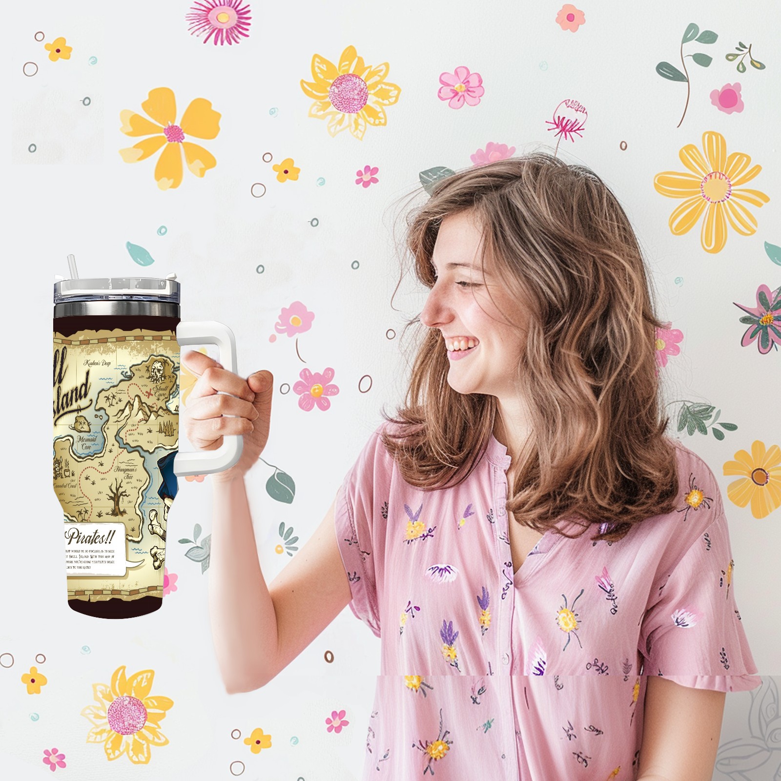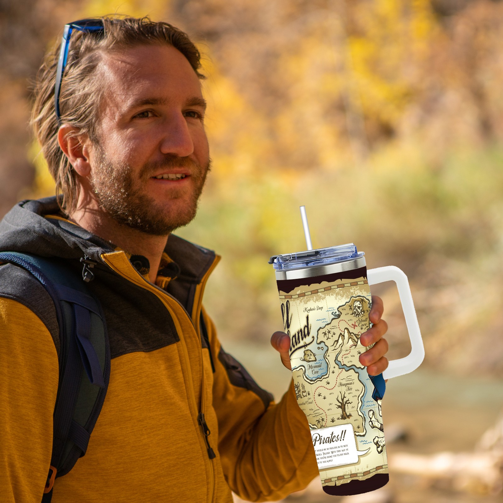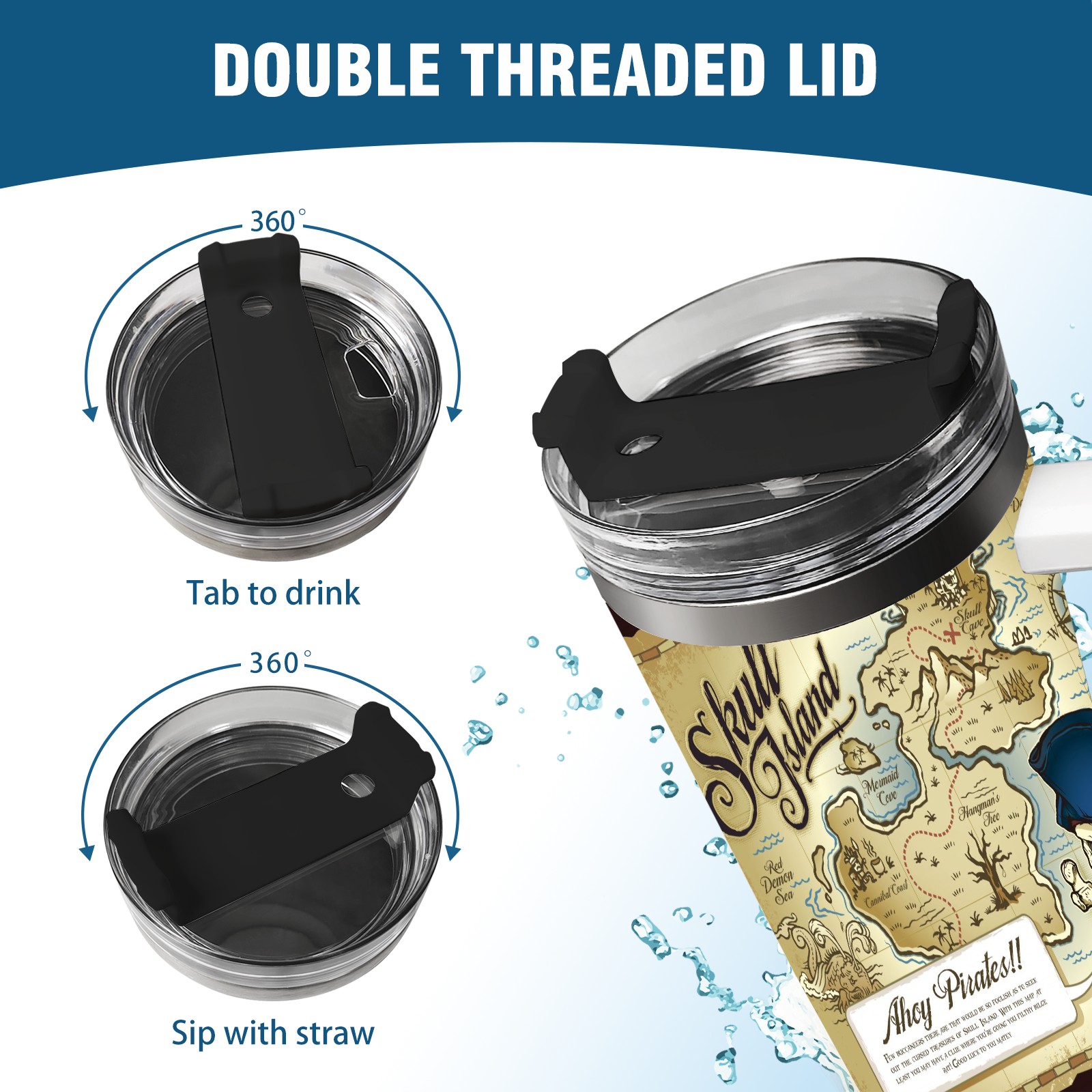 40 унций полностью напечатанный автомобильный стакан Old Retro Skull Island Treasure Pirate Map