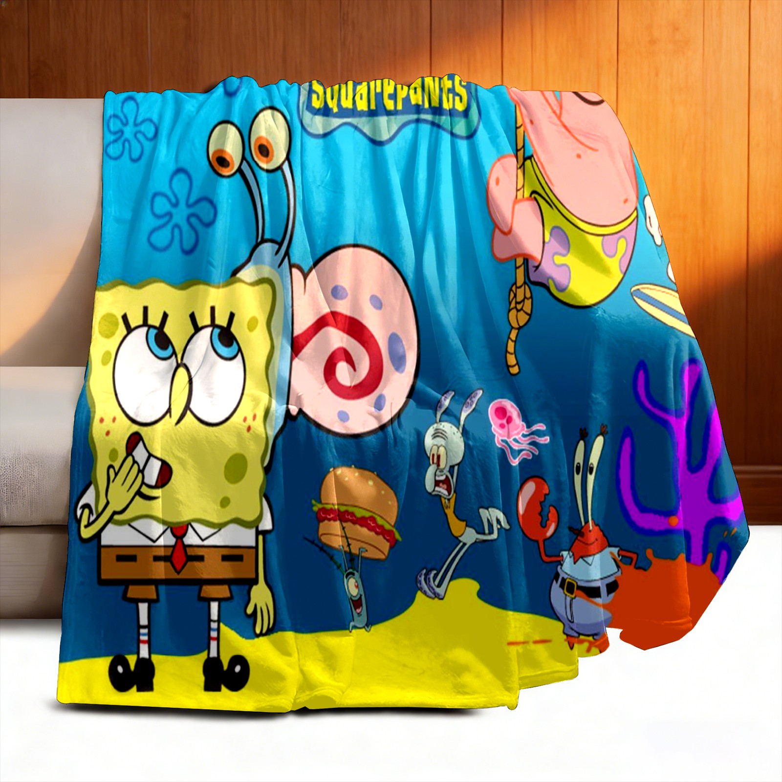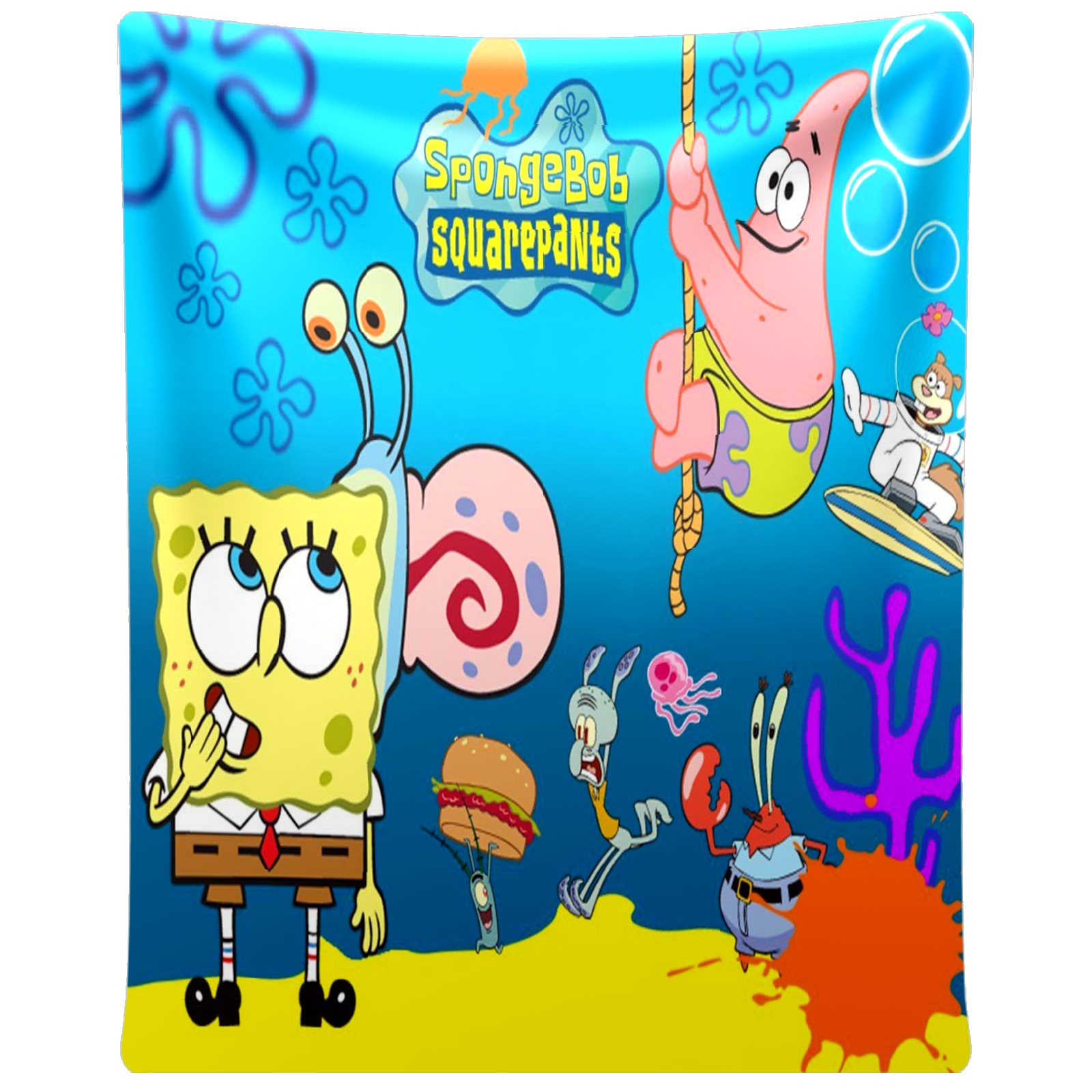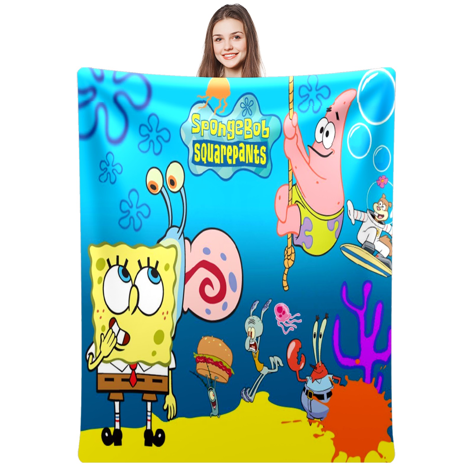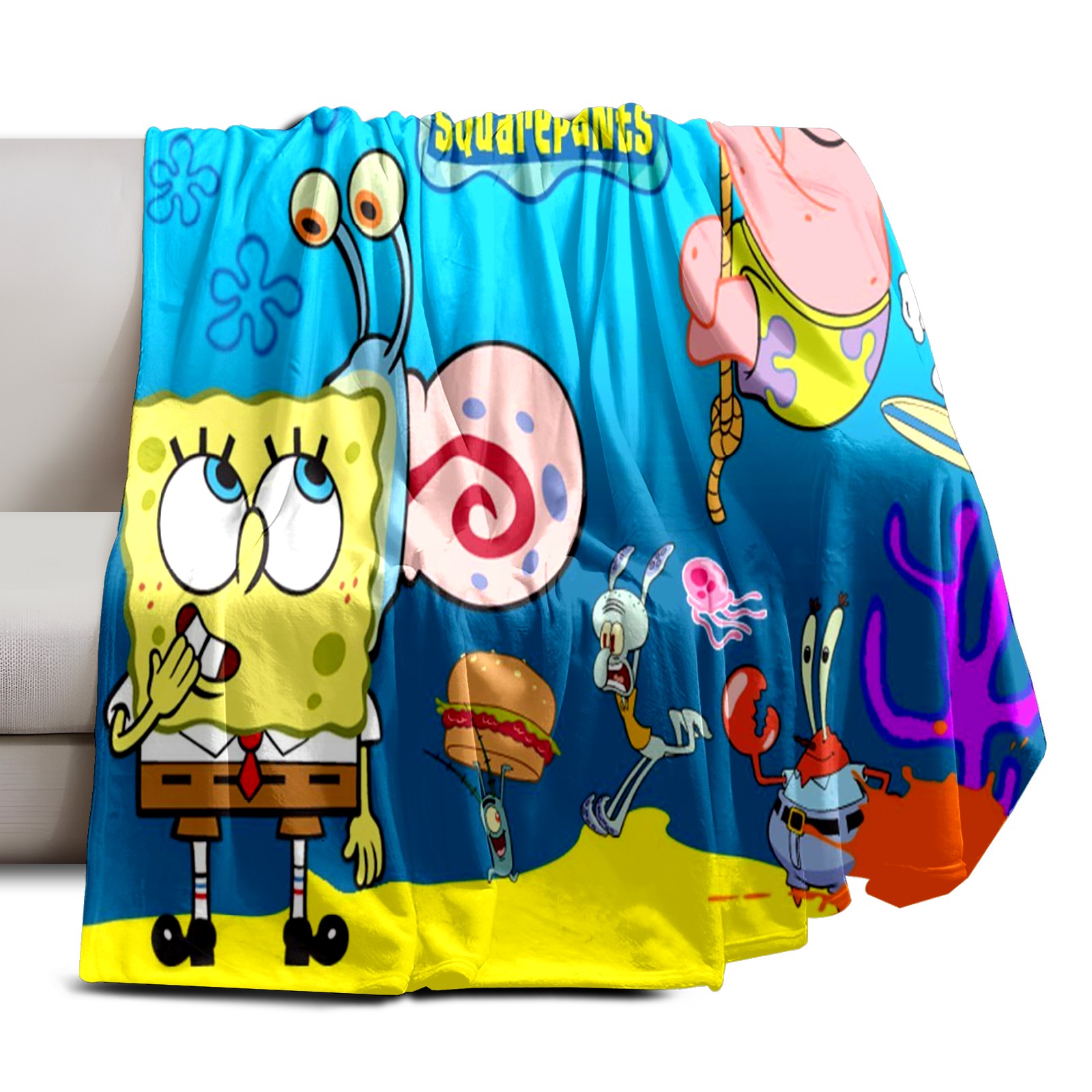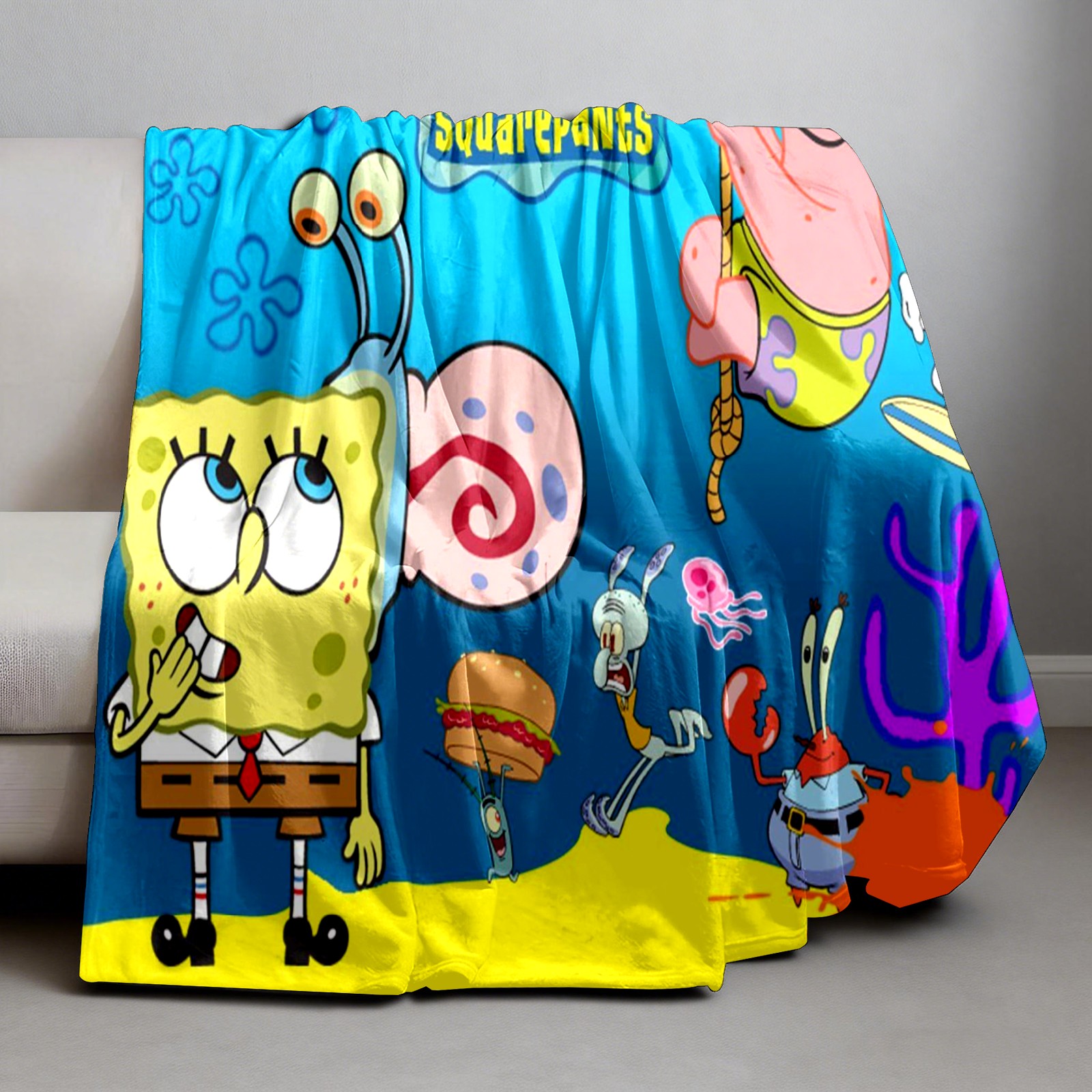 Премиальная фланелевая одеяло SpongeBob Gary Patrick Sandy Squidward Hamburger