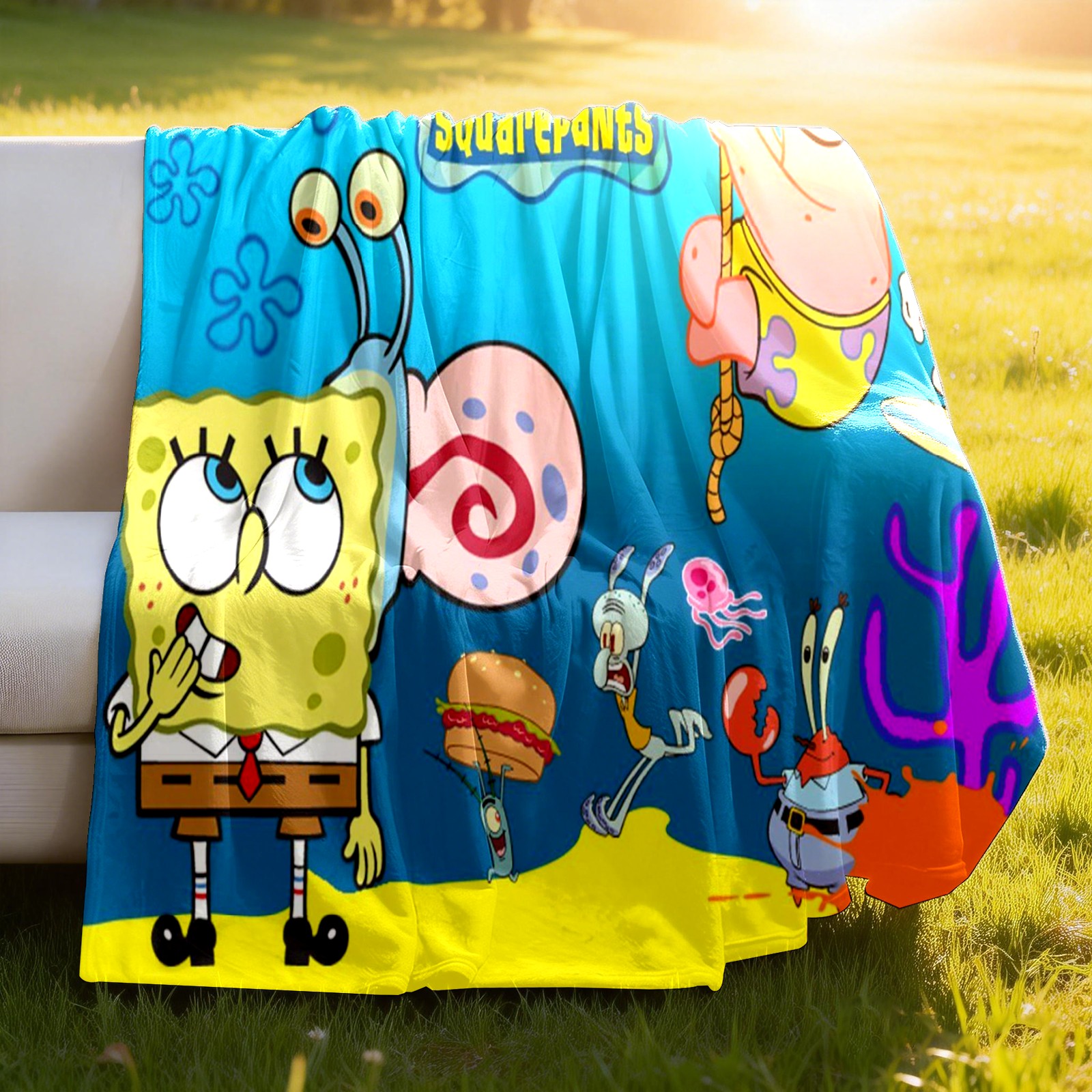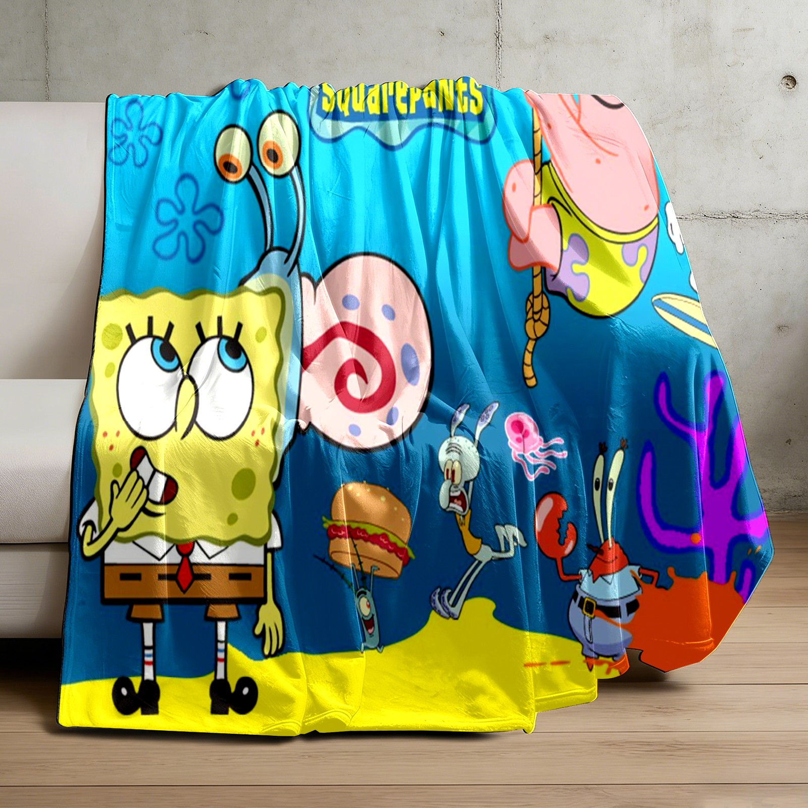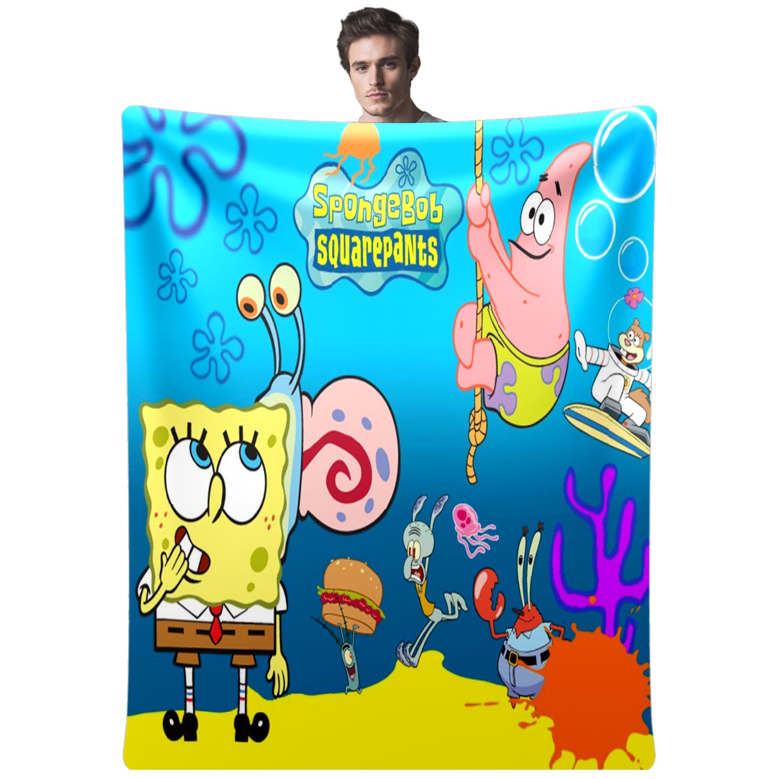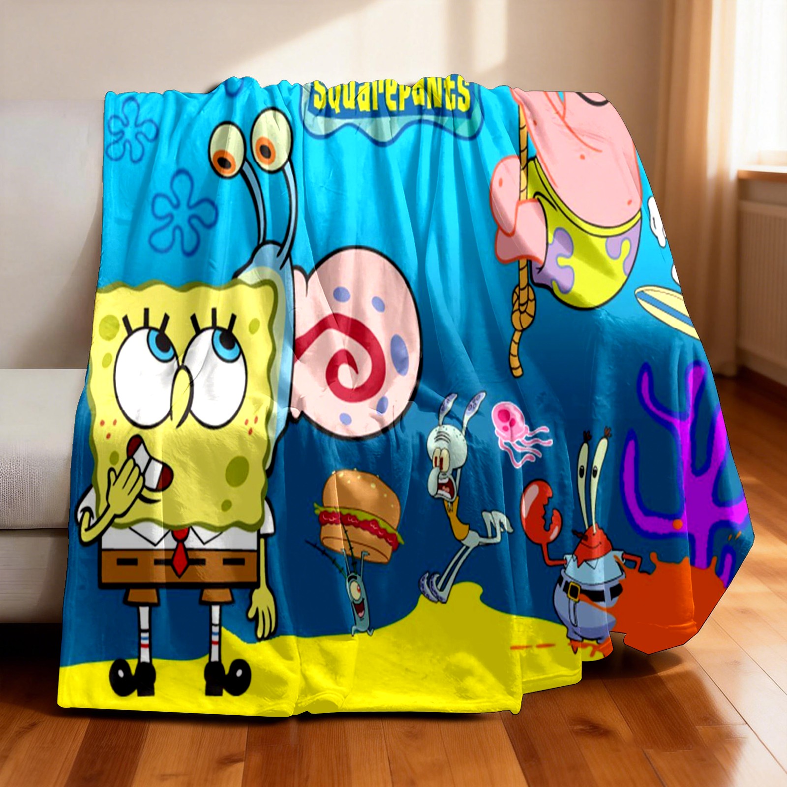 Премиальная фланелевая одеяло SpongeBob Gary Patrick Sandy Squidward Hamburger