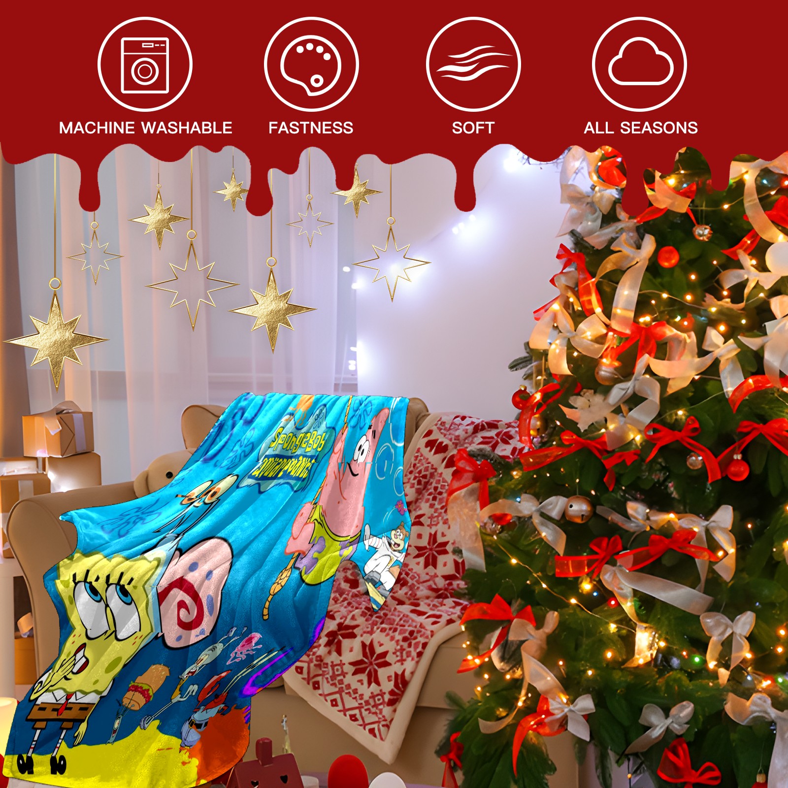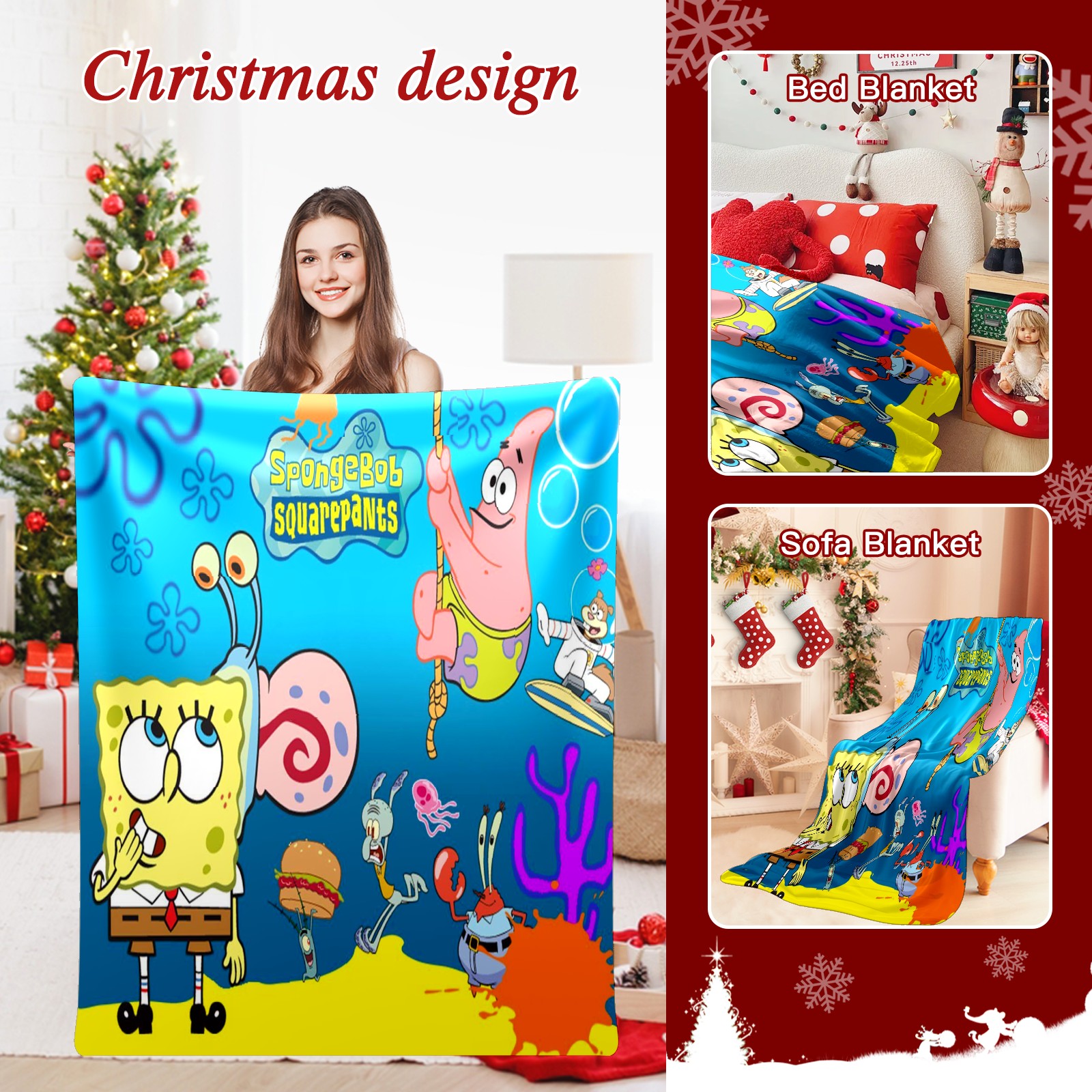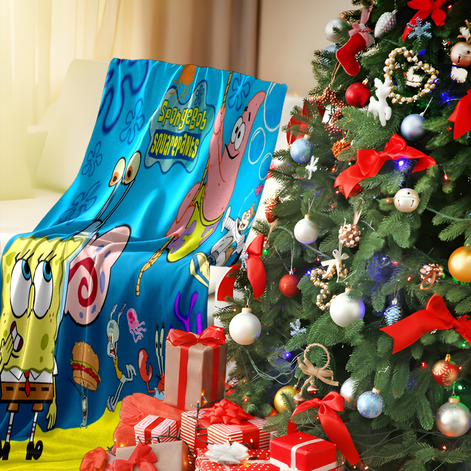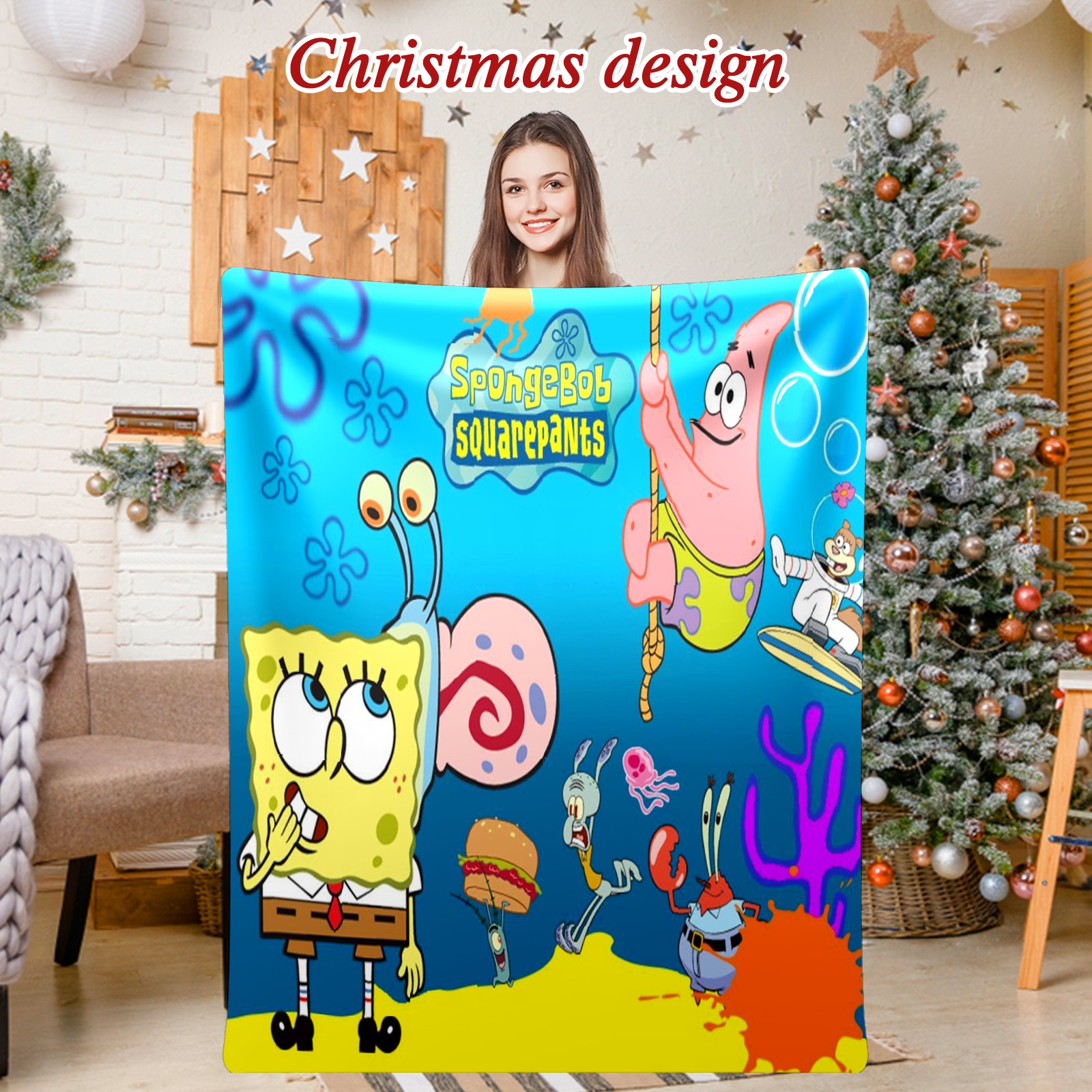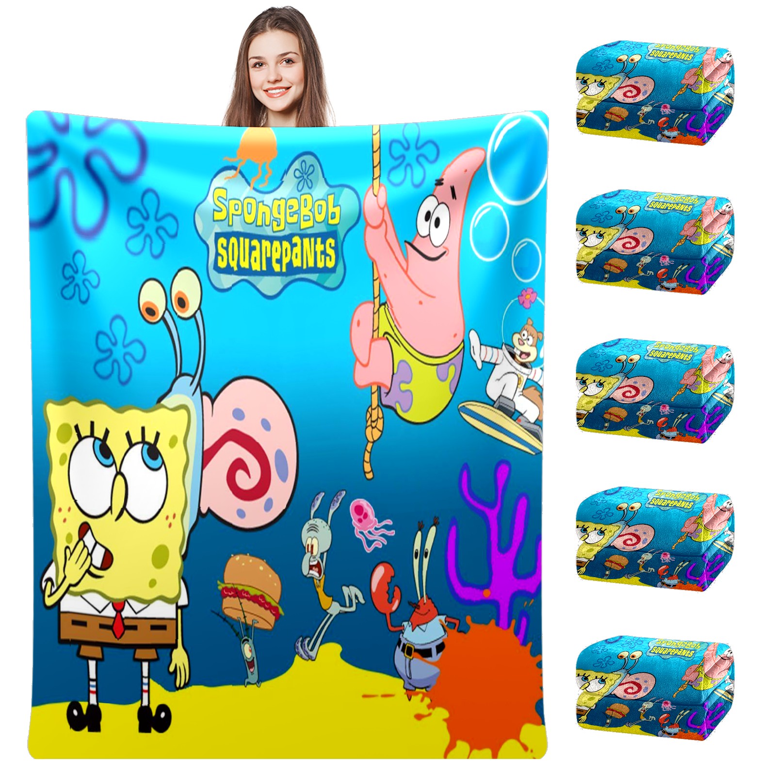 Премиальная фланелевая одеяло SpongeBob Gary Patrick Sandy Squidward Hamburger