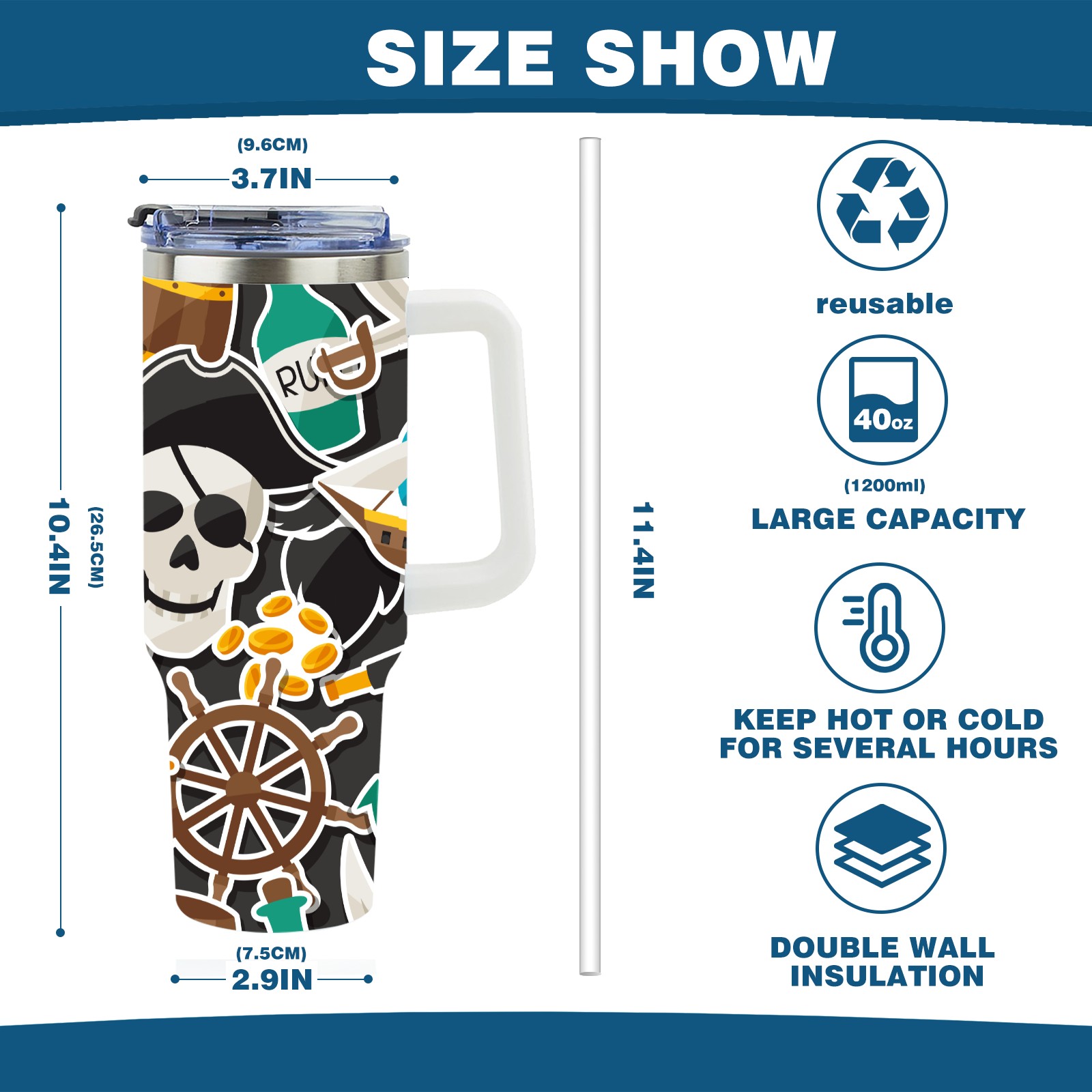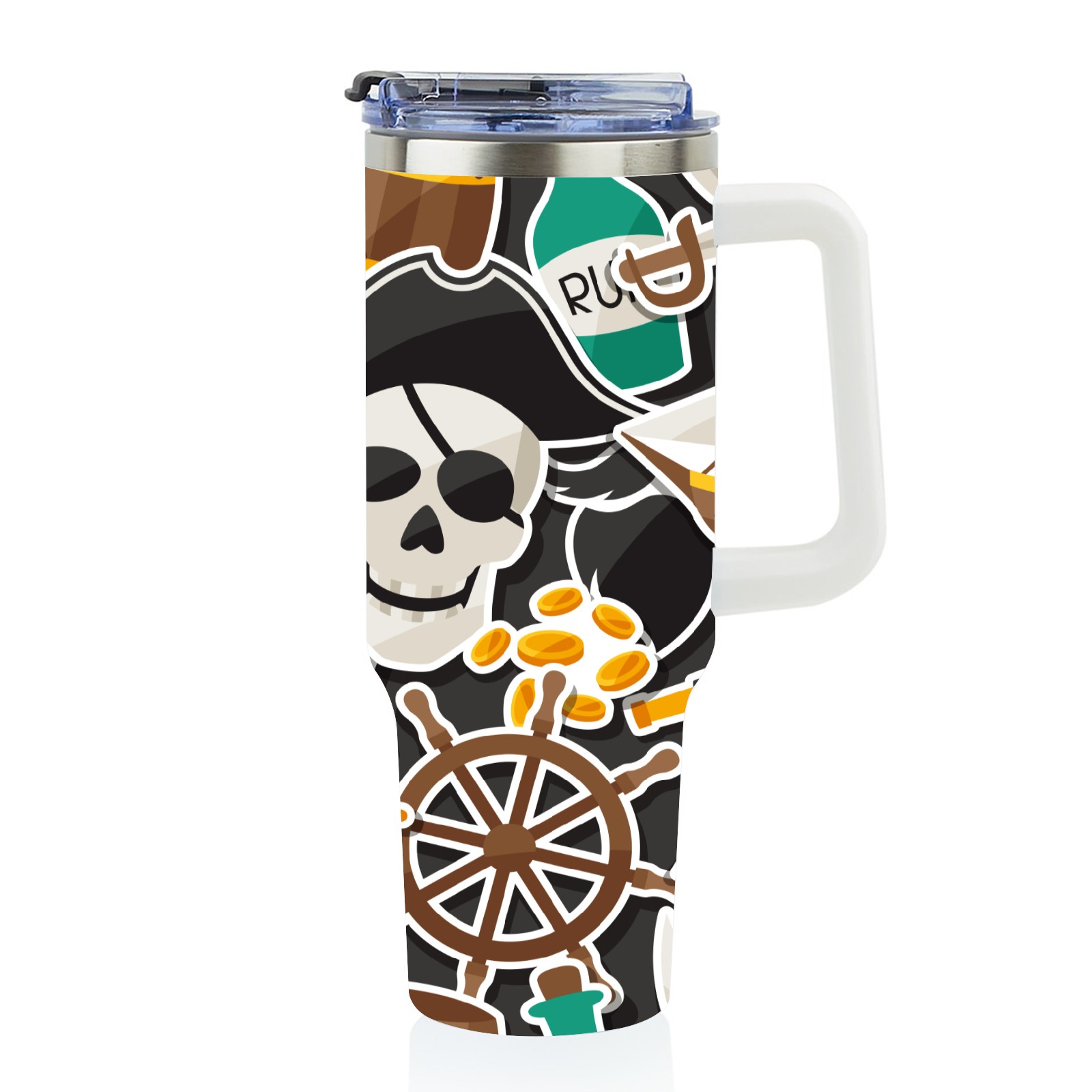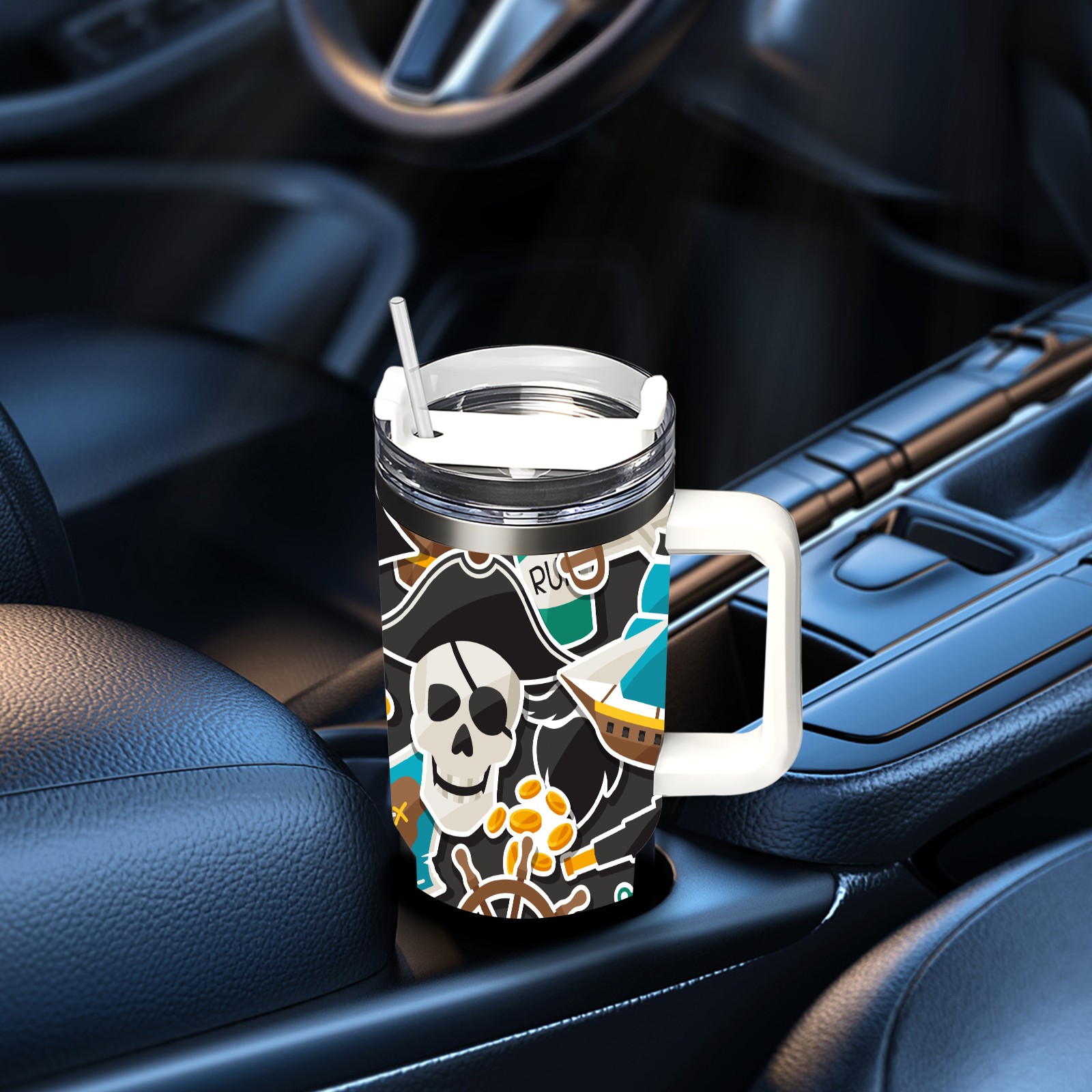 40 унций полностью напечатанный автомобильный стакан Cute Pirate Skull Steering Wheel Anchor