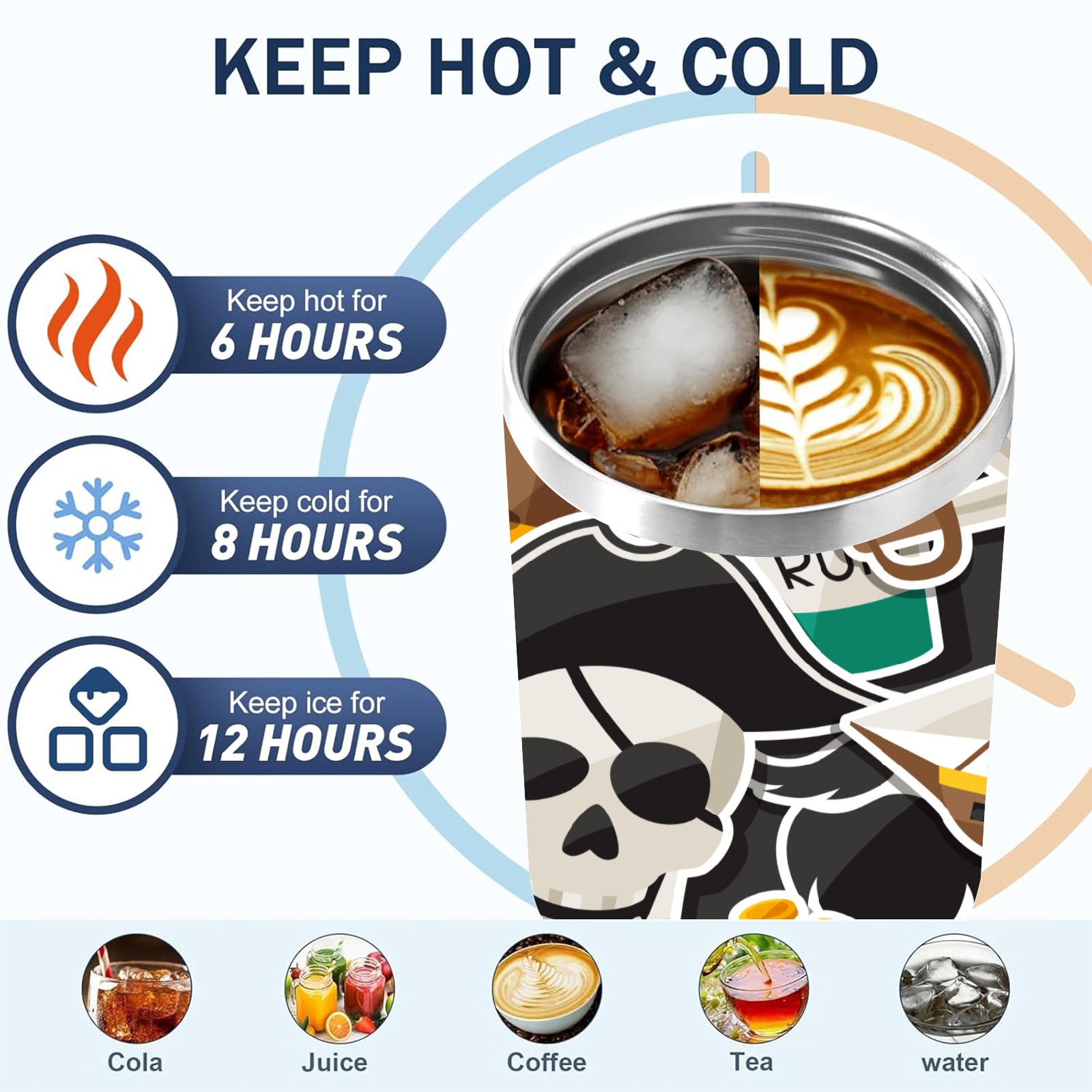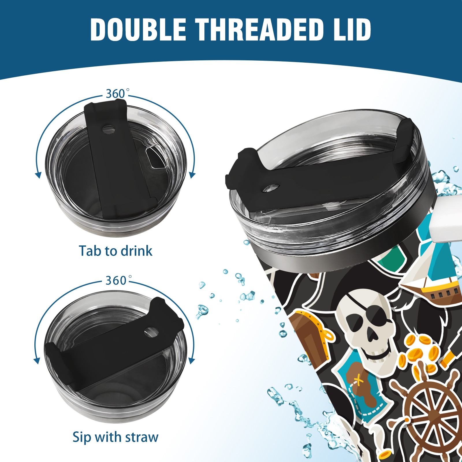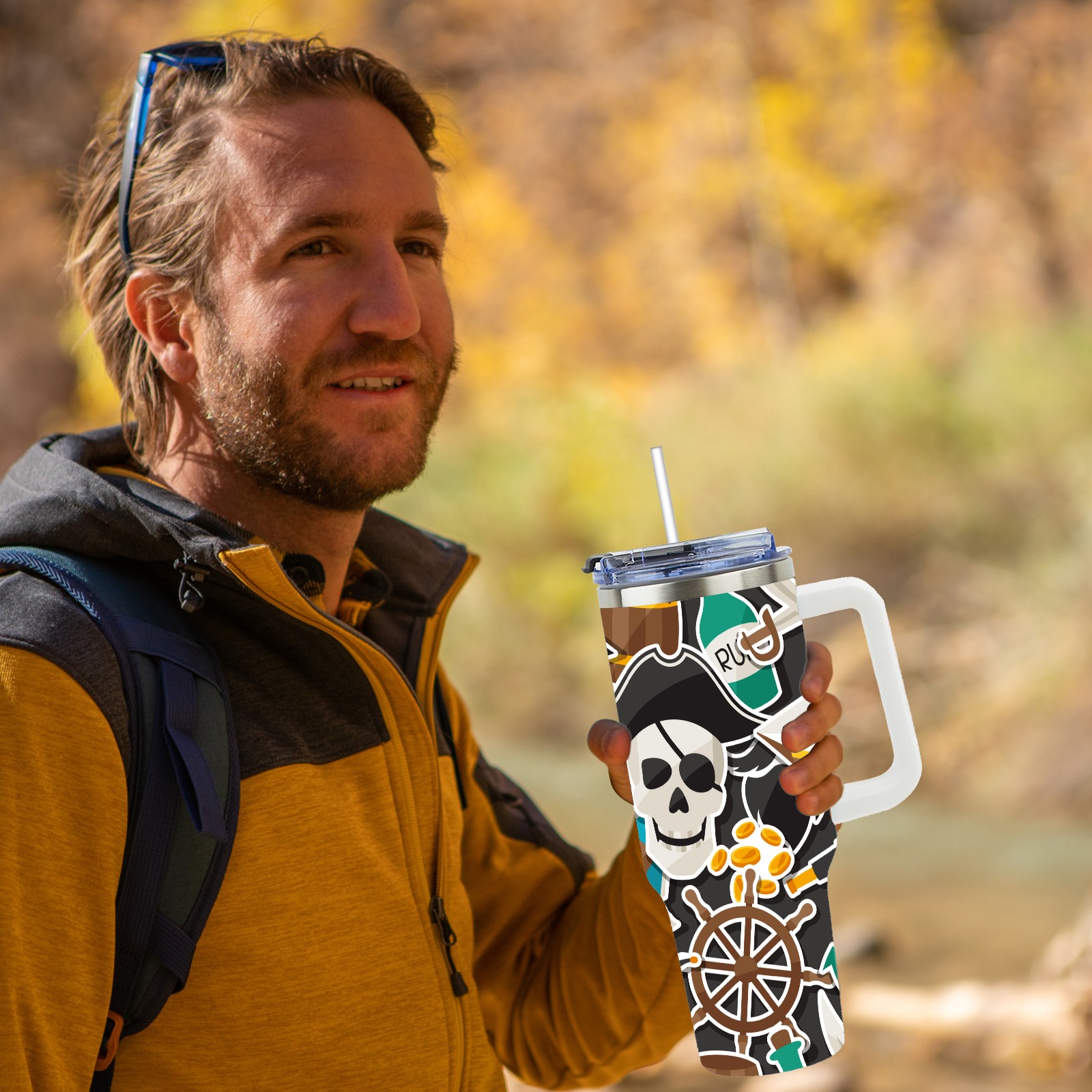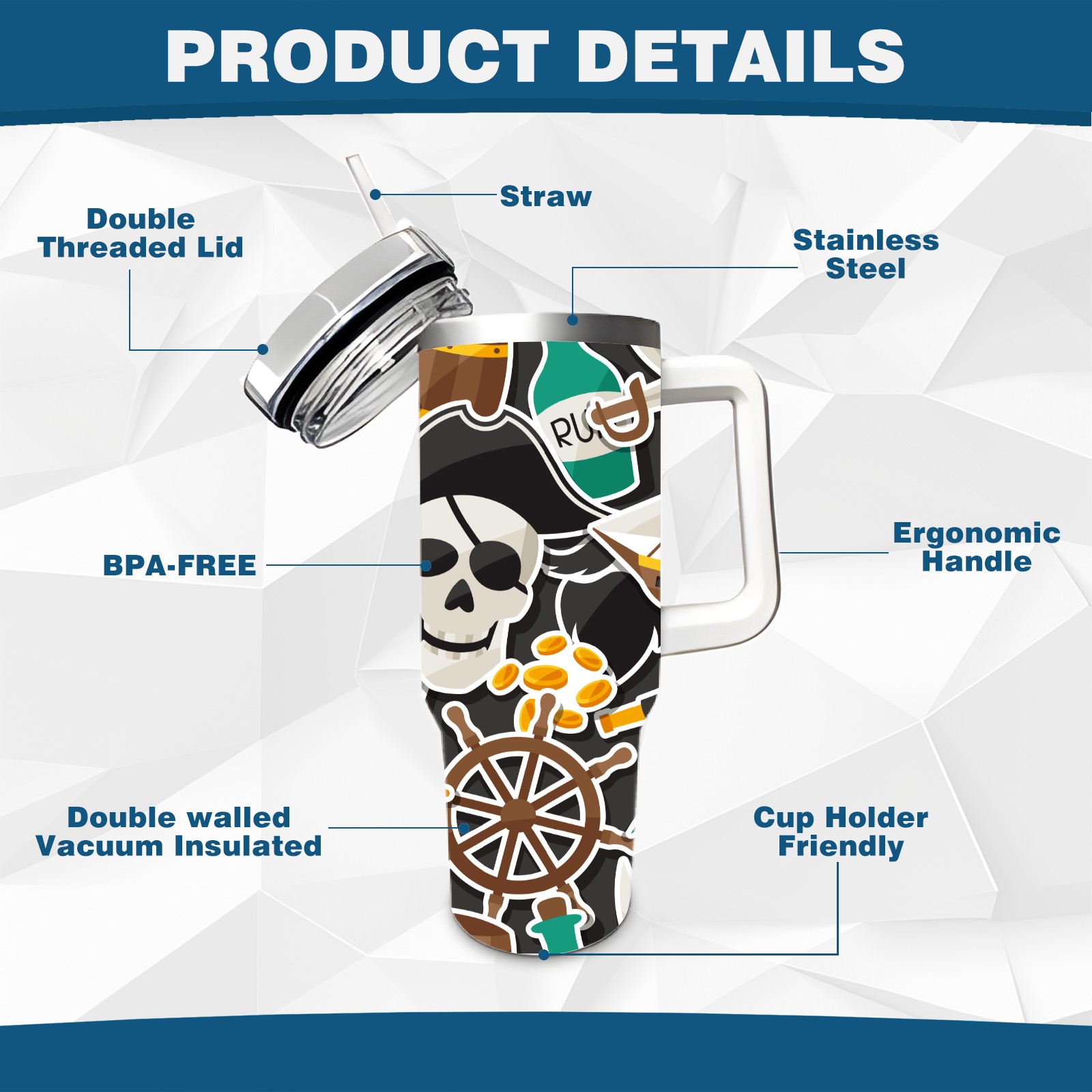 40 унций полностью напечатанный автомобильный стакан Cute Pirate Skull Steering Wheel Anchor
