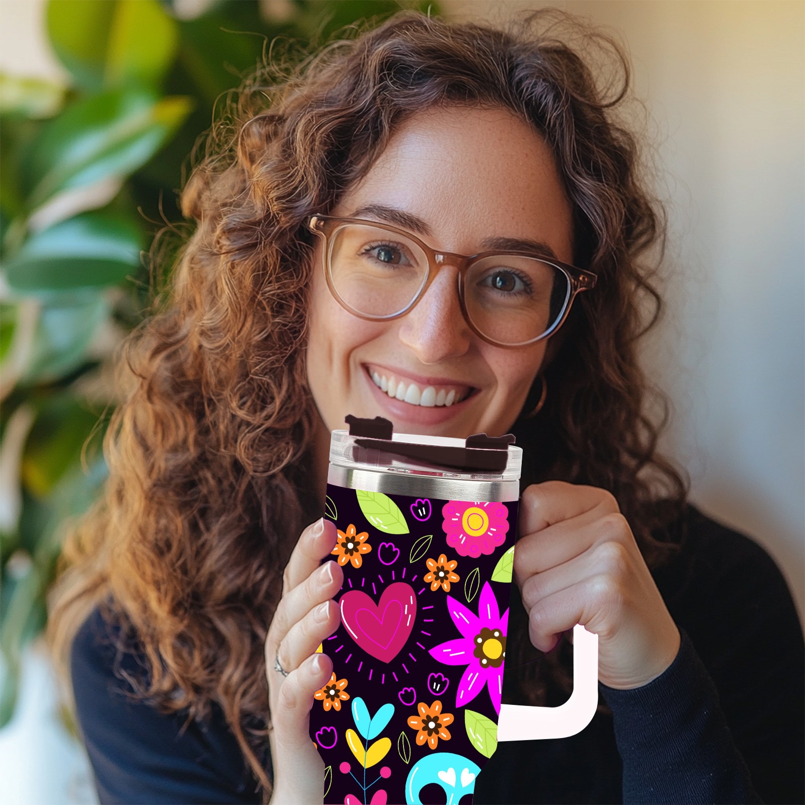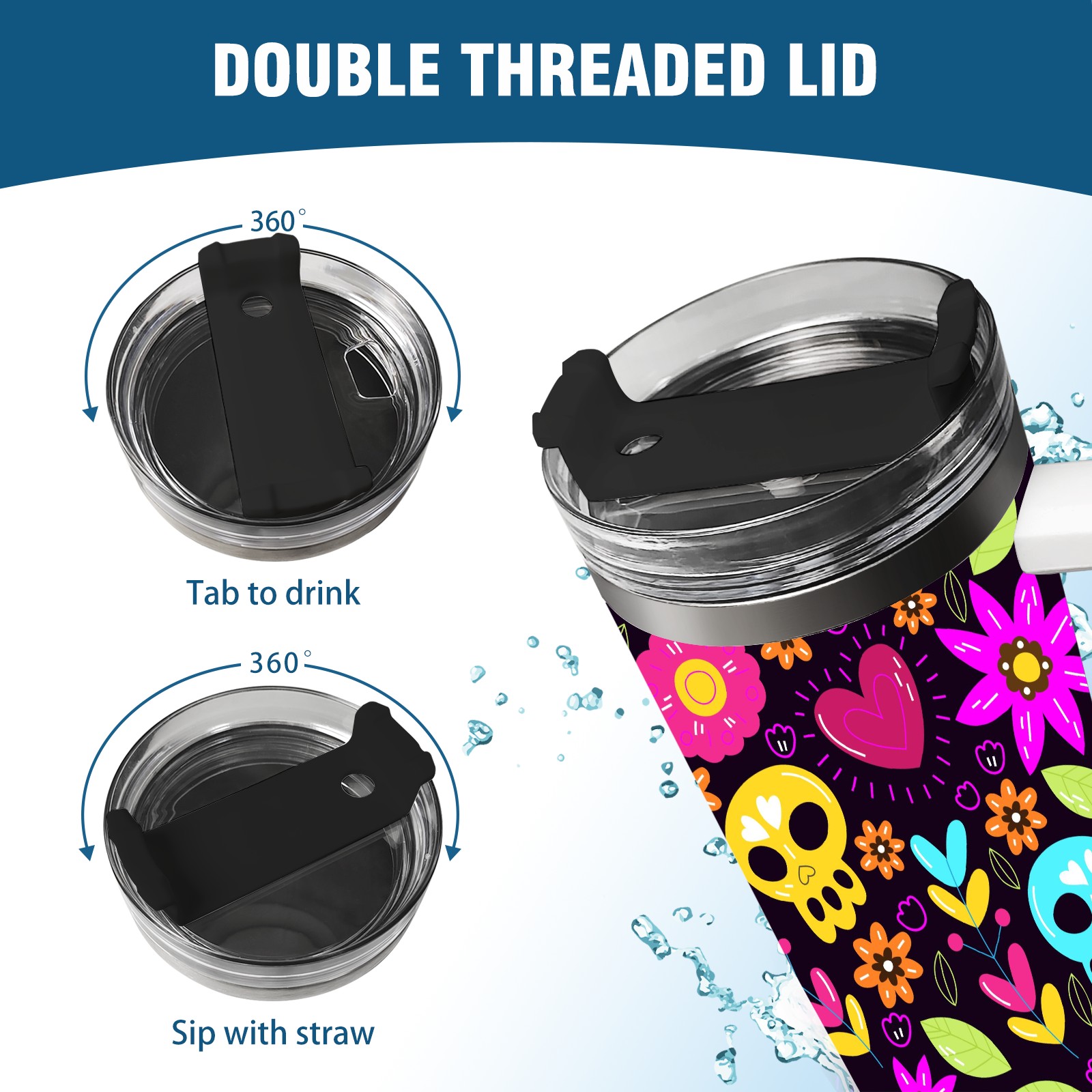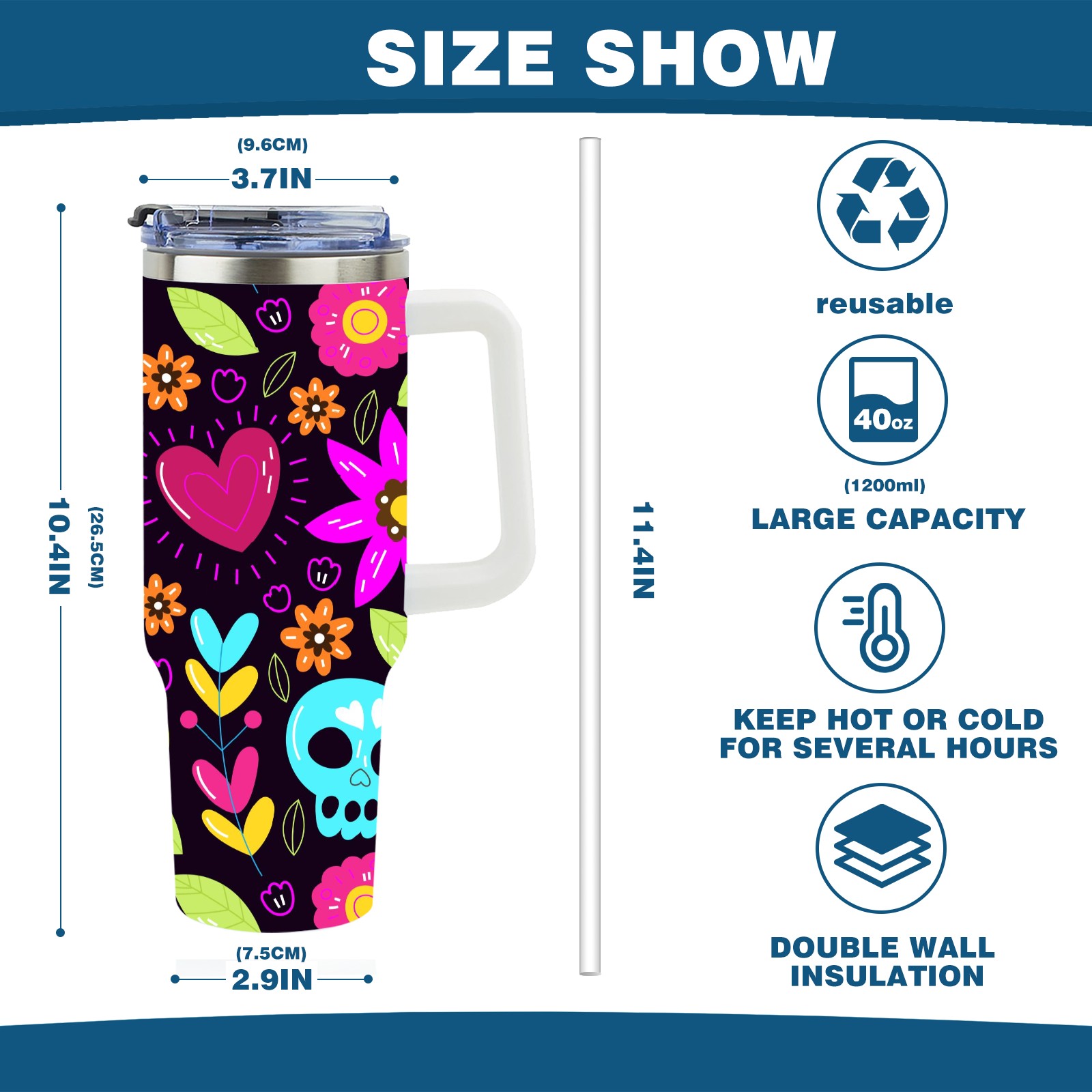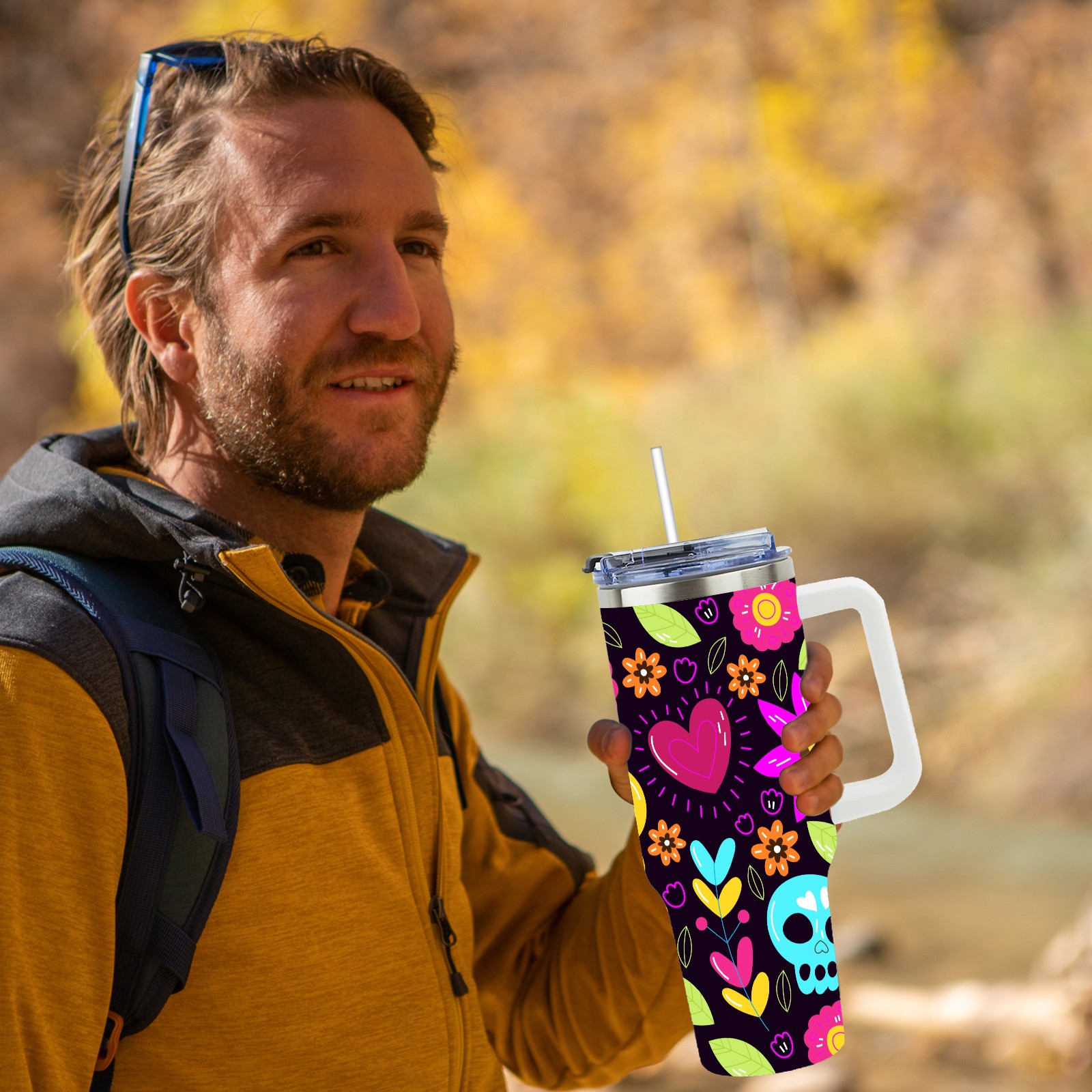 40 унций полностью напечатанный автомобильный стакан Skull Flower Heart