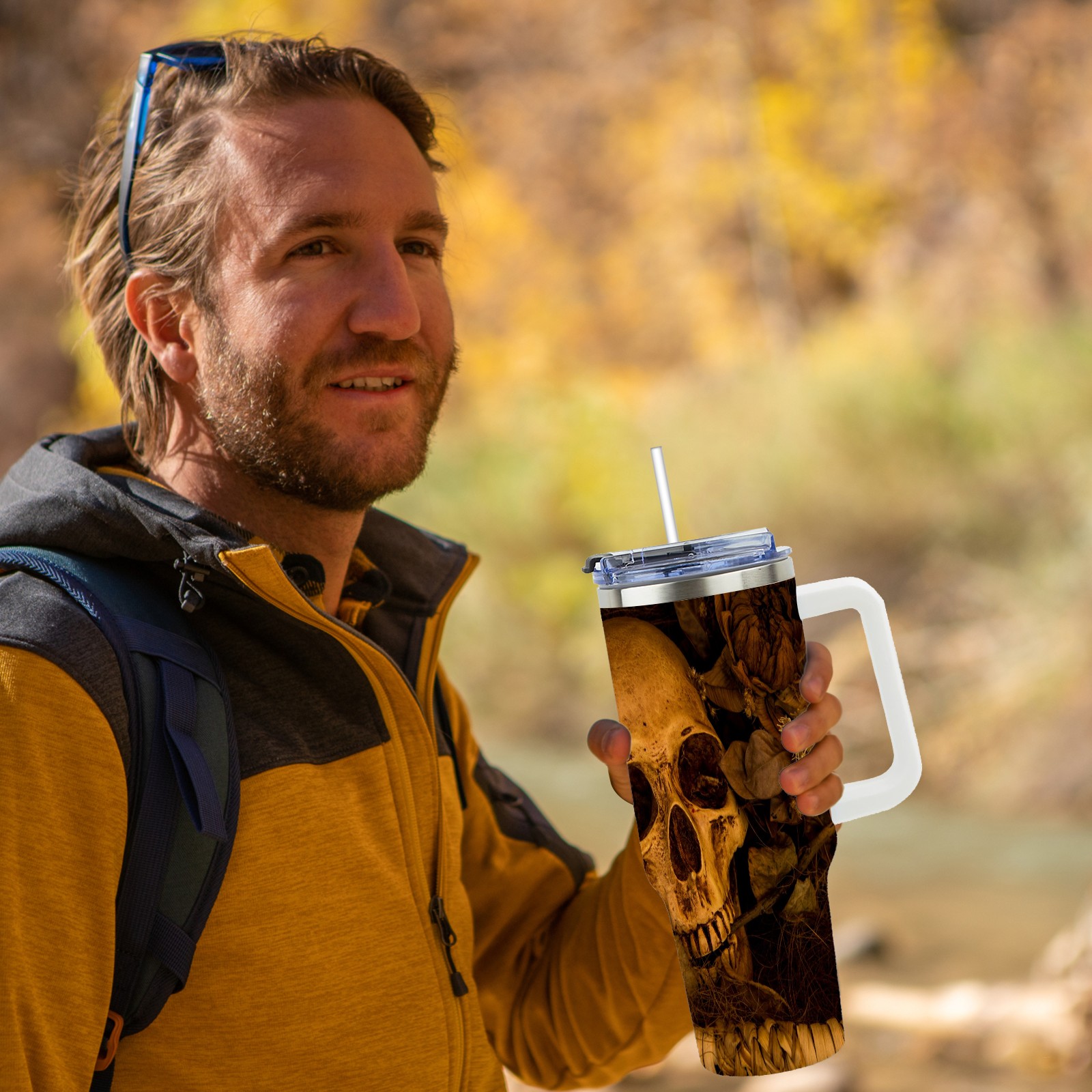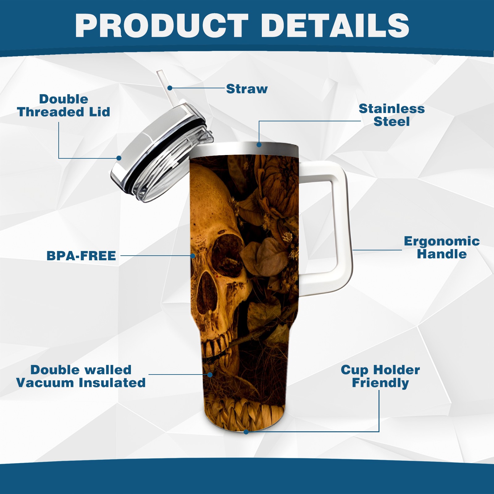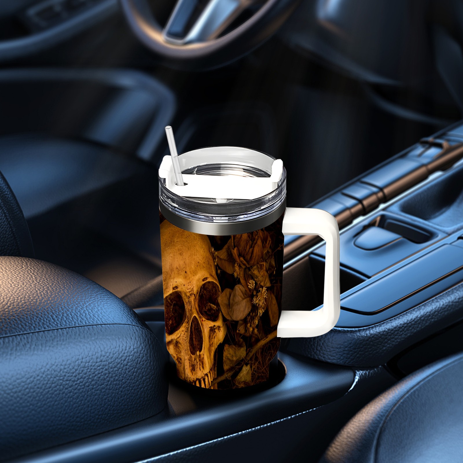40 унций полностью напечатанный автомобильный стакан Vintage Gothic Punk Skull Head