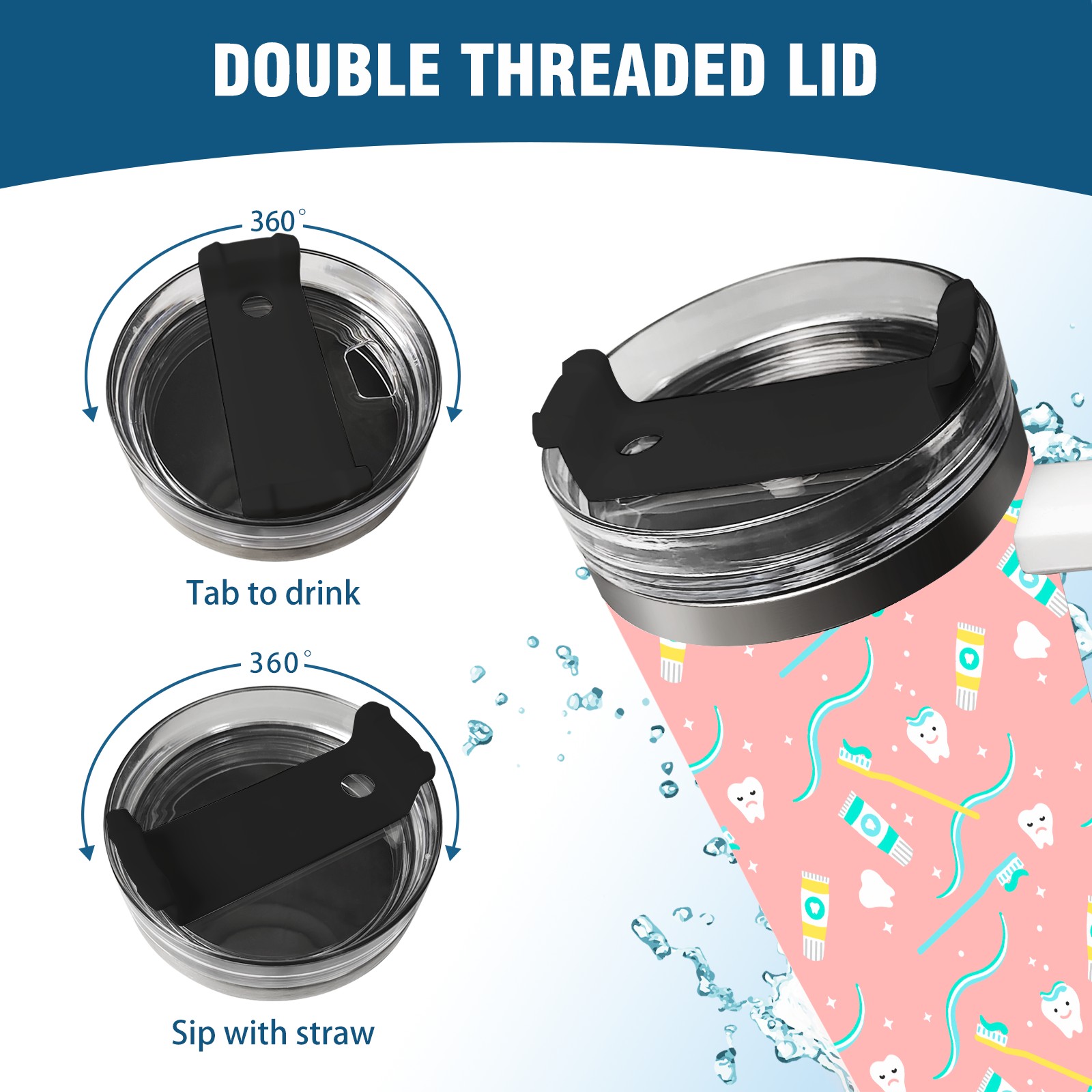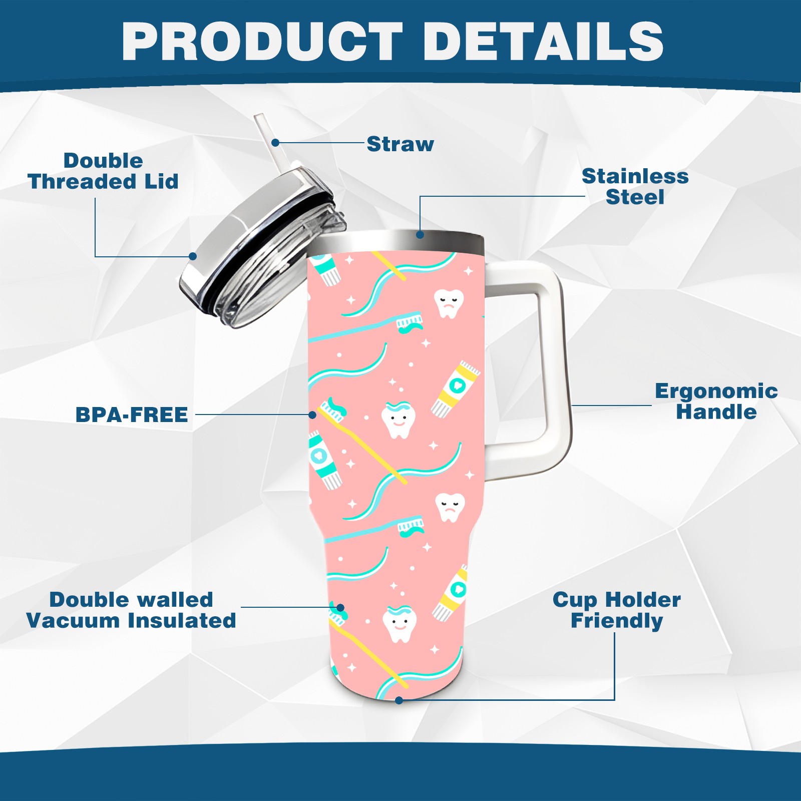 40 унций полностью напечатанный автомобильный стакан Cute Tooth Dentist Toothbrush Toothpaste