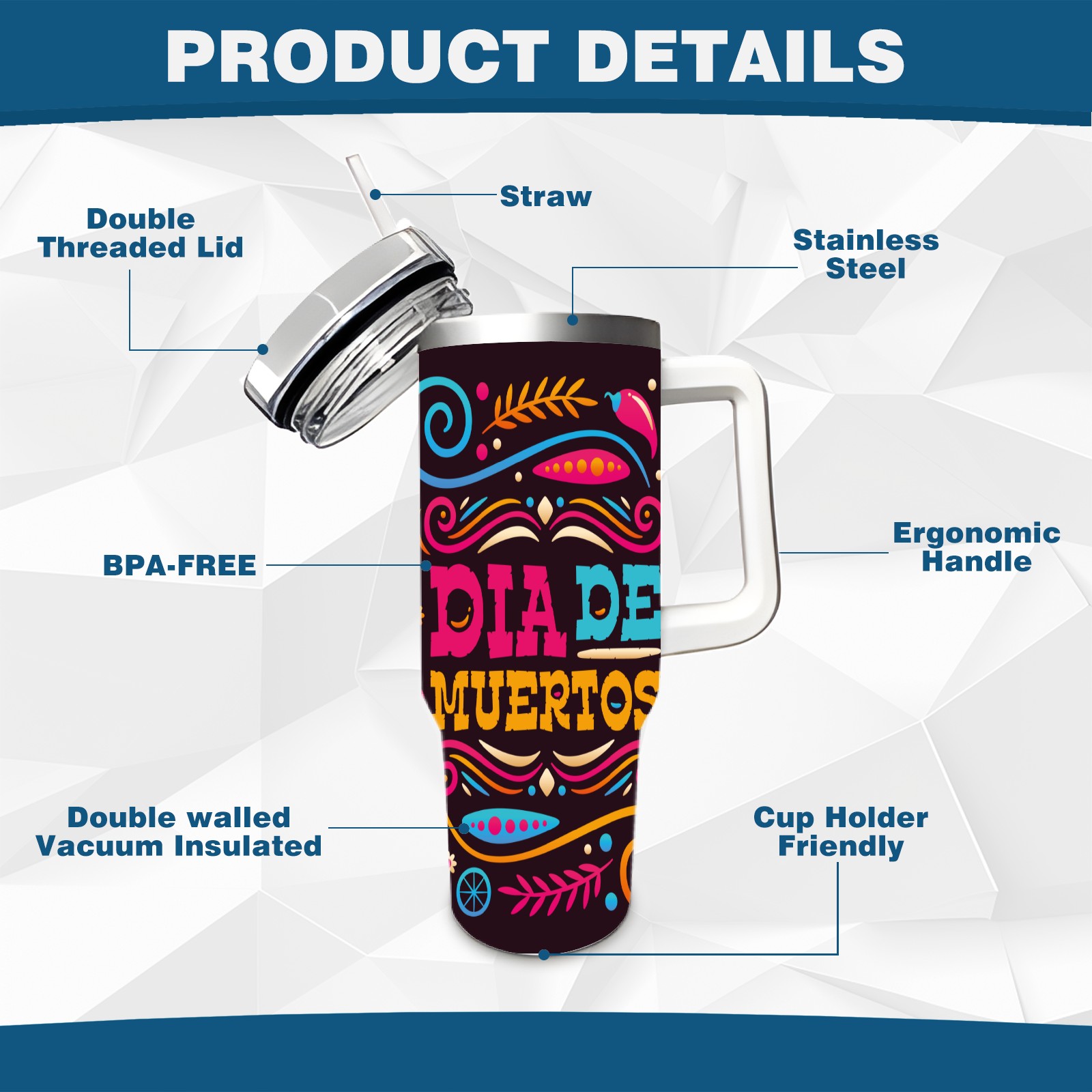 40 унций полностью напечатанный автомобильный стакан Mexican Skull Dead Day Dia Muertos