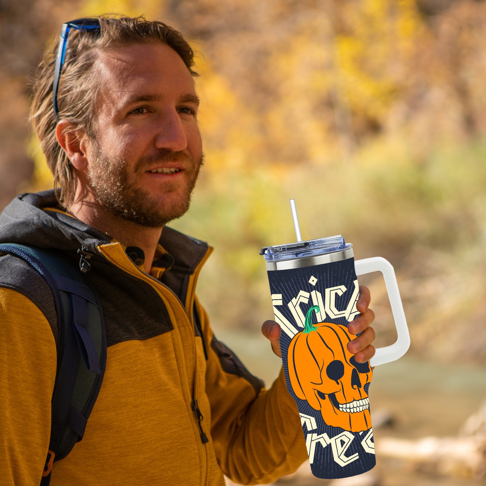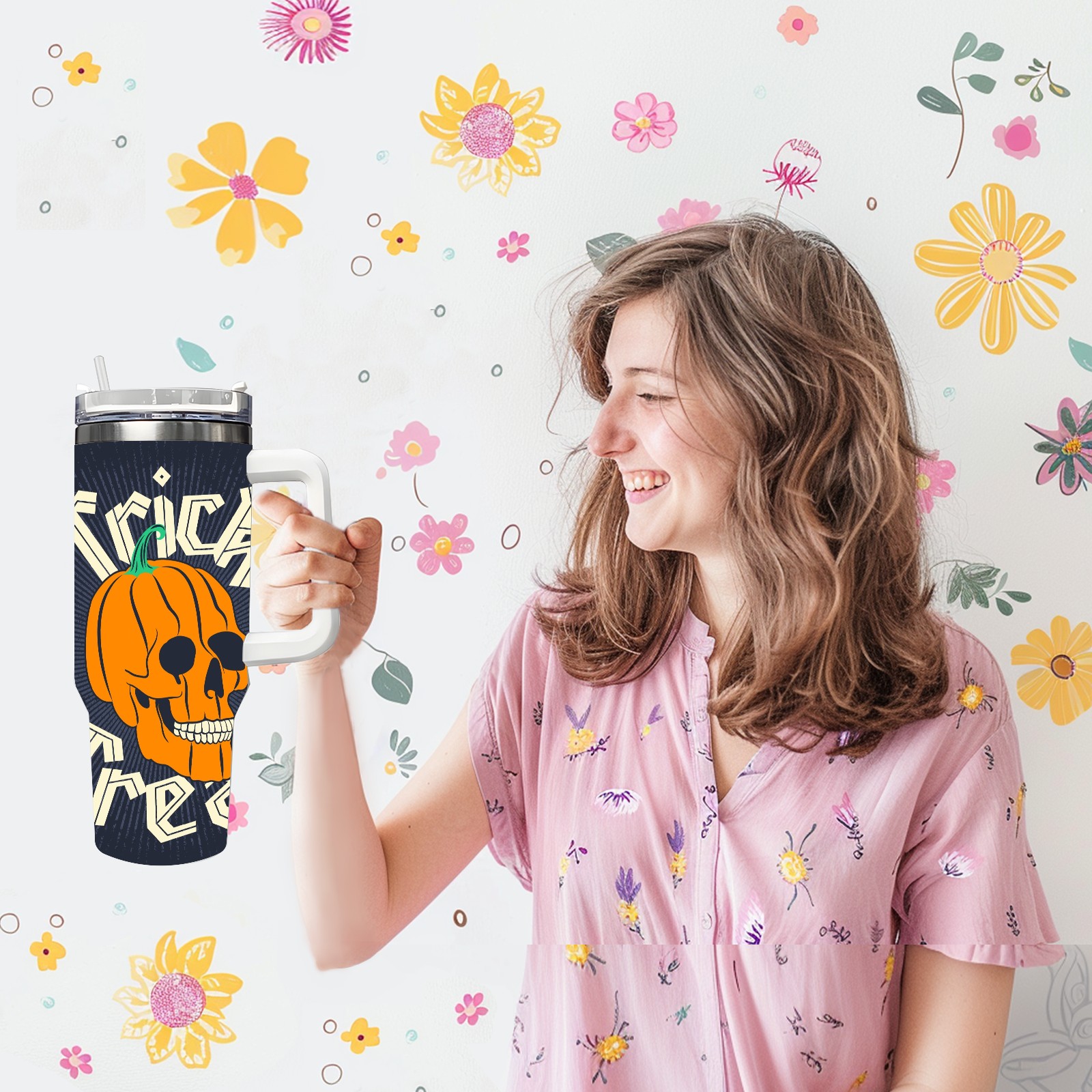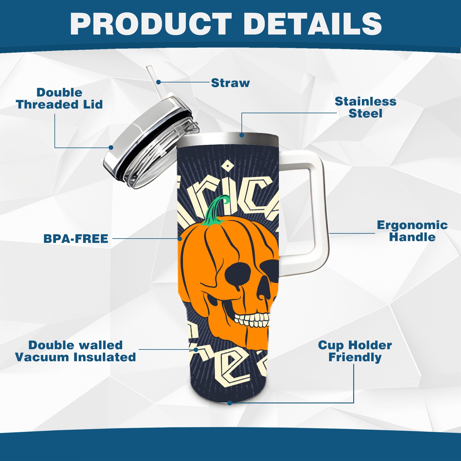 40 унций полностью напечатанный автомобильный стакан Pumpkin Skull