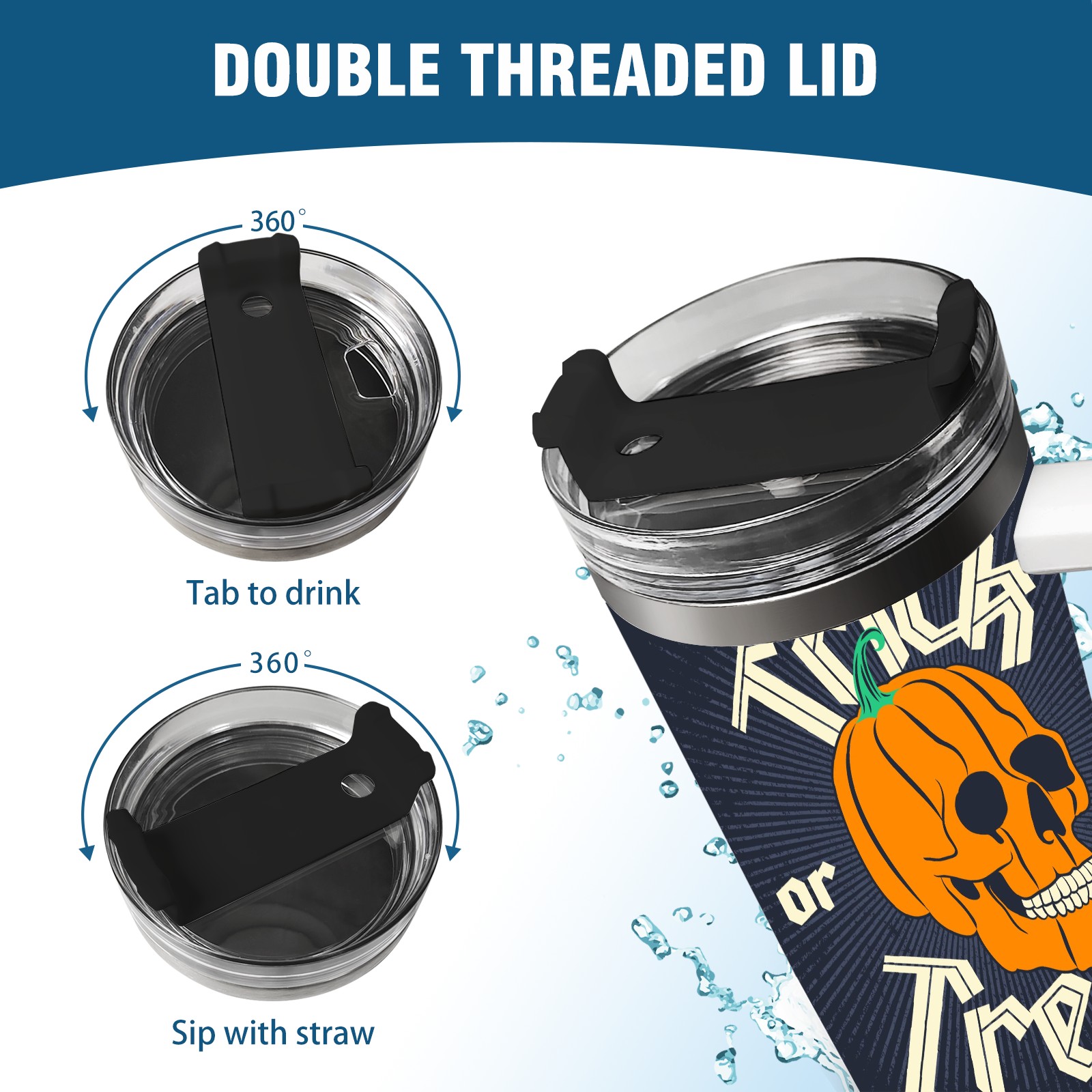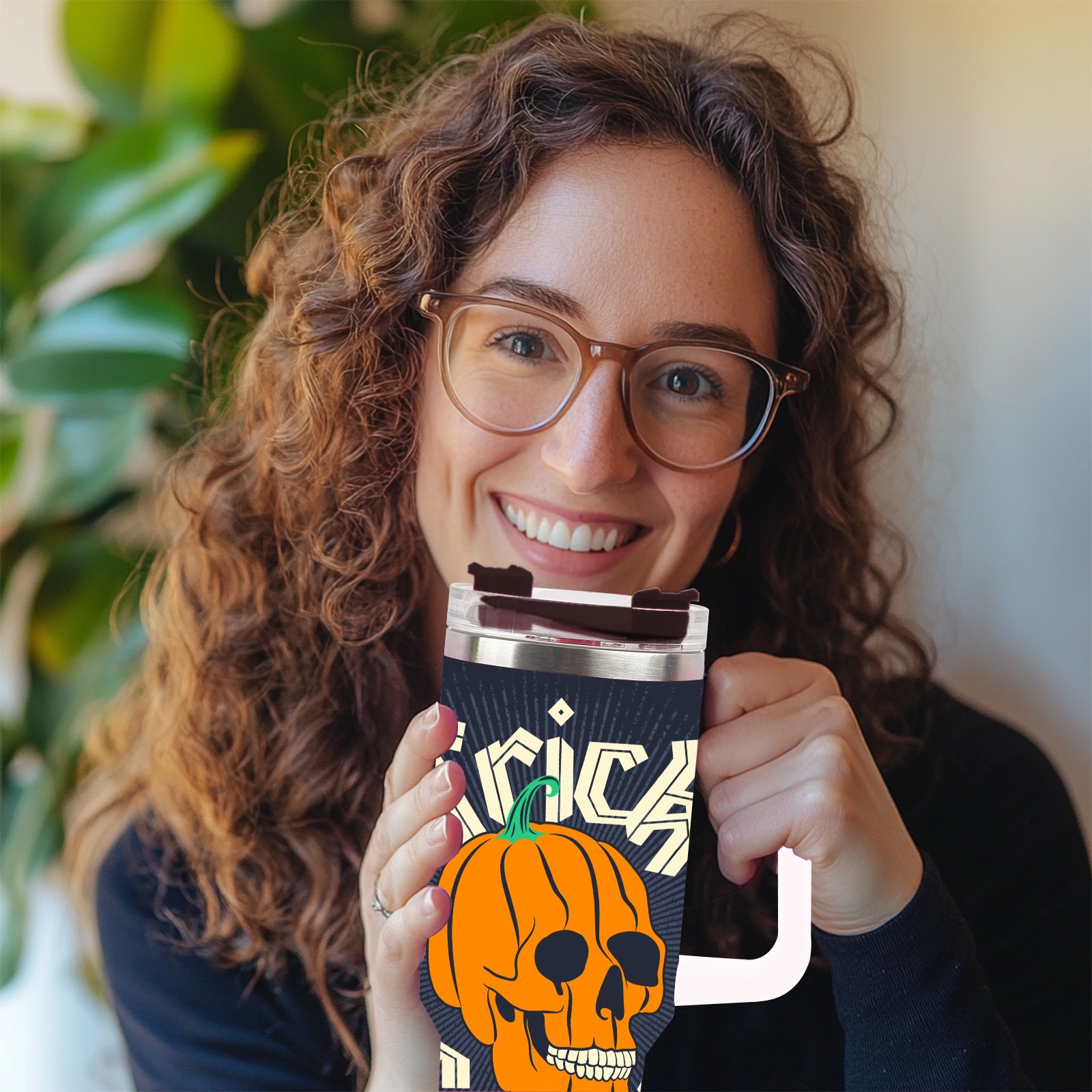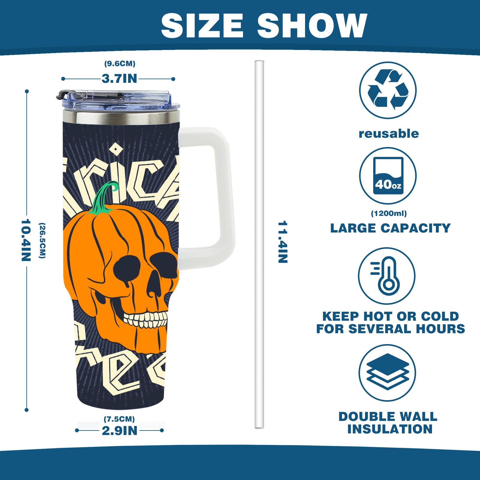 40 унций полностью напечатанный автомобильный стакан Pumpkin Skull