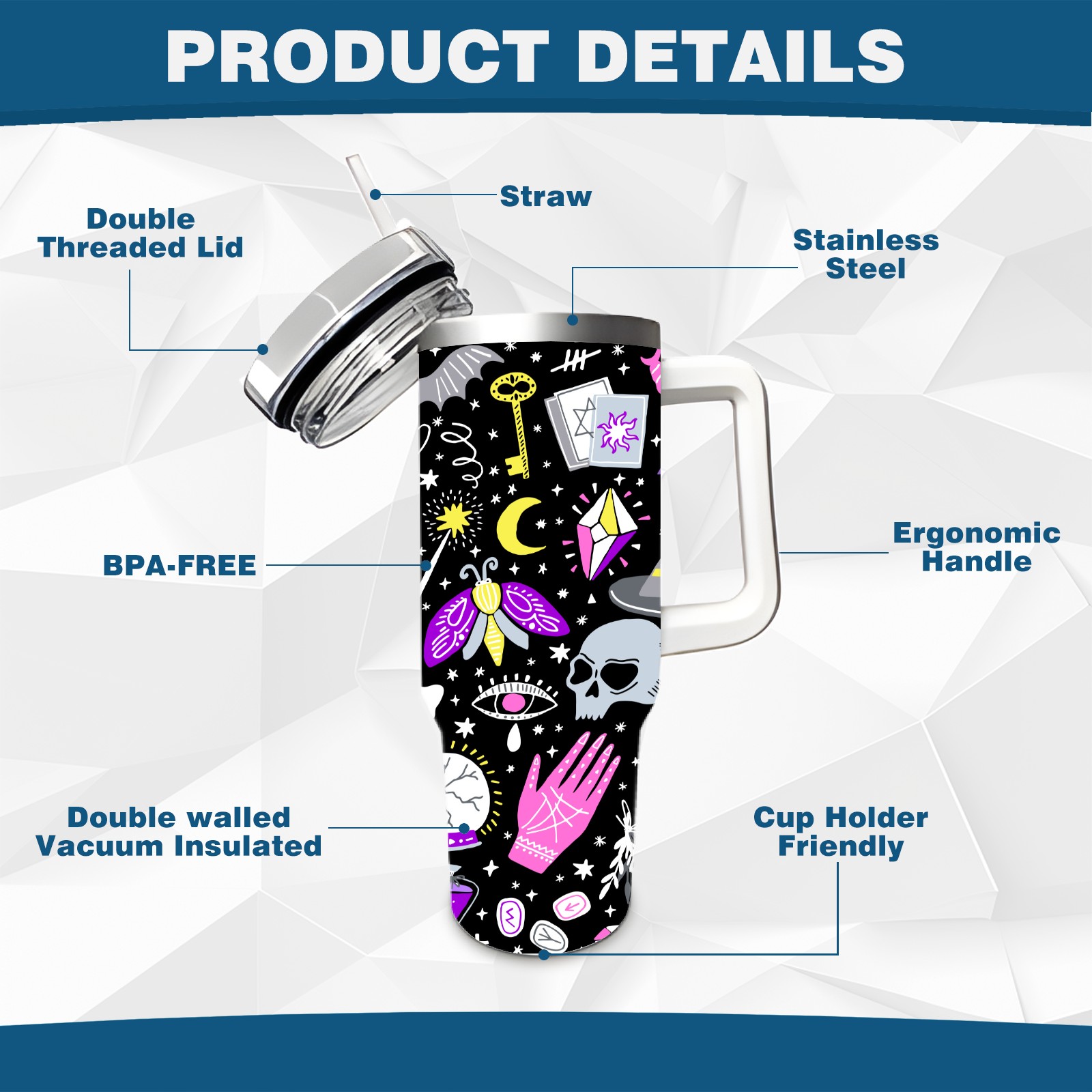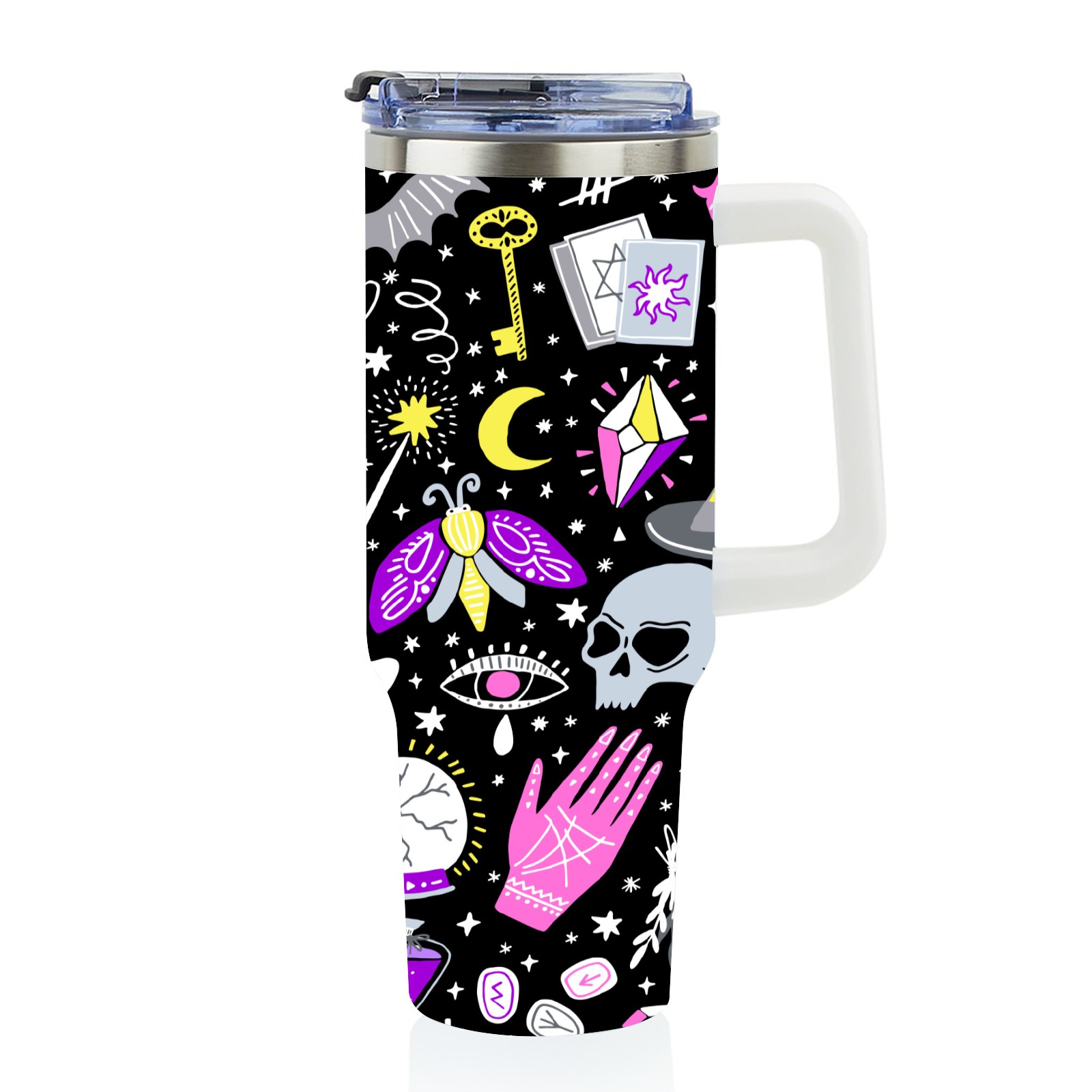 40 унций полностью напечатанный автомобильный стакан Halloween Skull Witchcraft Moon Pattern