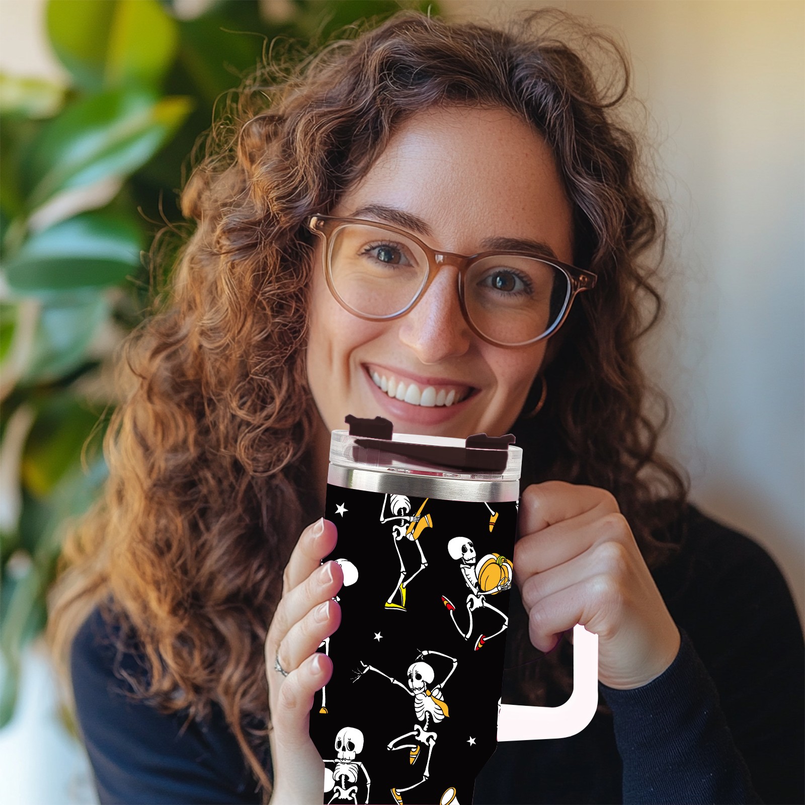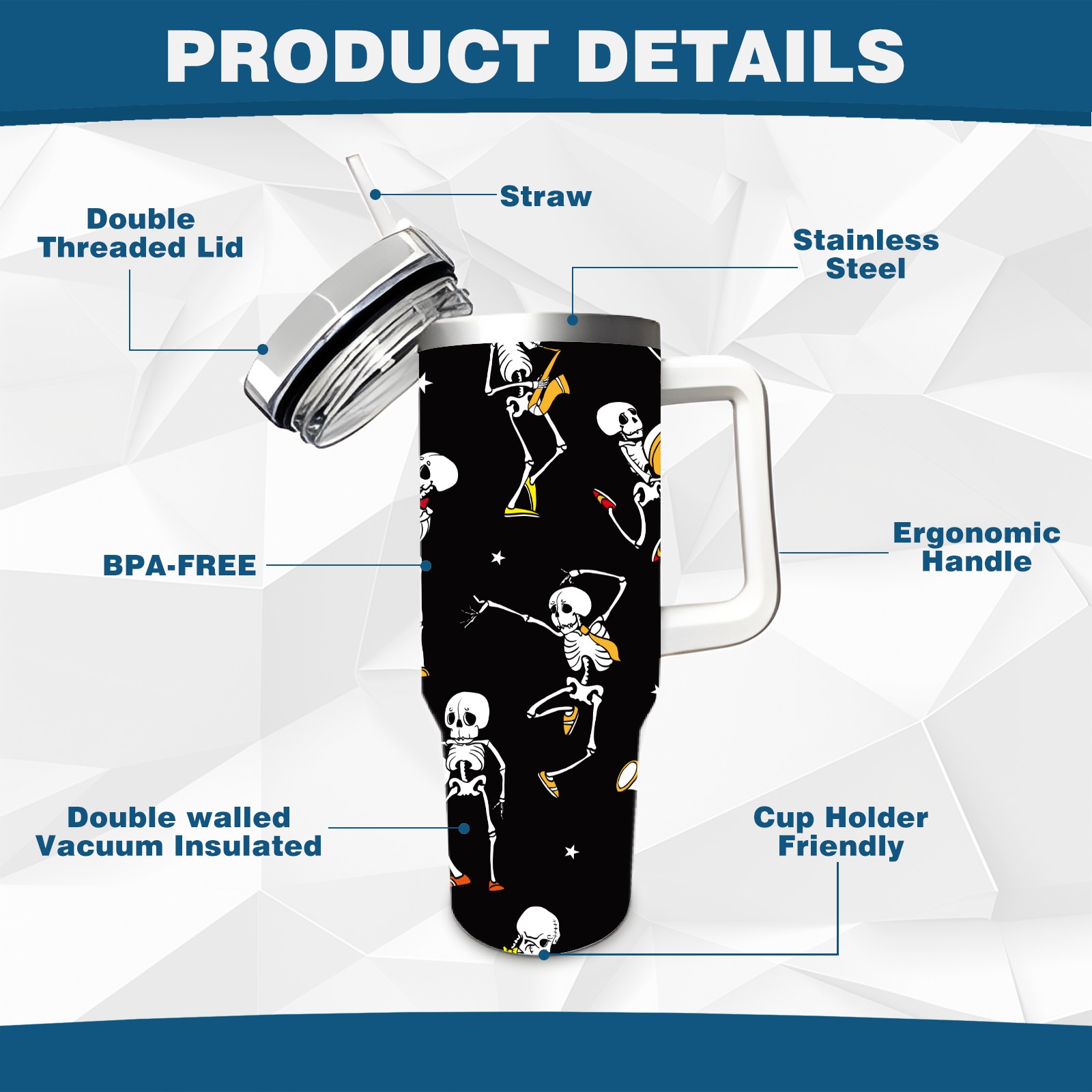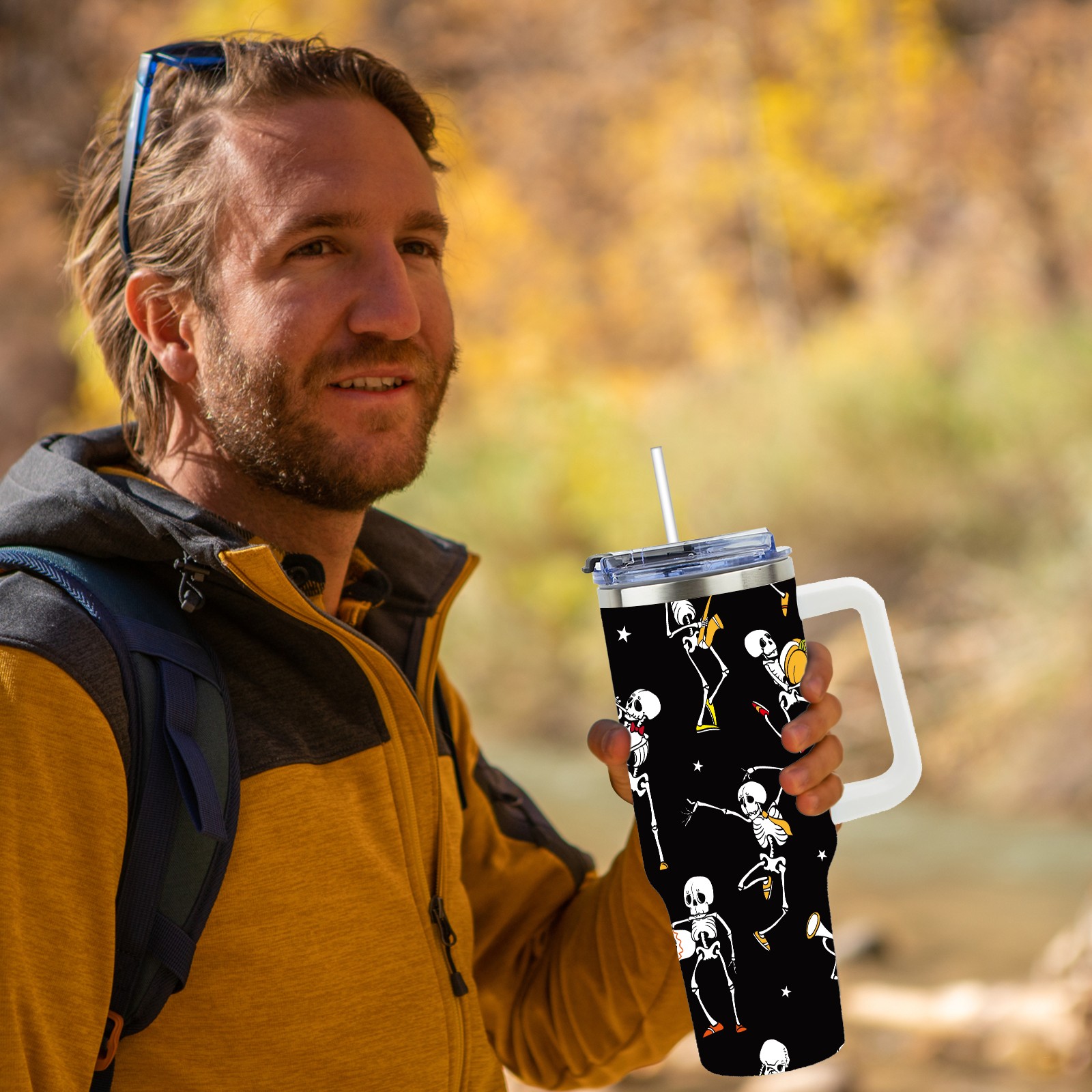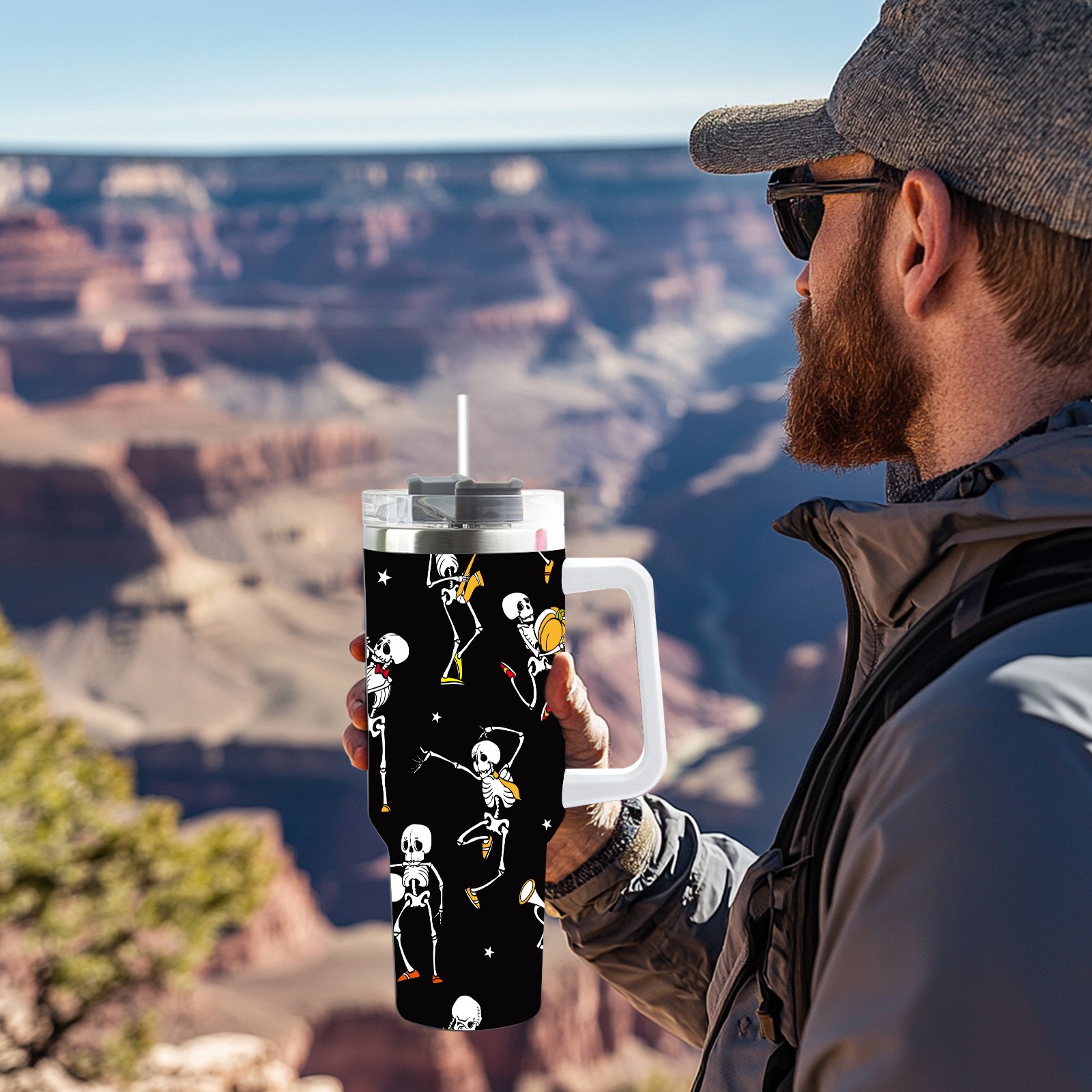 40 унций полностью напечатанный автомобильный стакан Skull With Pumpkin Funny