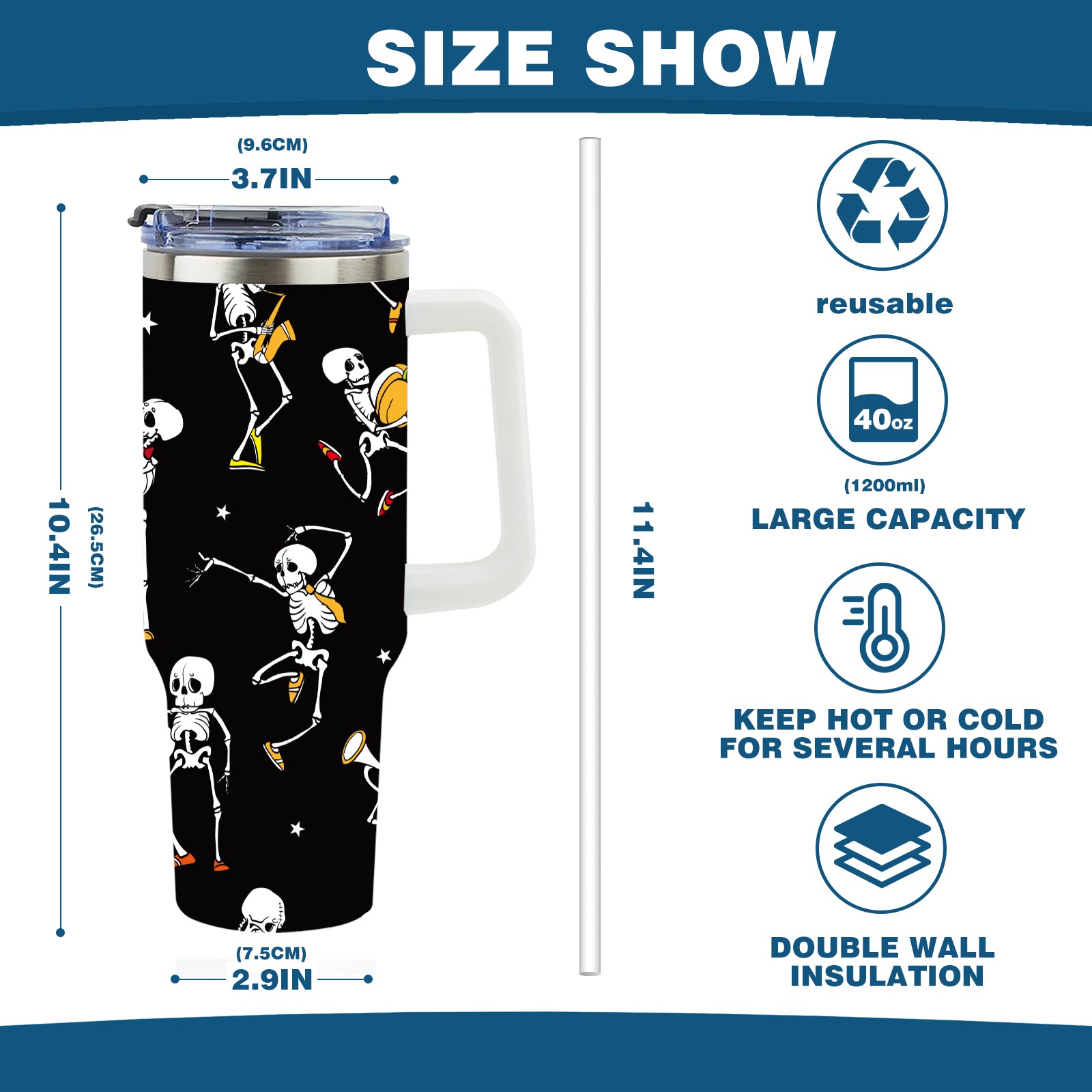 • С большой емкостью 40 унций, он обеспечивает вас гидратацией в течение всего дня, идеально подходит для воды, кофе, сока или других напитков. Эргономичный дизайн идеально вписывается в автомобильные держатели для бутылок, а прочный, герметичный колпачок предотвращает утечки во время передвижения. Путешествие. Антискользящее основание обеспечивает устойчивость, а гладкие поверхности делают уборку легкой — просто мойте вручную или кладите в посудомоечную машину (рекомендуется верхний поддон).