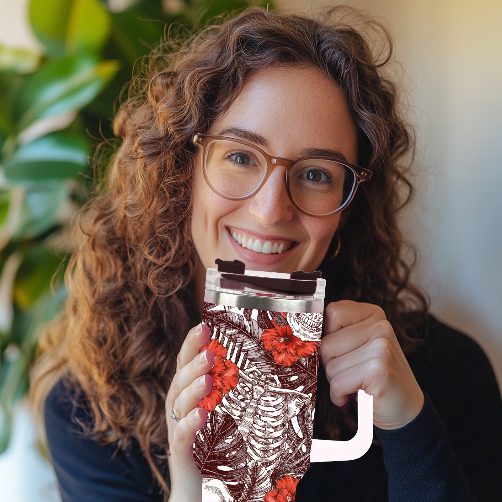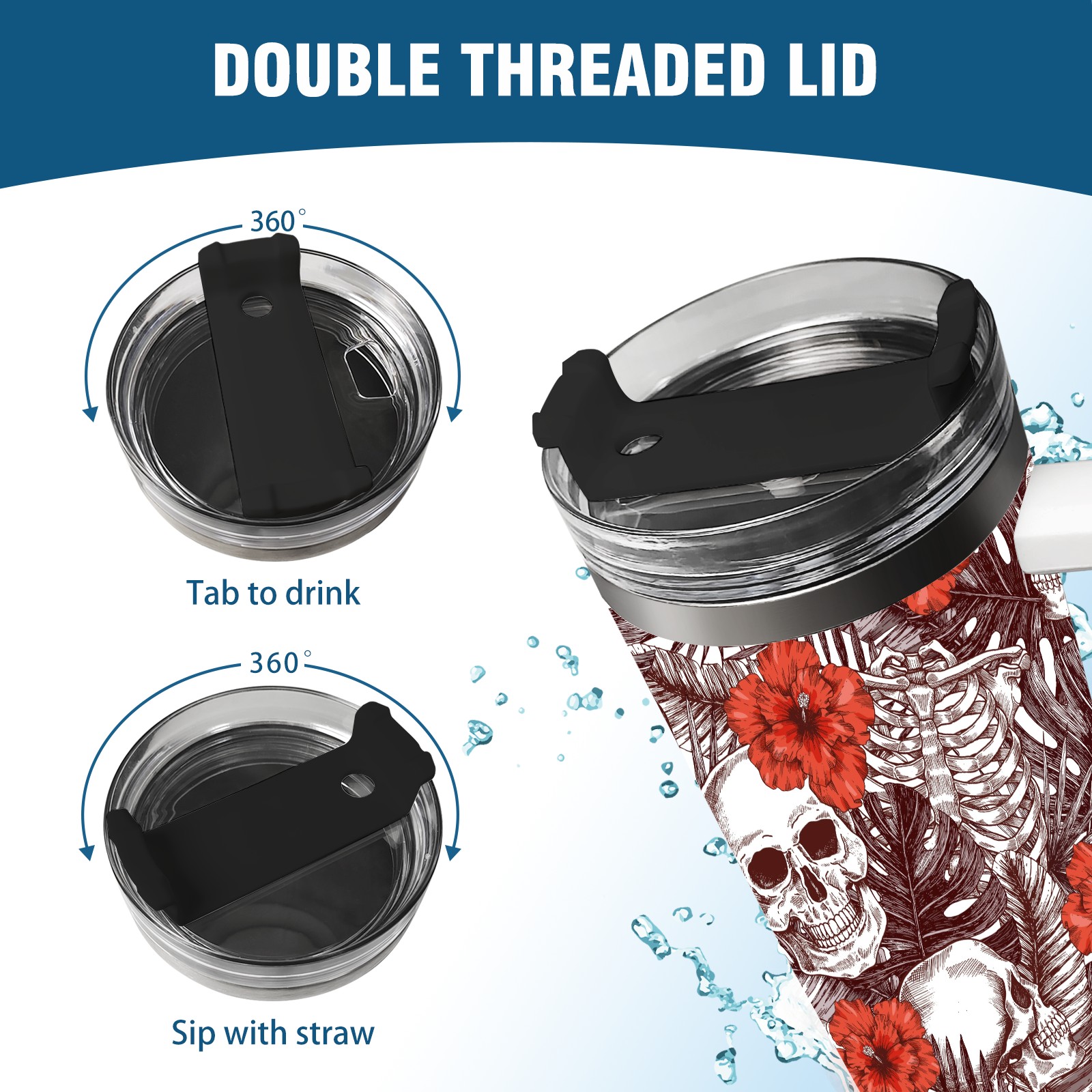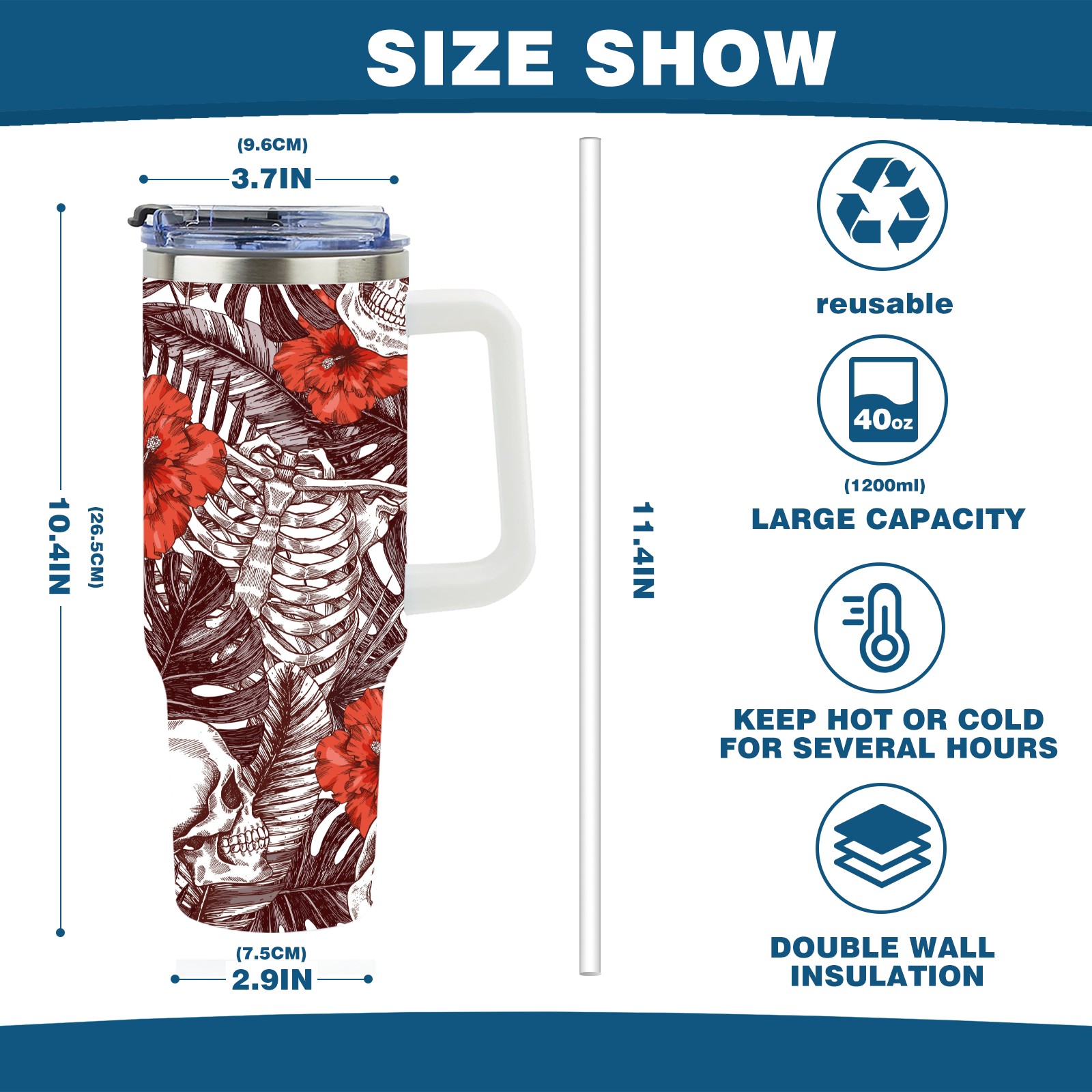 40 унций полностью напечатанный автомобильный стакан Skull With Flower Vintage