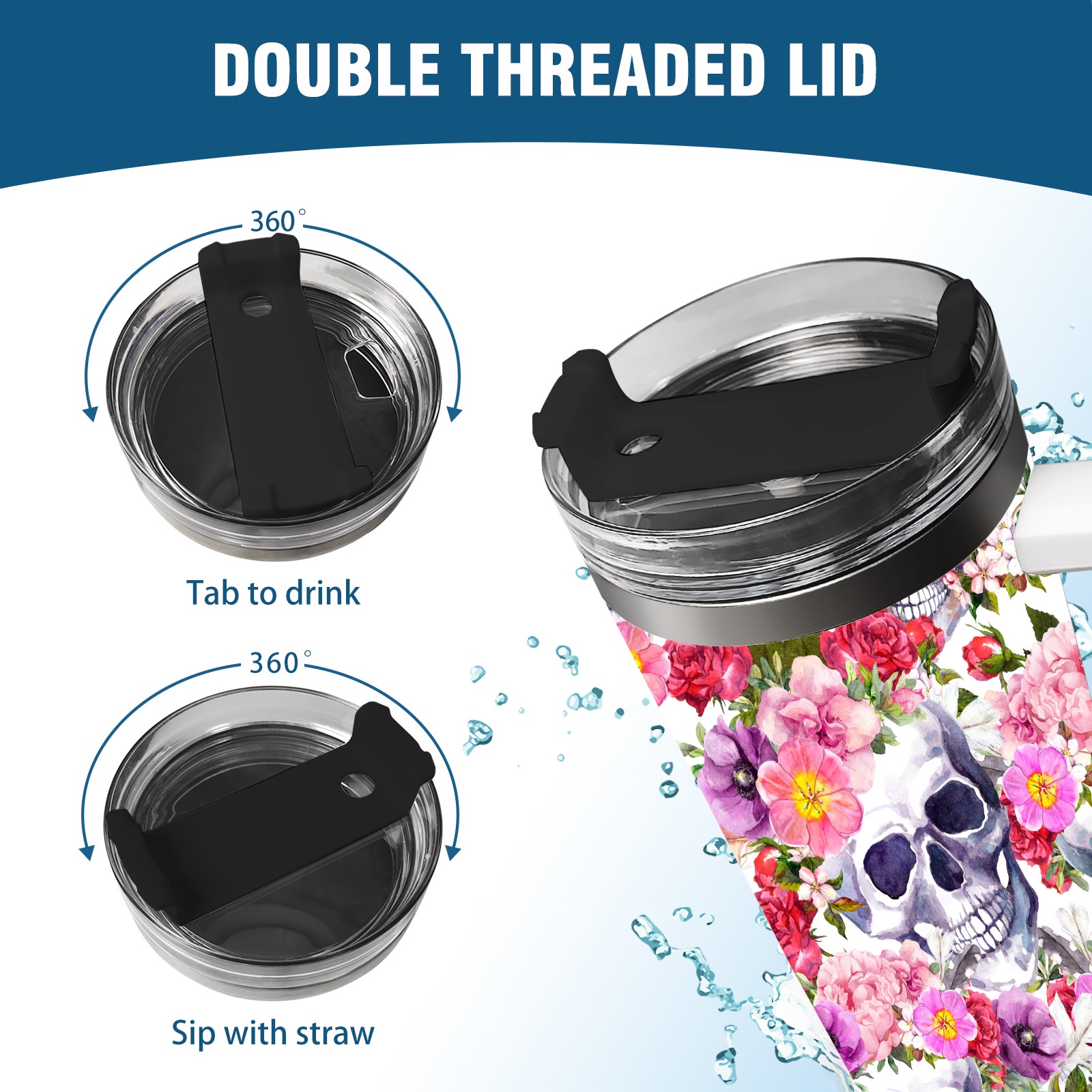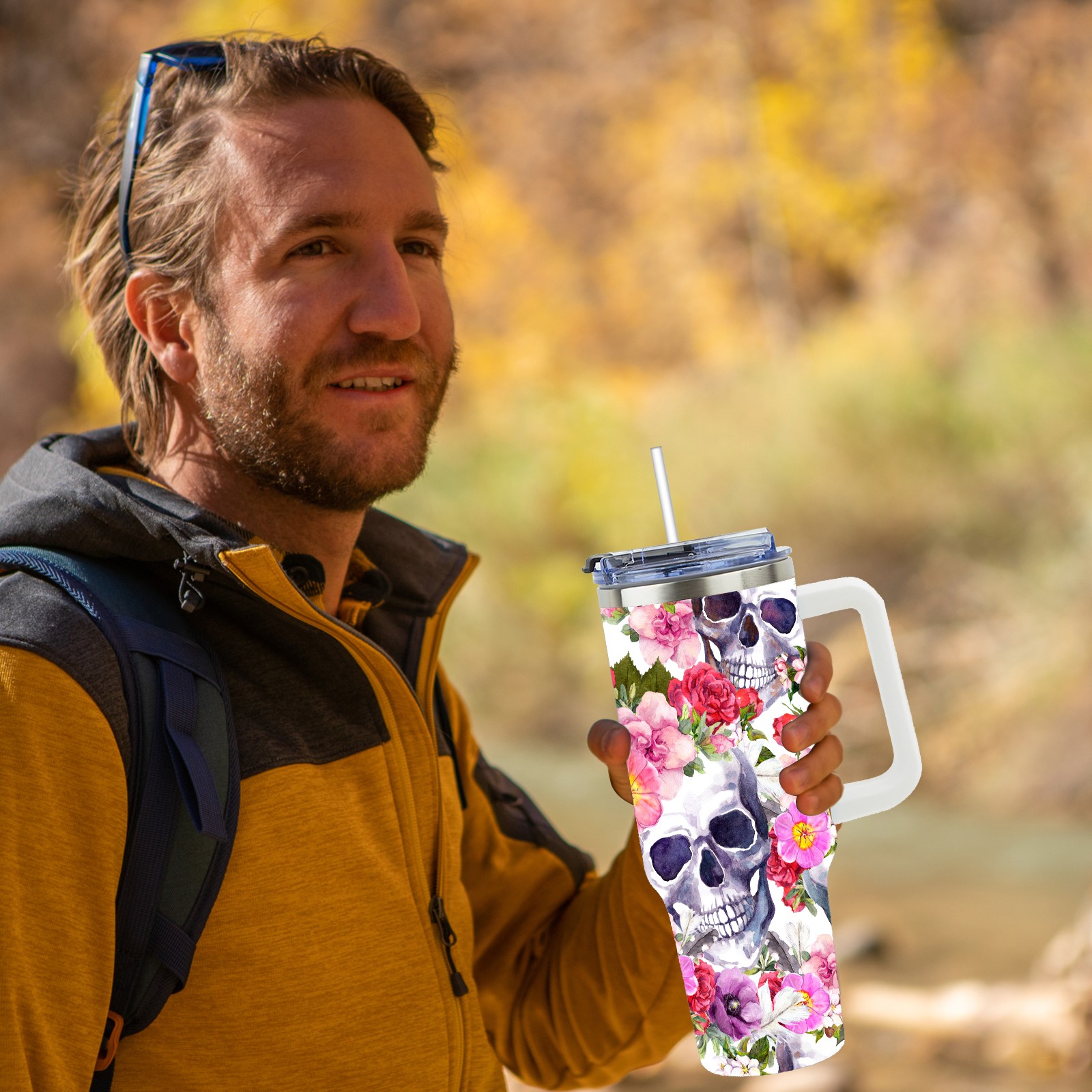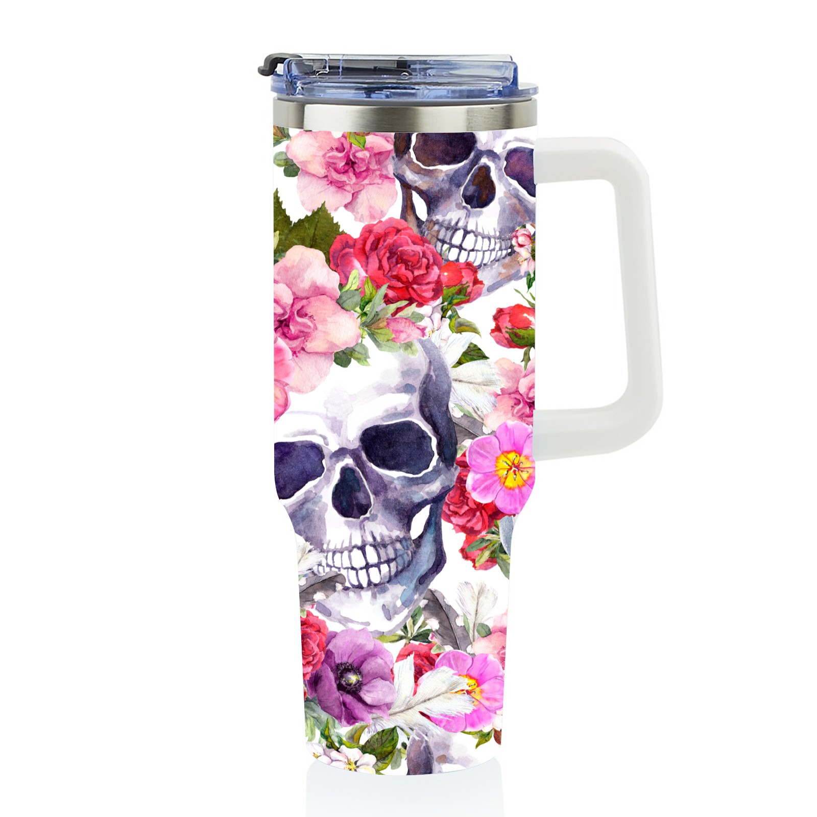 40 унций полностью напечатанный автомобильный стакан Skull And Flowers