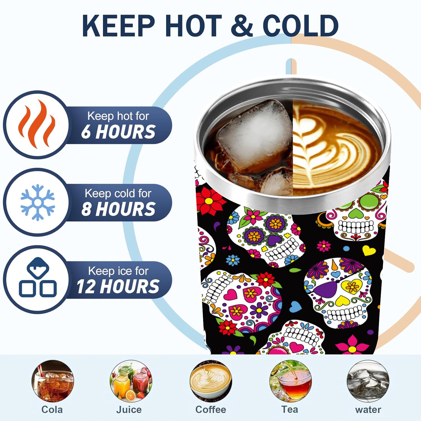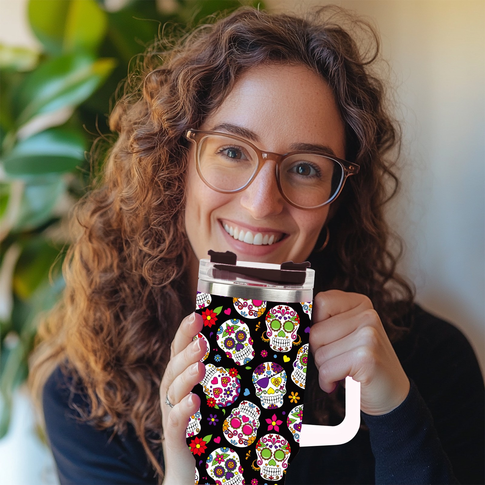 40 унций полностью напечатанный автомобильный стакан Colorful Skull