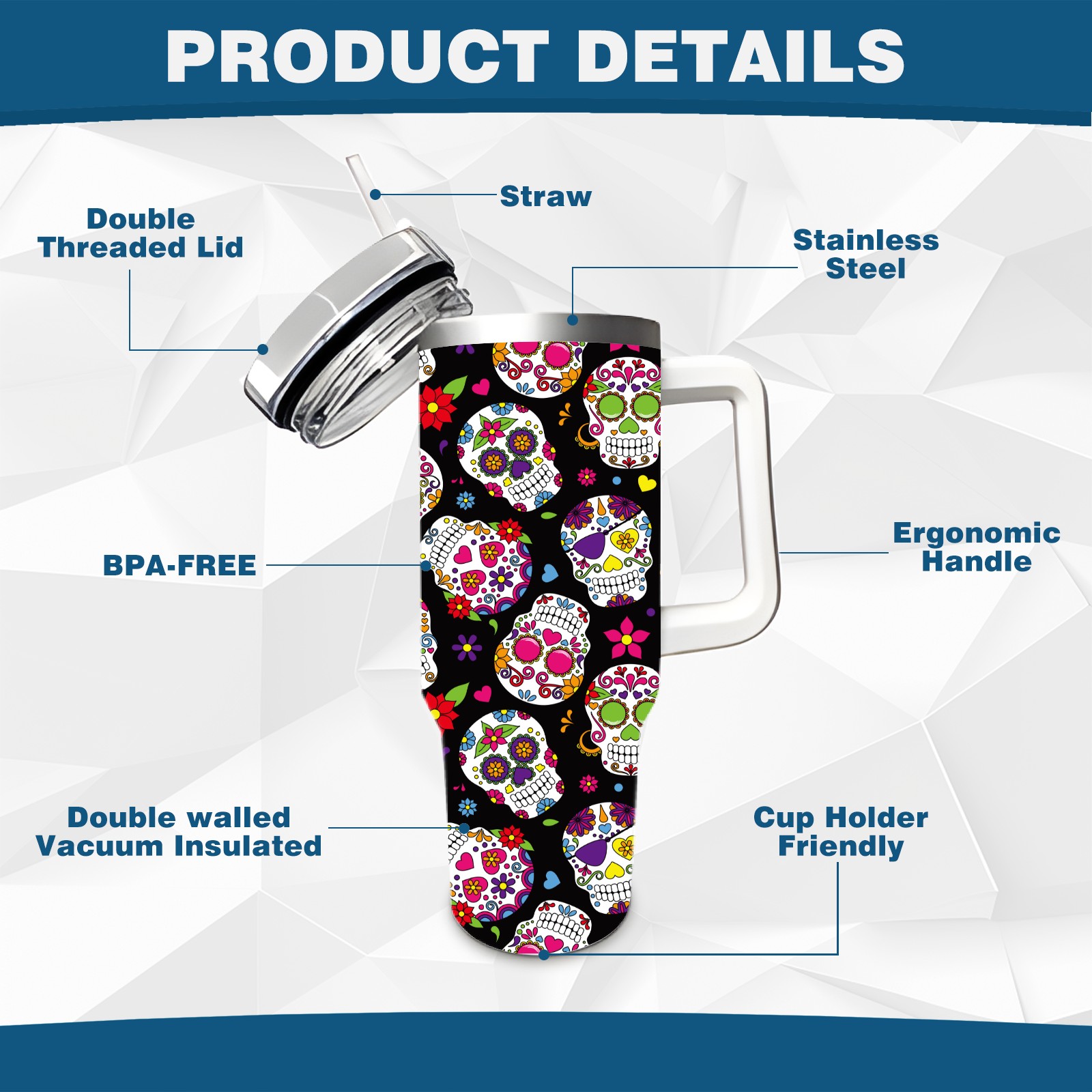 40 унций полностью напечатанный автомобильный стакан Mexico Sugar Skull Floral