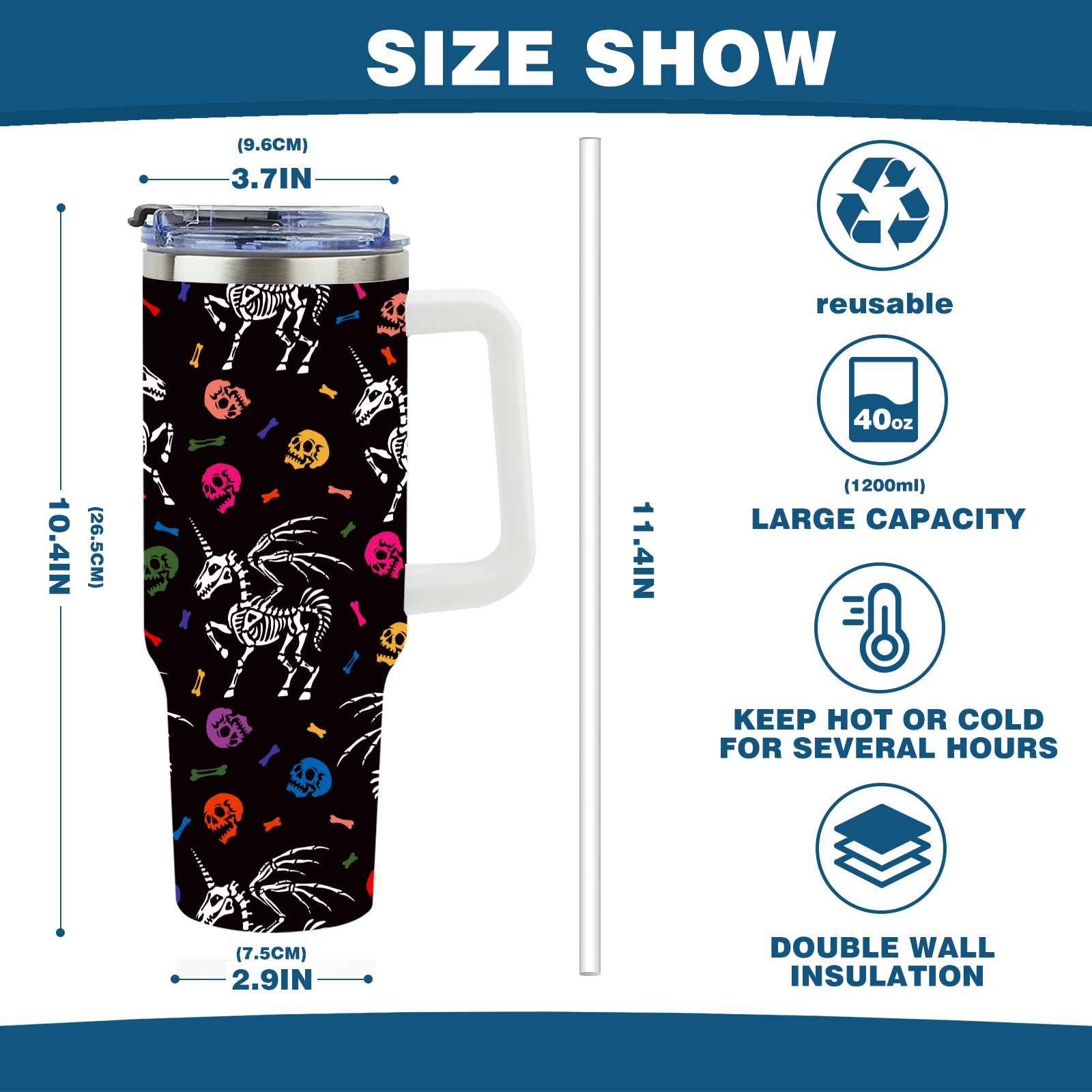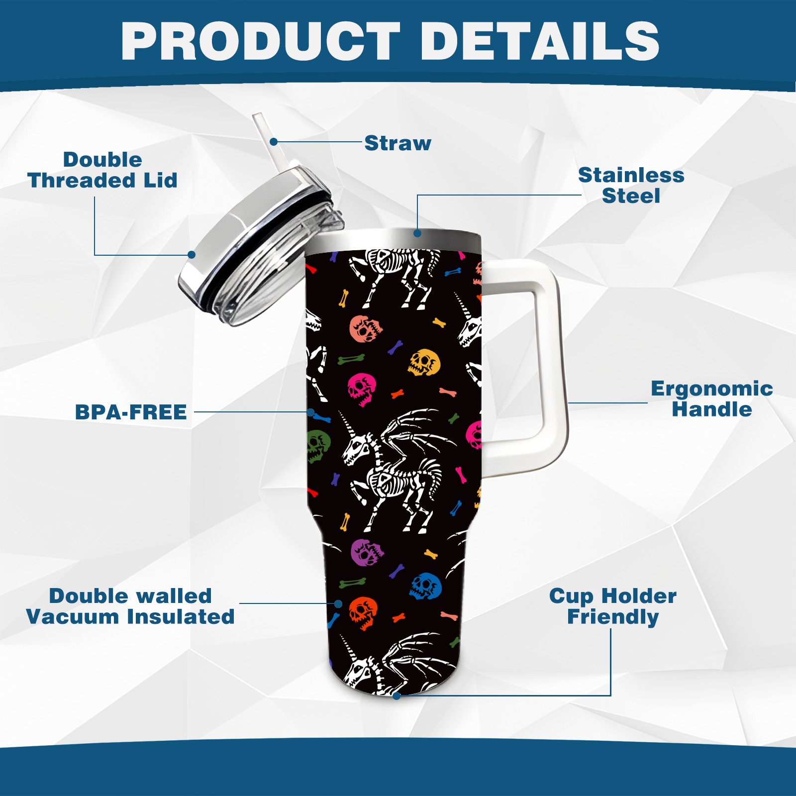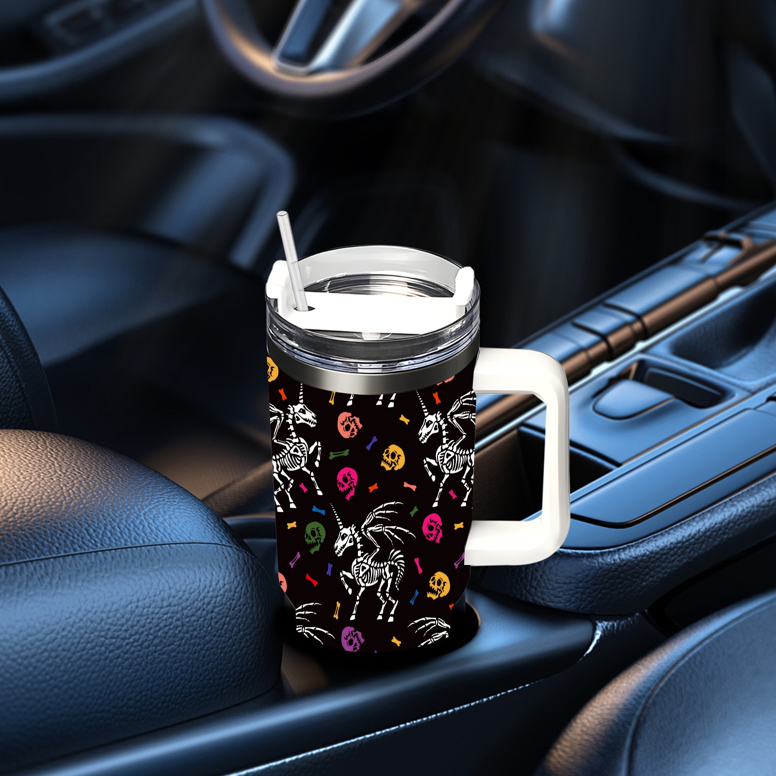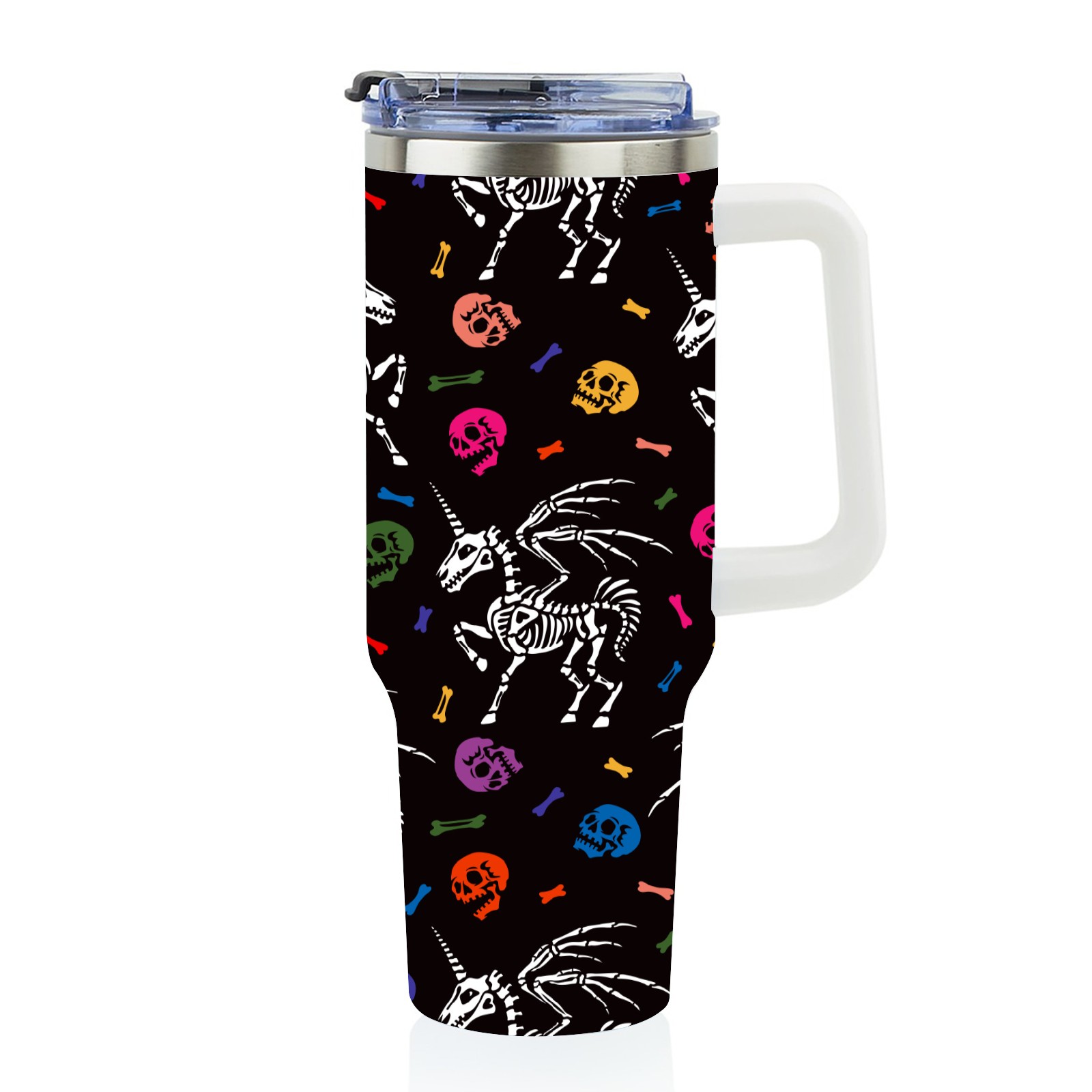 40 унций полностью напечатанный автомобильный стакан Unicron Skeleton Colorful Skull Head