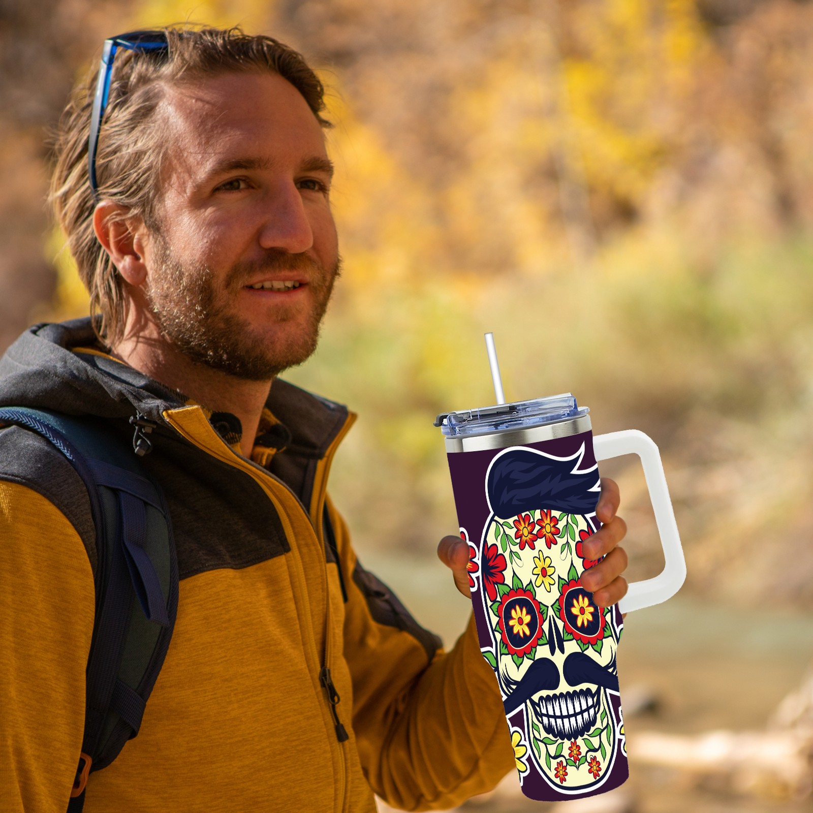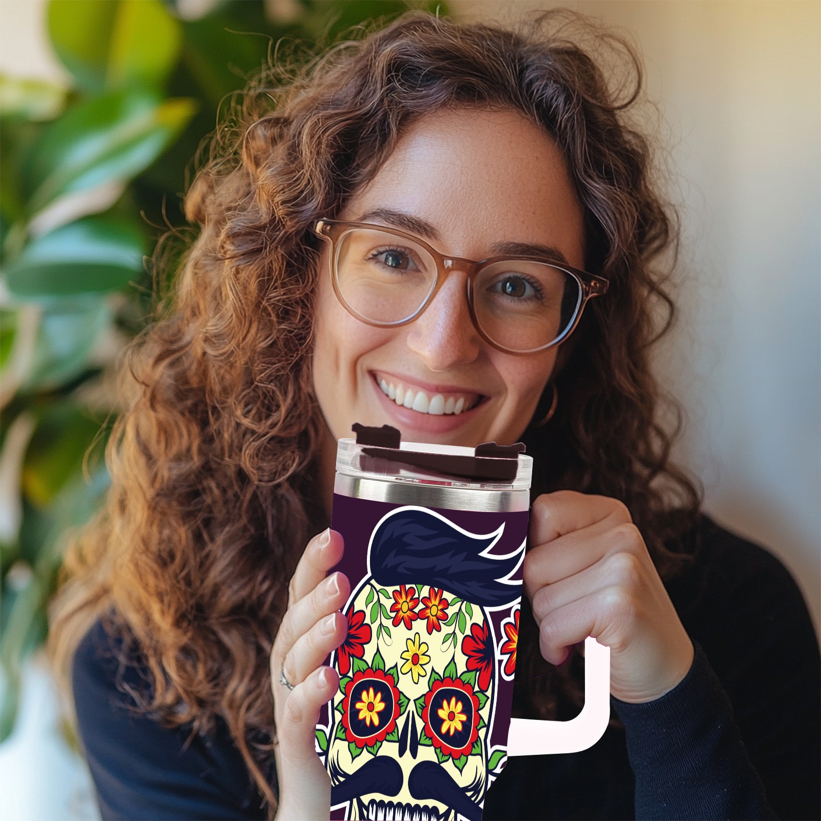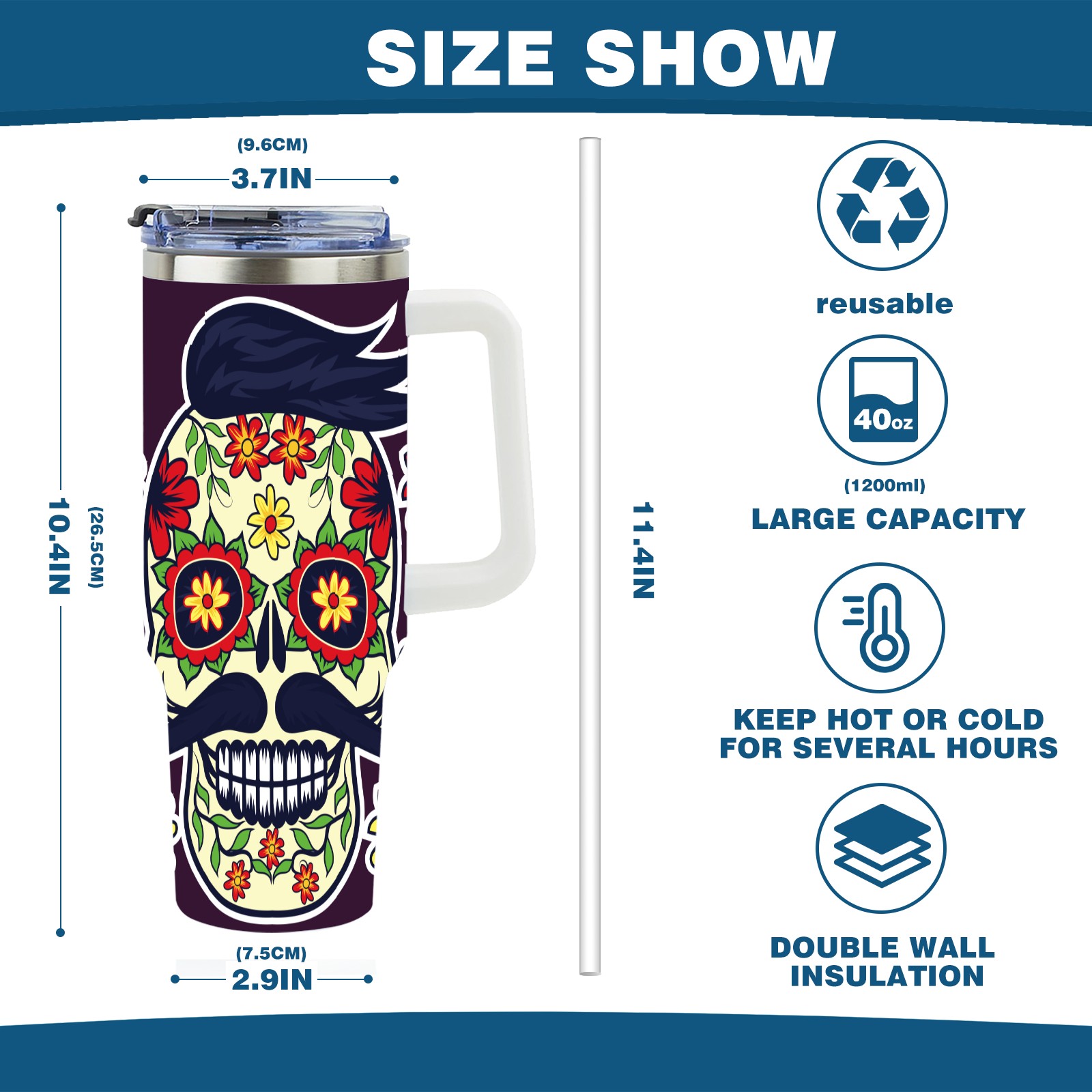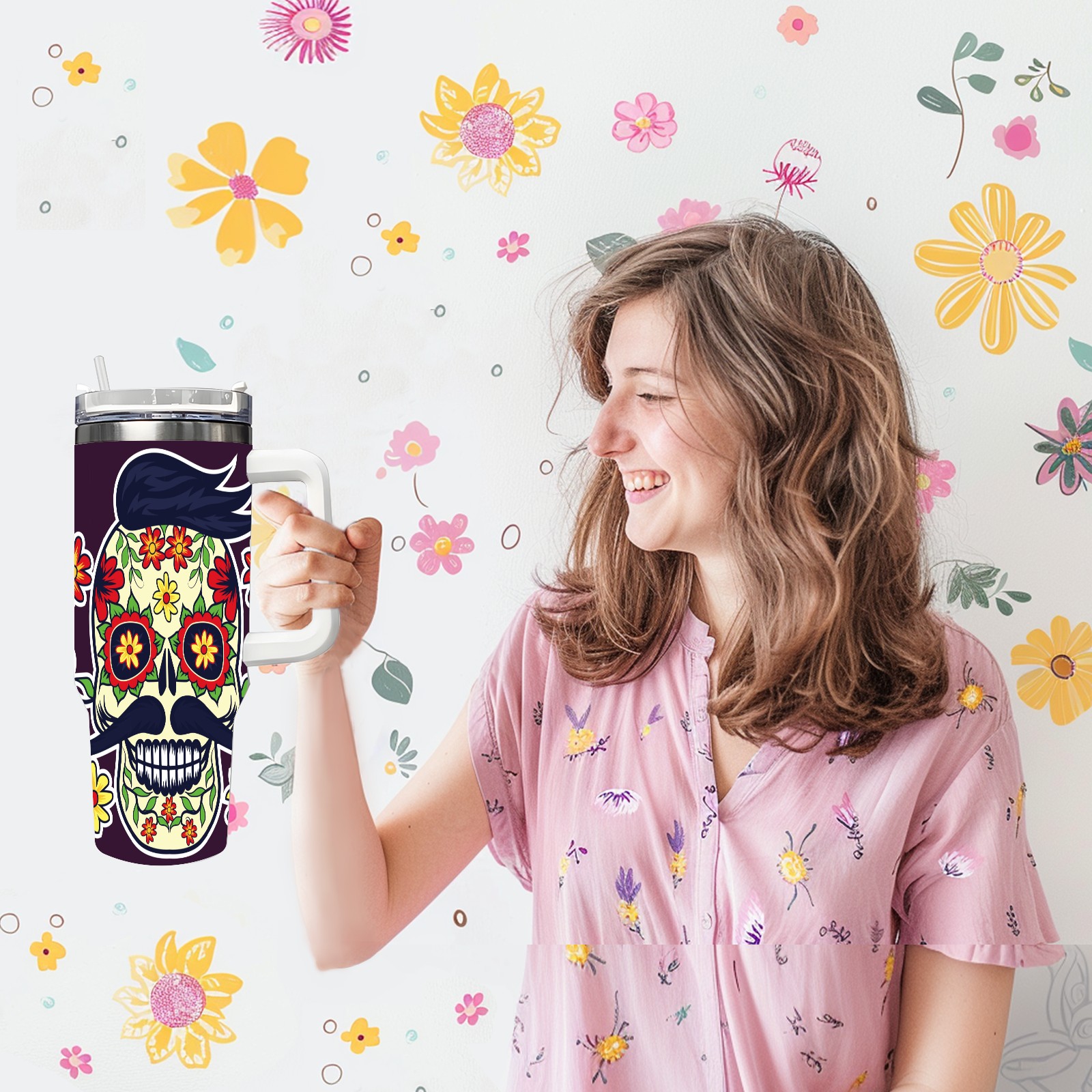 40 унций полностью напечатанный автомобильный стакан Sugar Skull Day Of The Dead