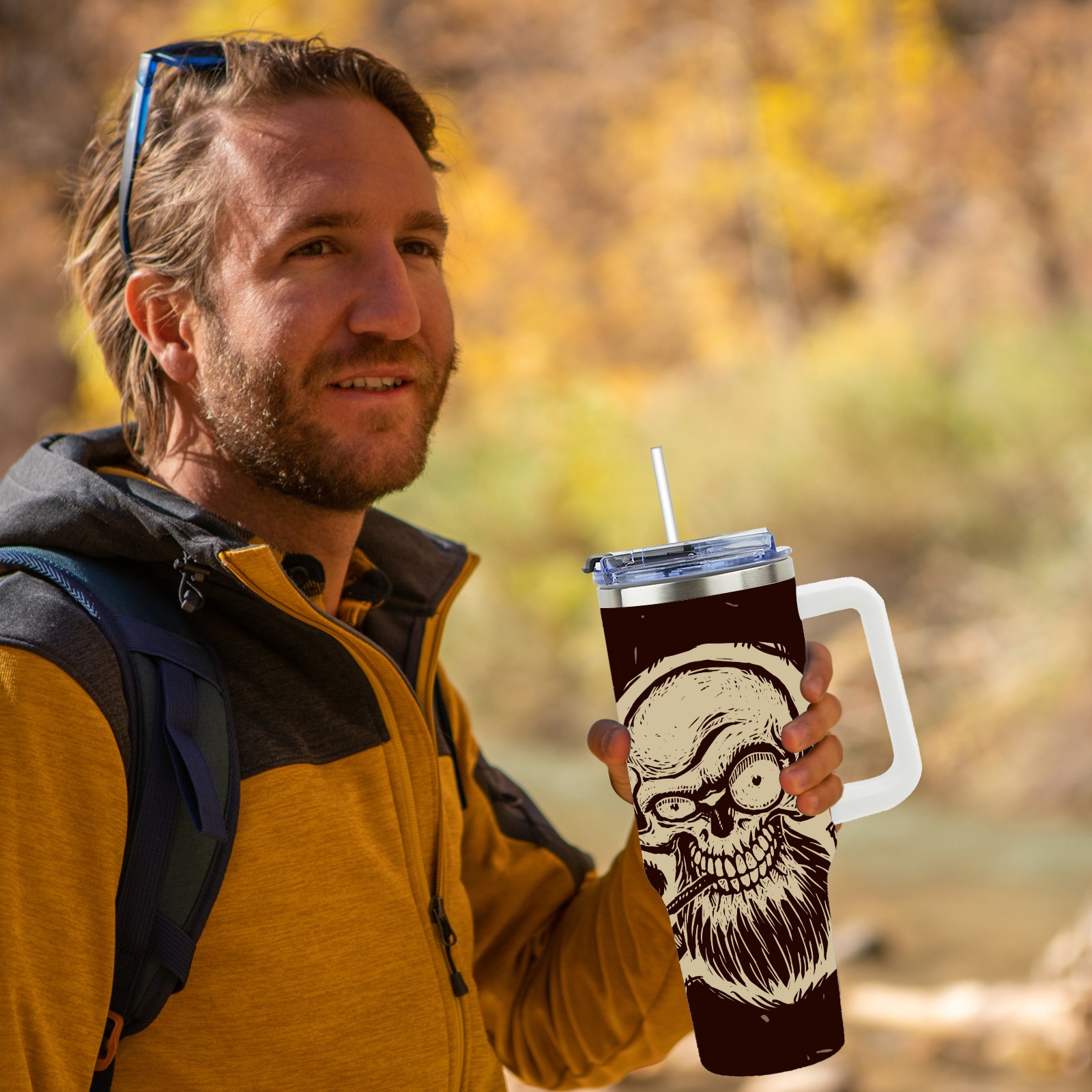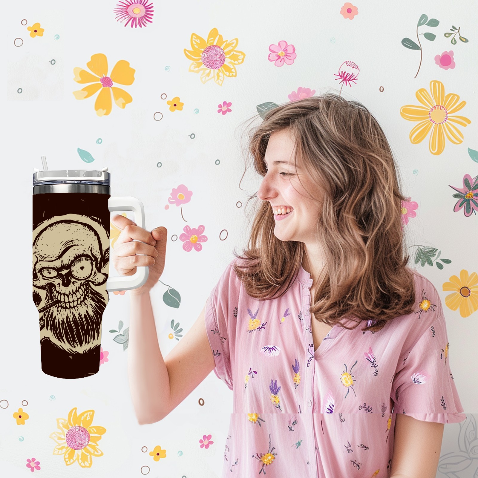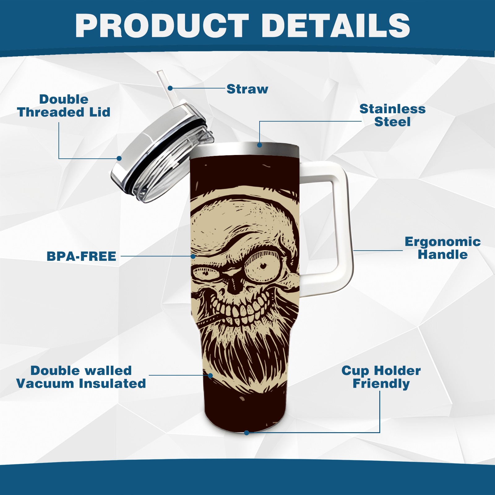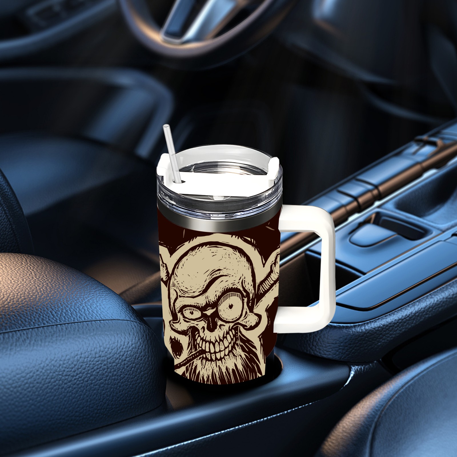 40 унций полностью напечатанный автомобильный стакан Vintage Skull Pirate