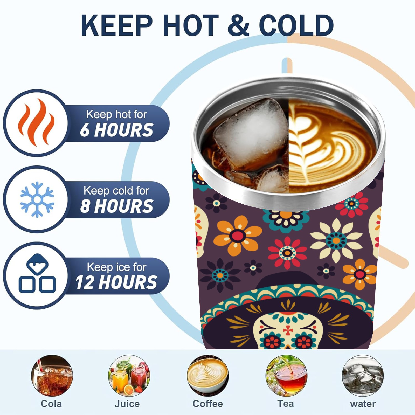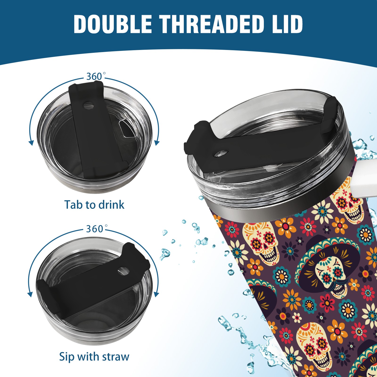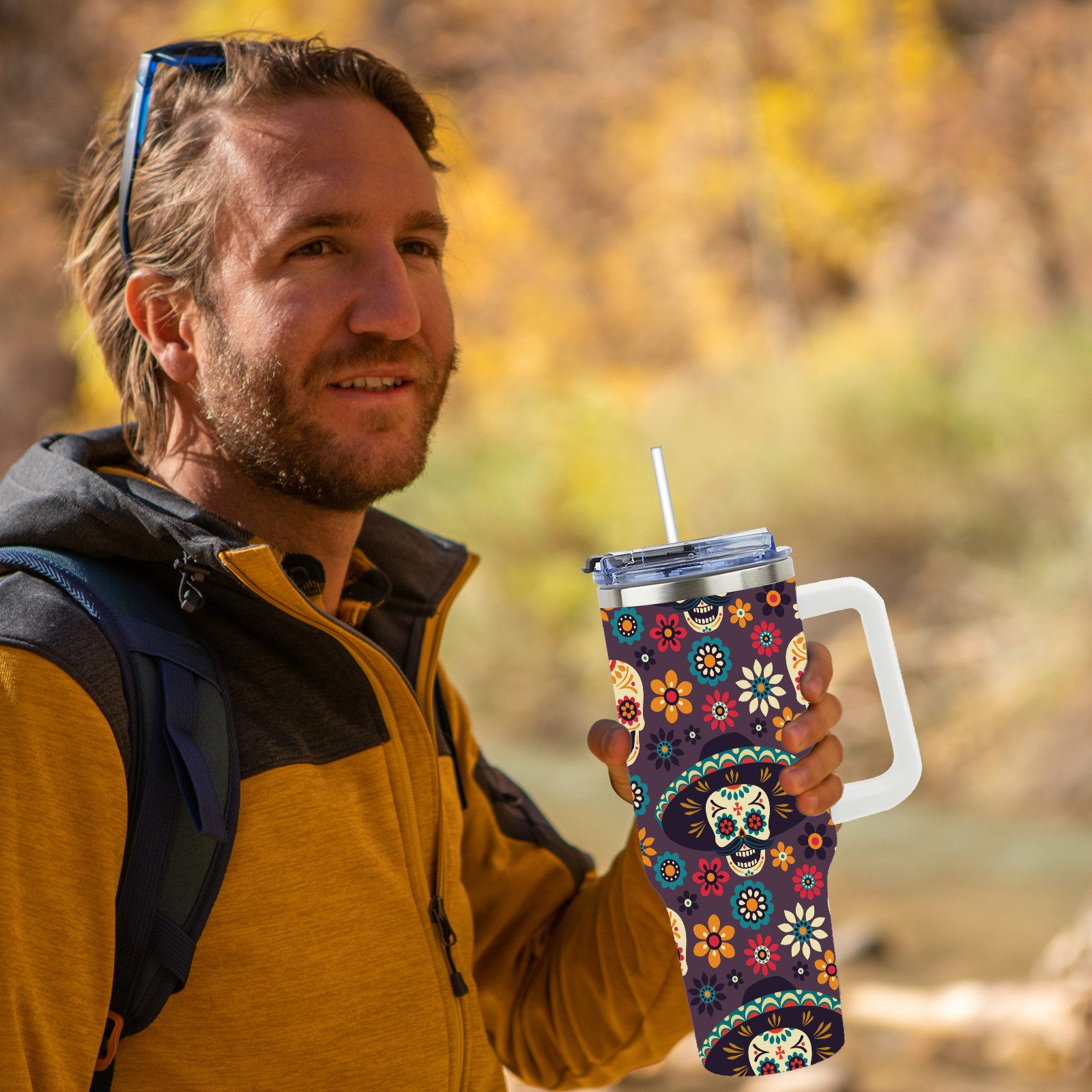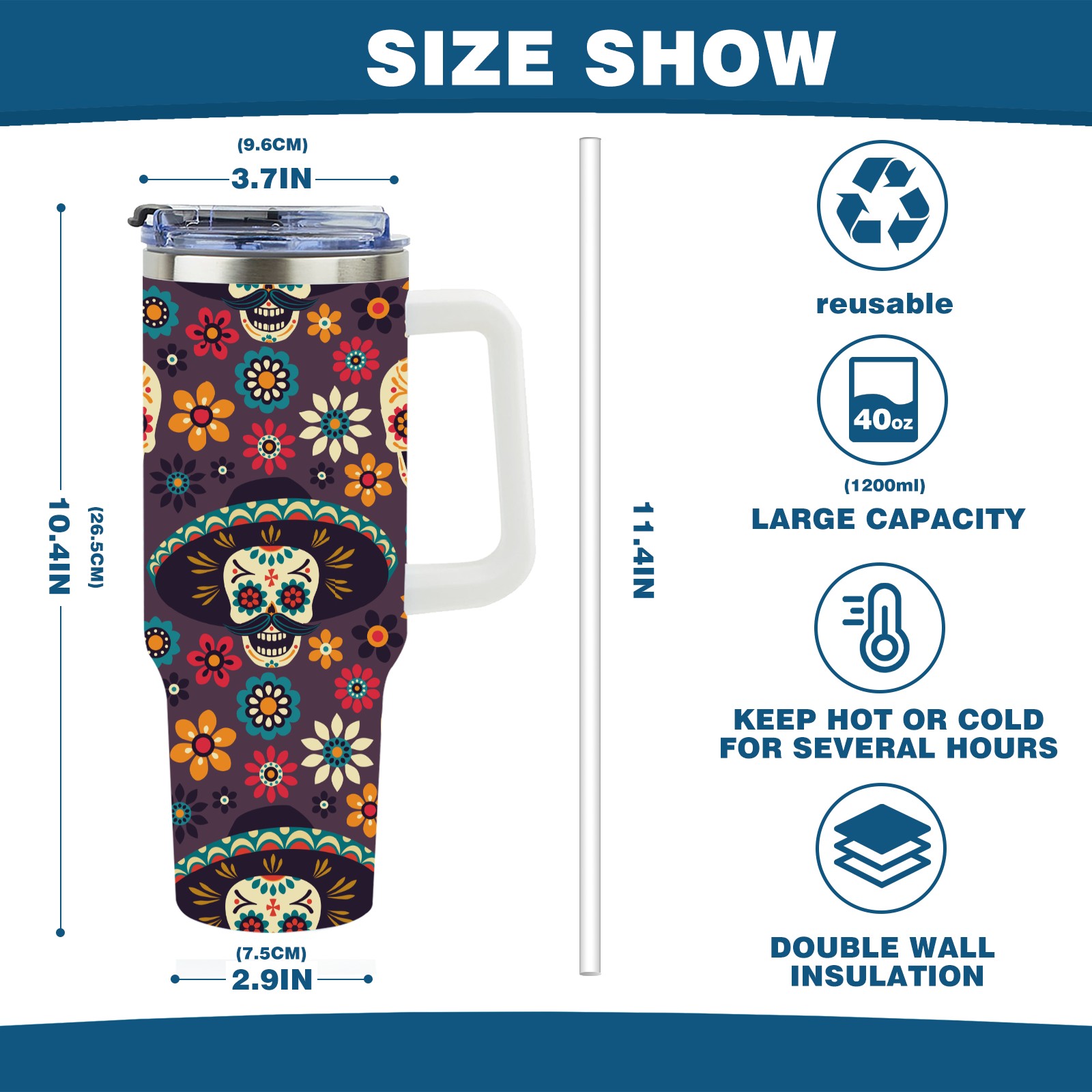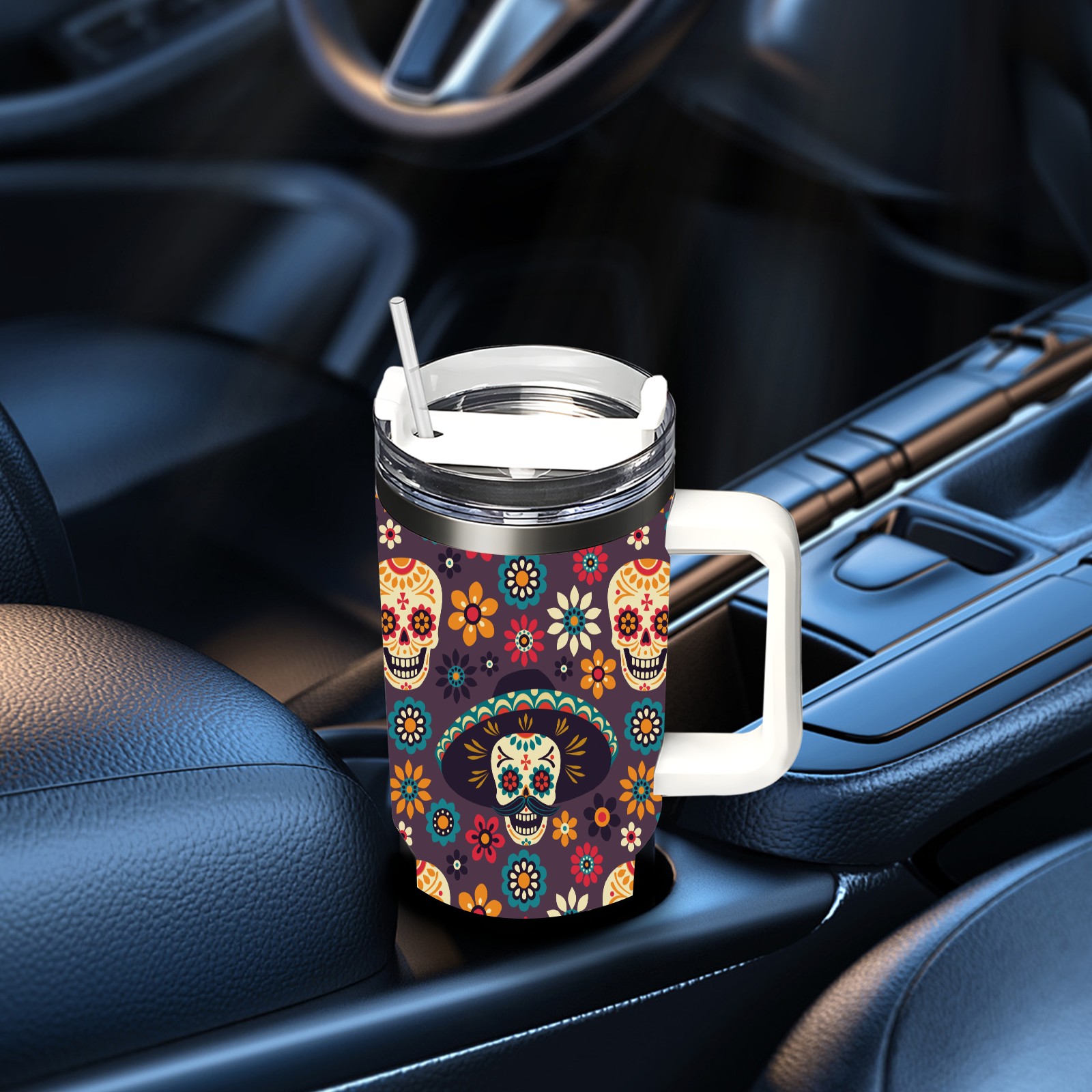 40 унций полностью напечатанный автомобильный стакан Sugar Skulls