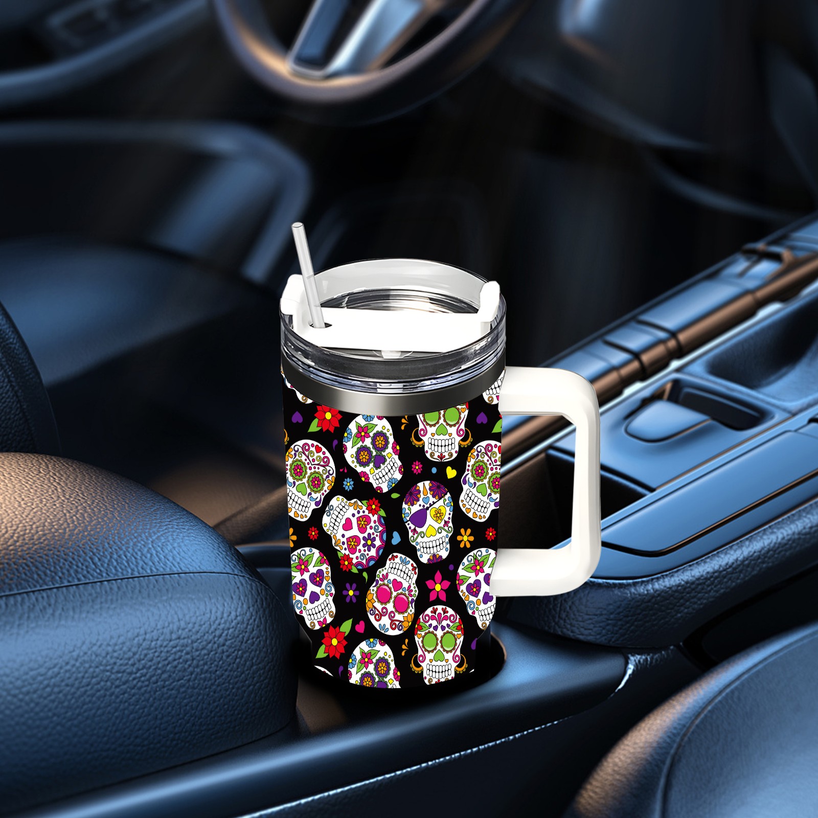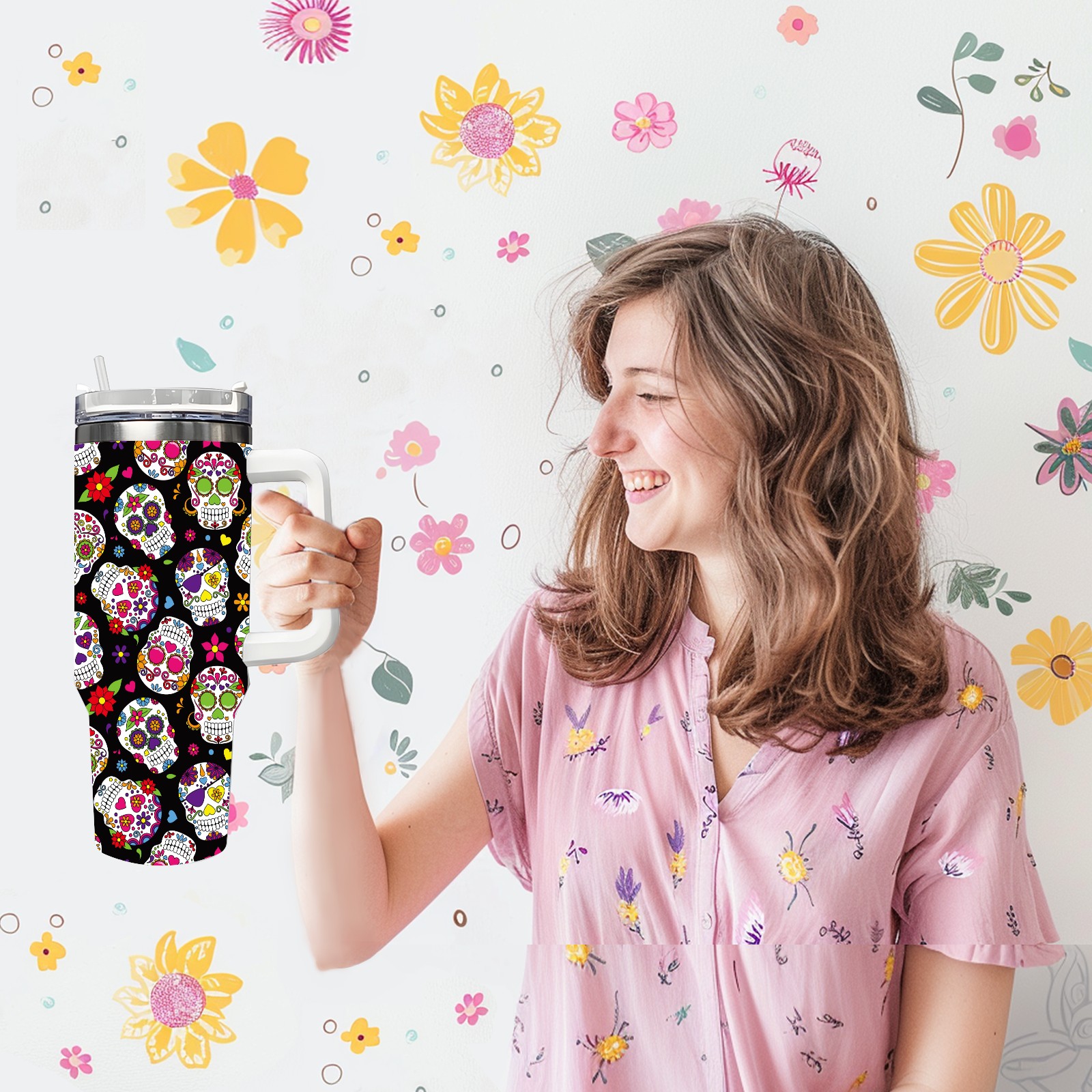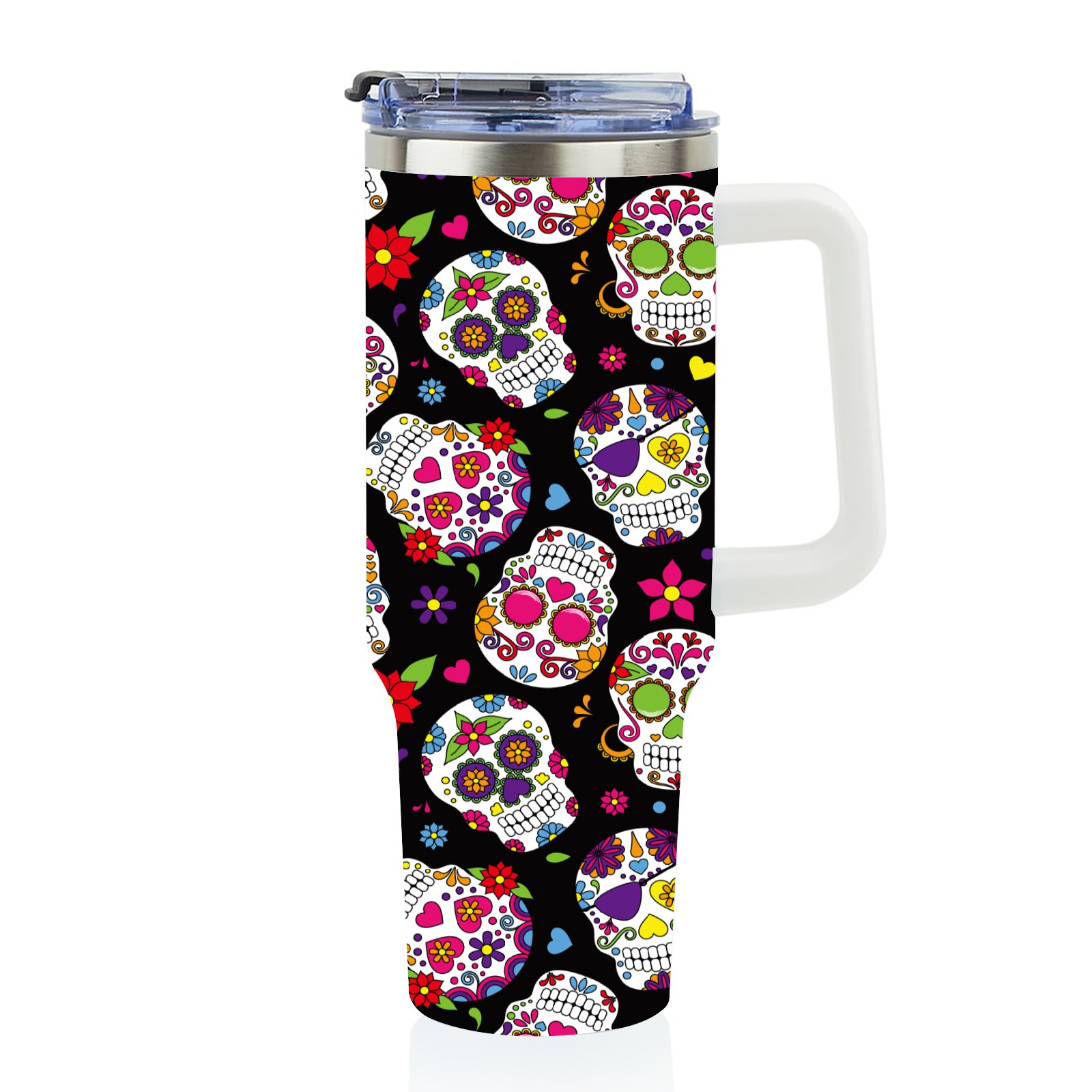 40 унций полностью напечатанный автомобильный стакан Colorful Sugar Skulls