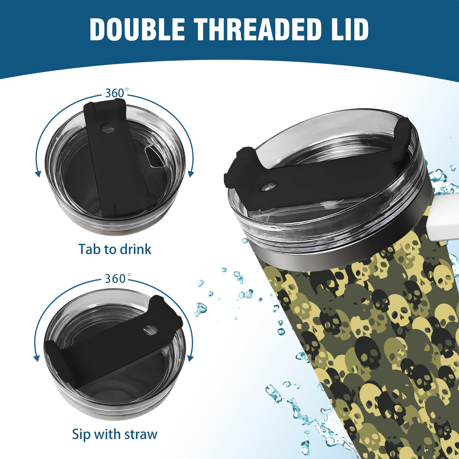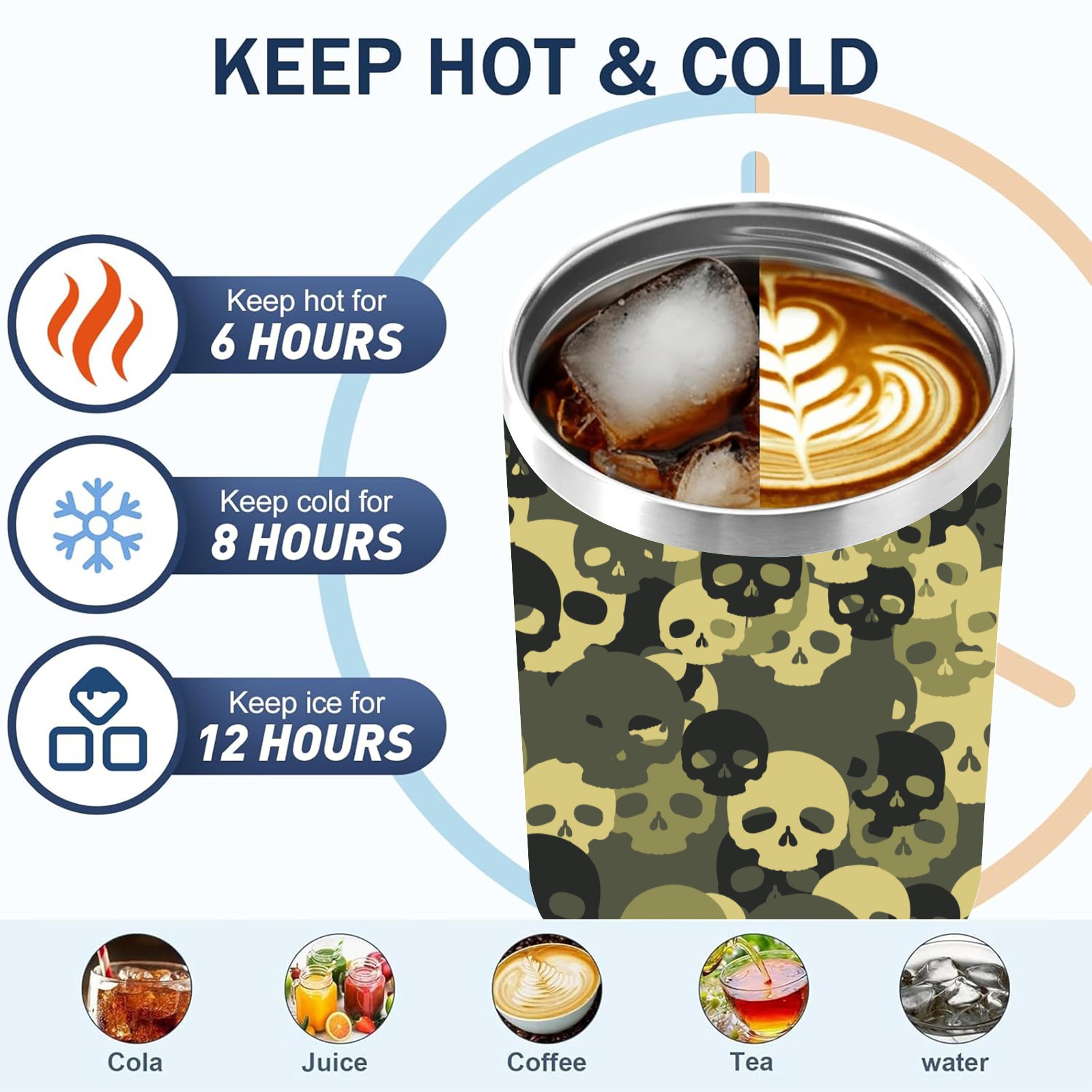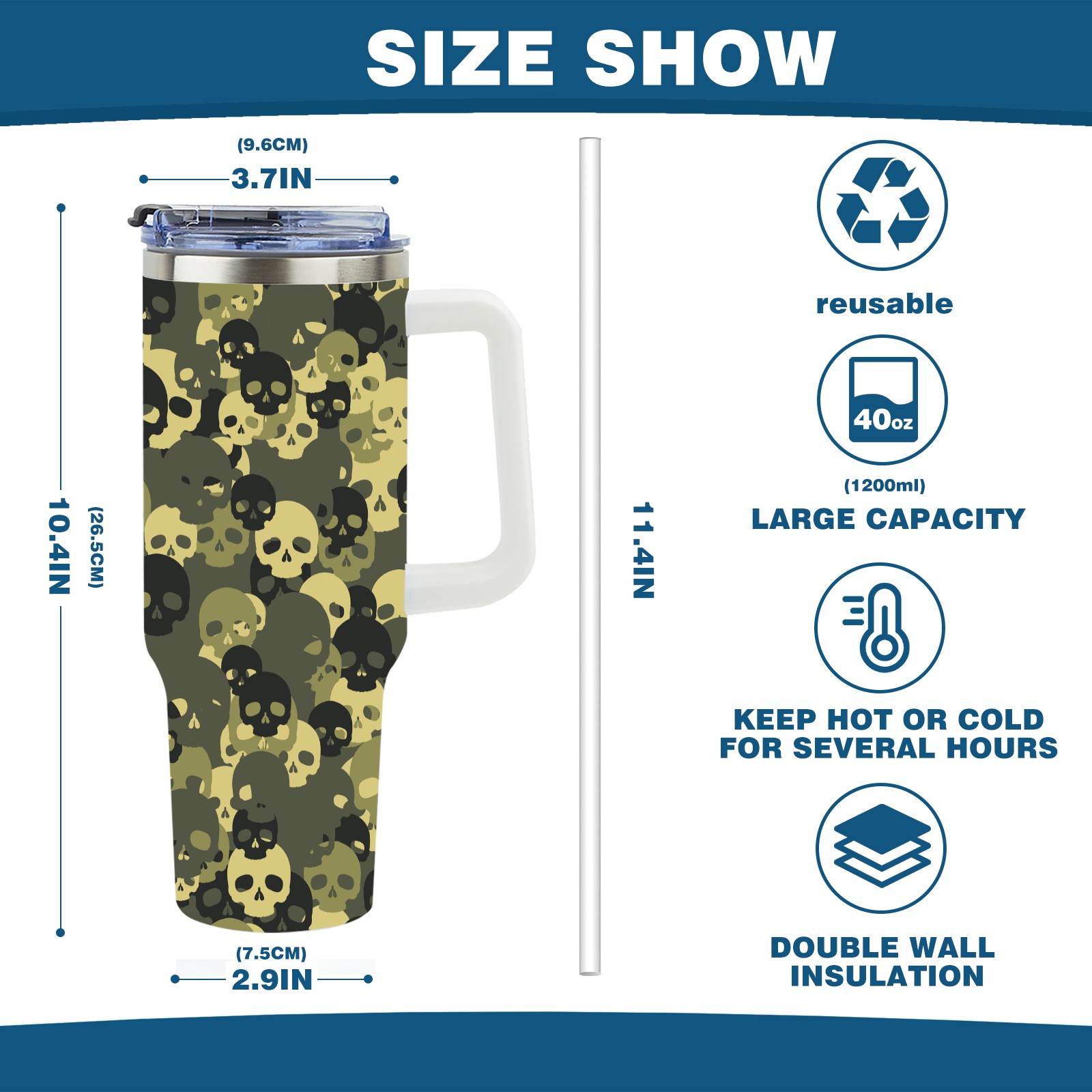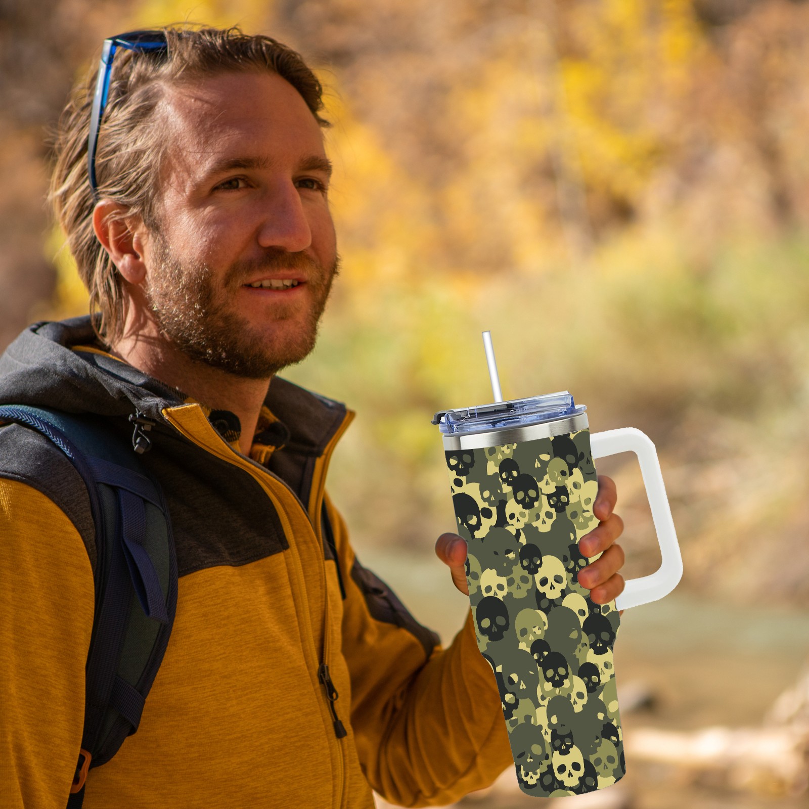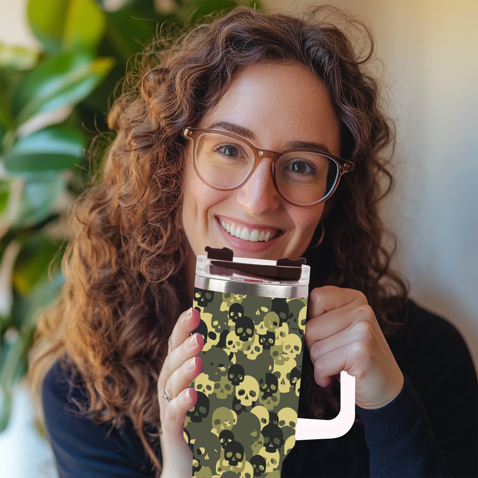 40 унций полностью напечатанный автомобильный стакан Army Green Skull Head Black Pattern