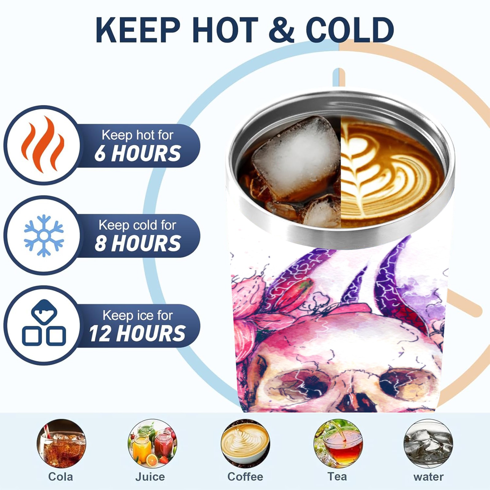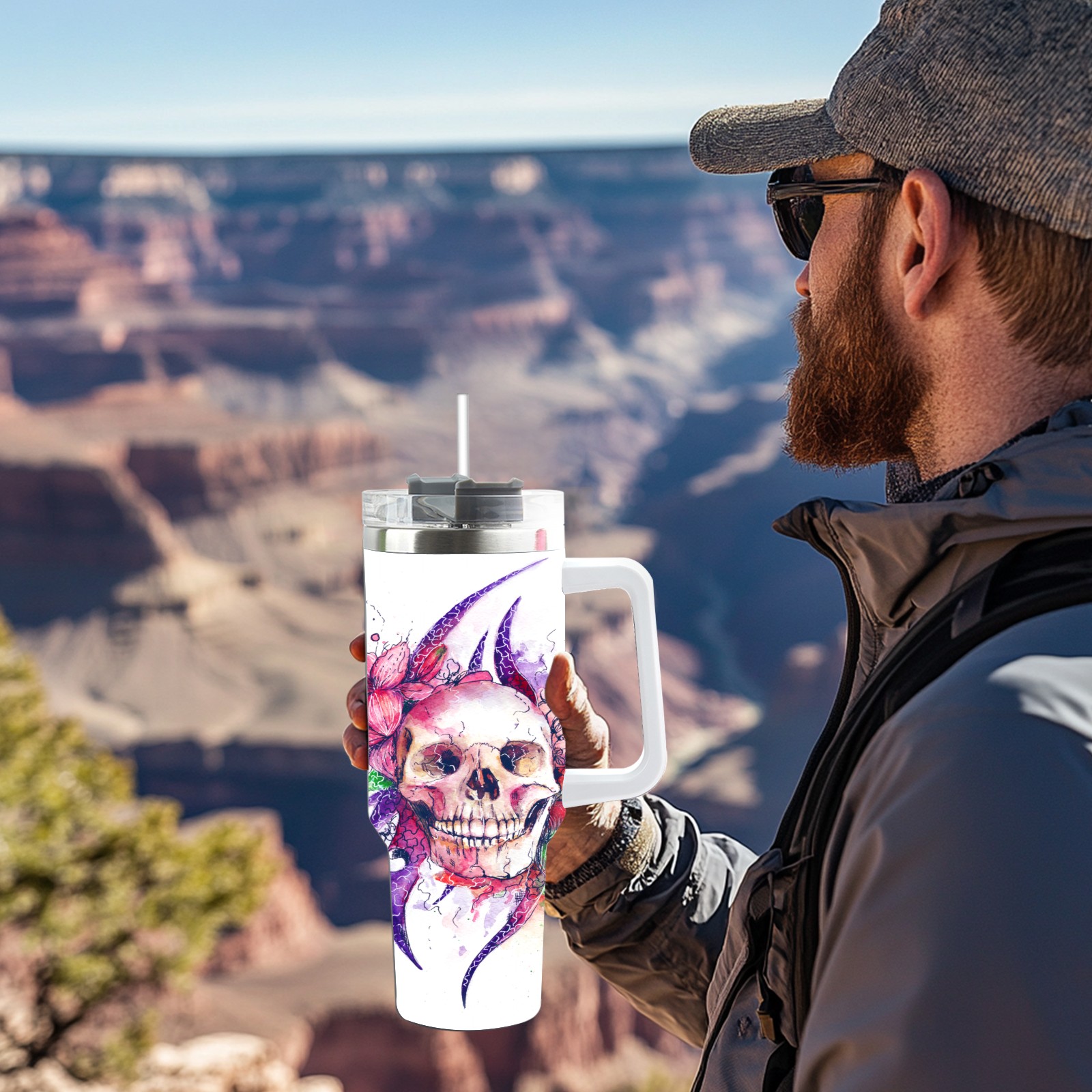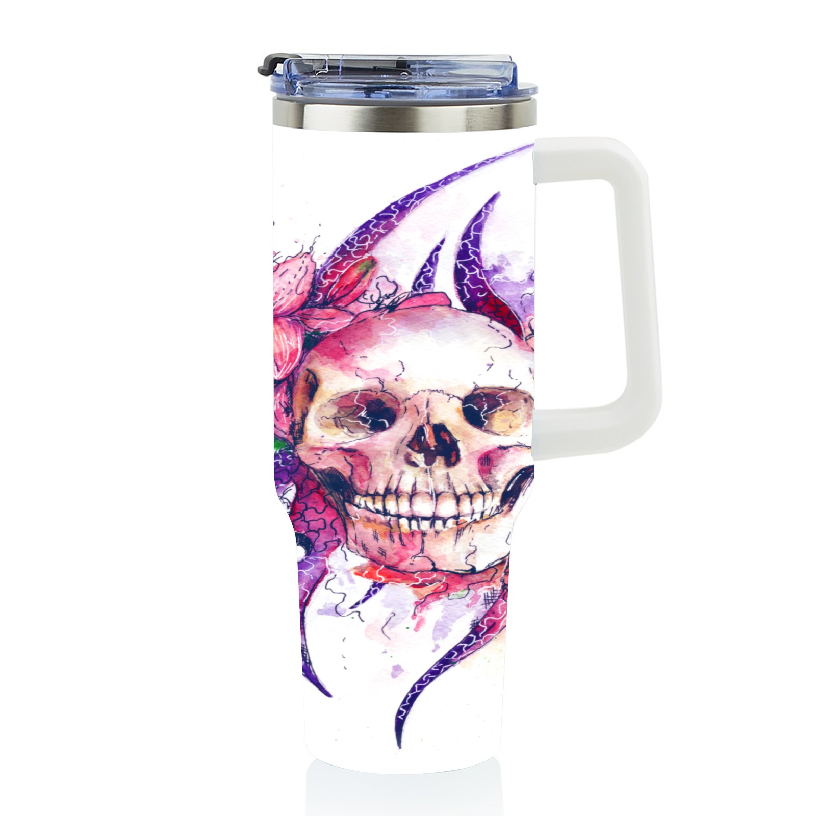 40 унций полностью напечатанный автомобильный стакан Watercolor Sugar Skull Floral