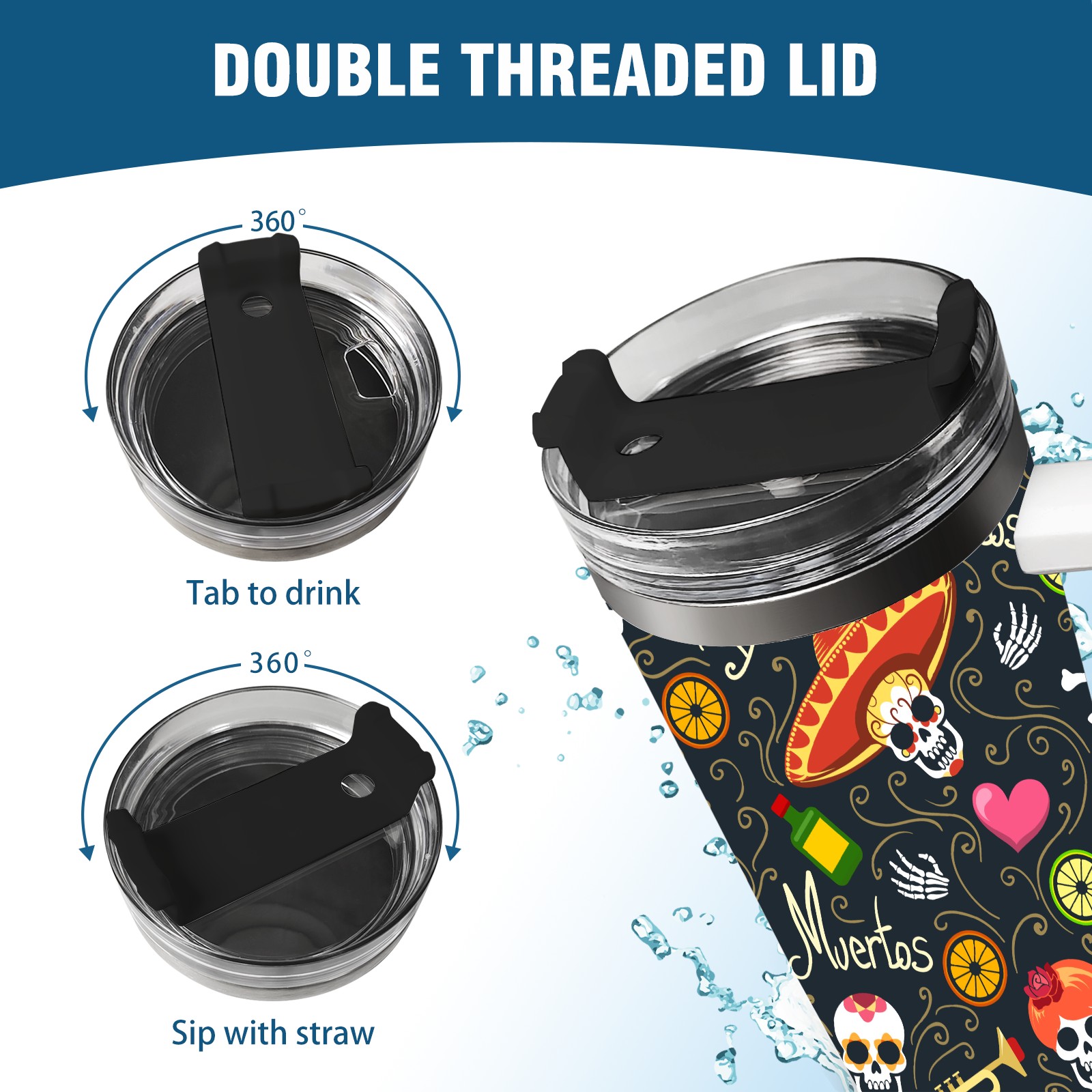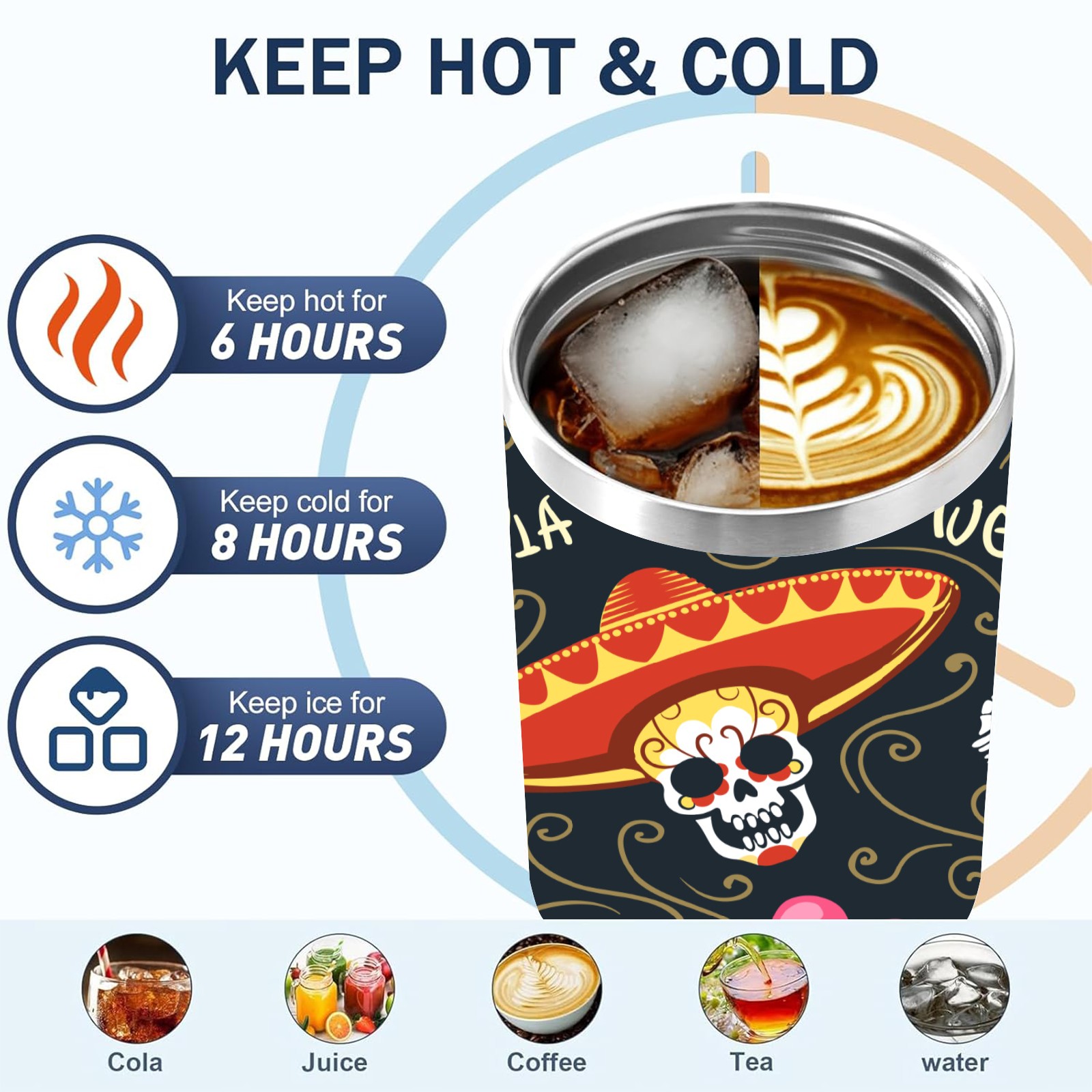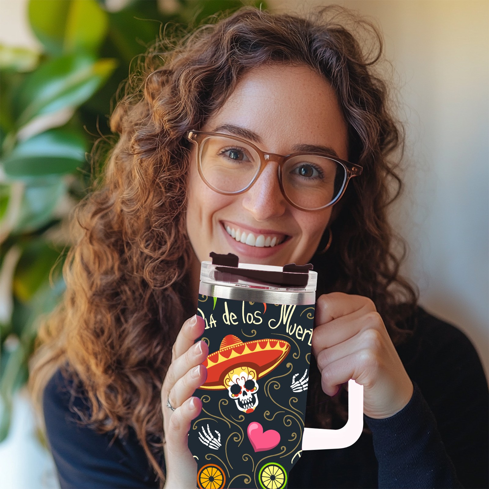 40 унций полностью напечатанный автомобильный стакан Mexico Sugar Skull Floral Heart
