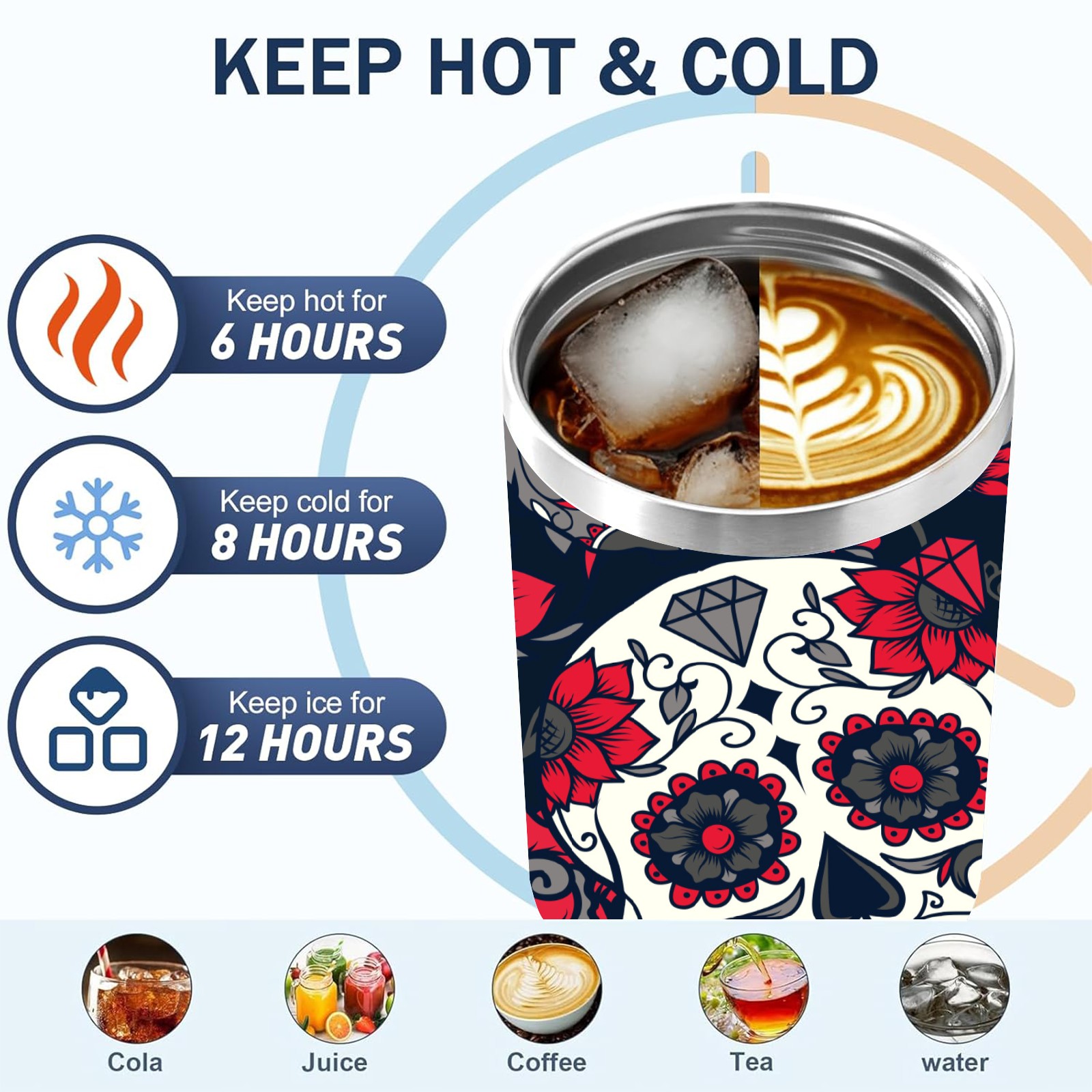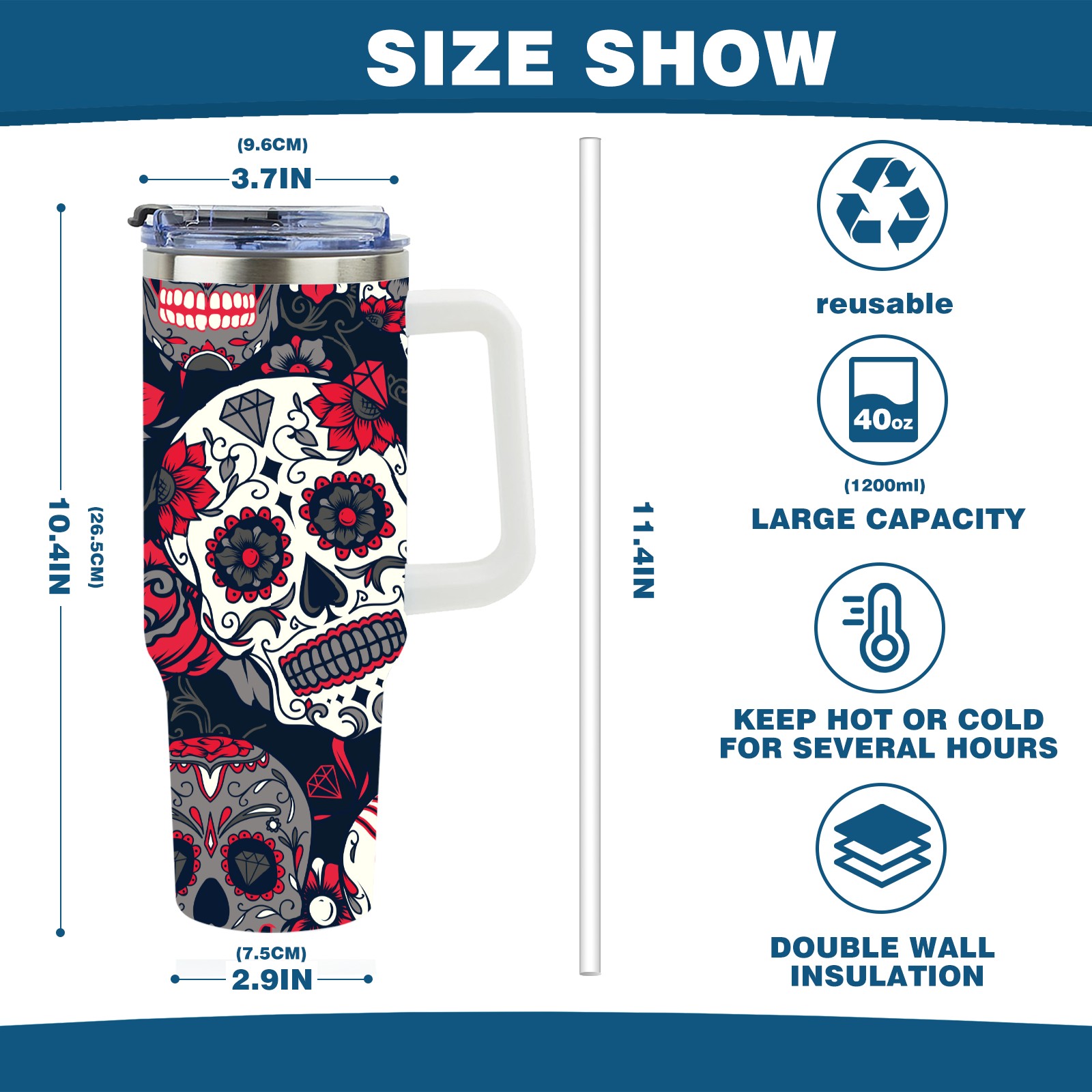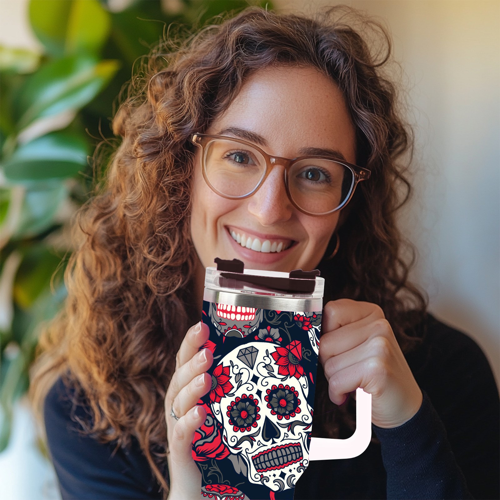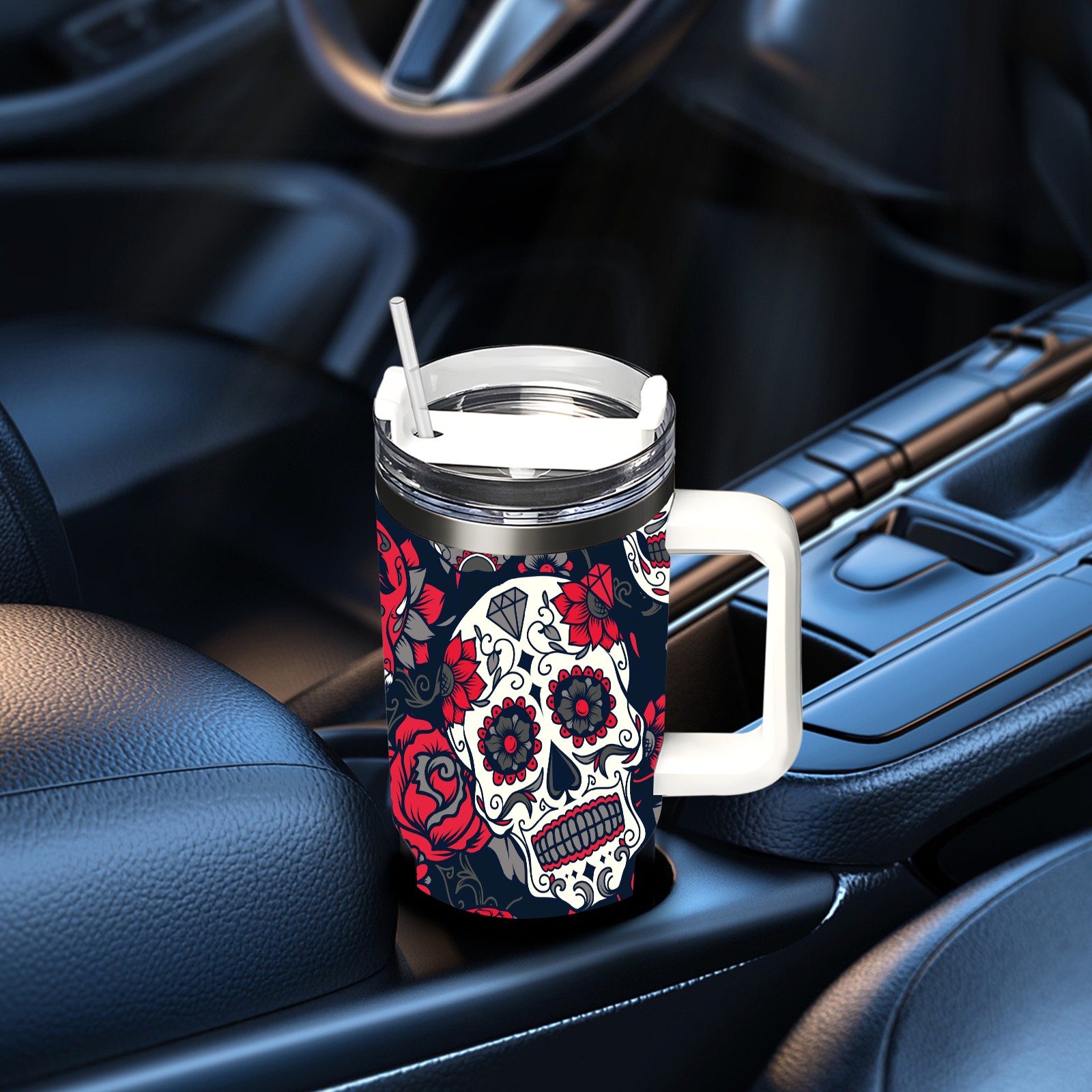 40 унций полностью напечатанный автомобильный стакан Mexico Sugar Skull Rose