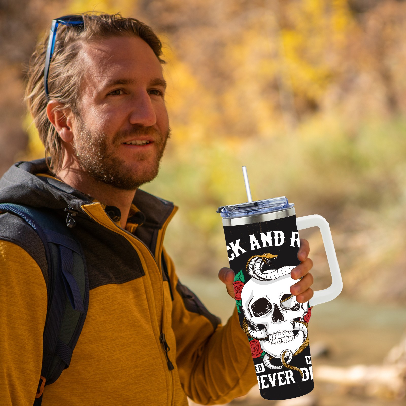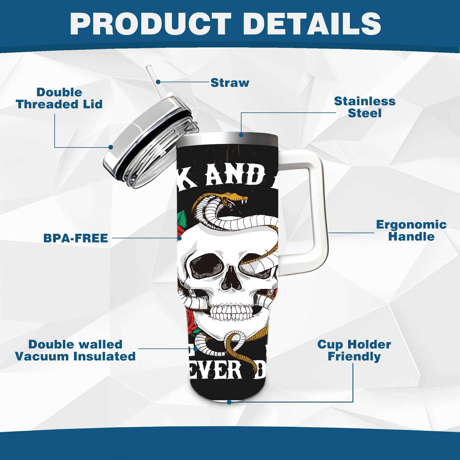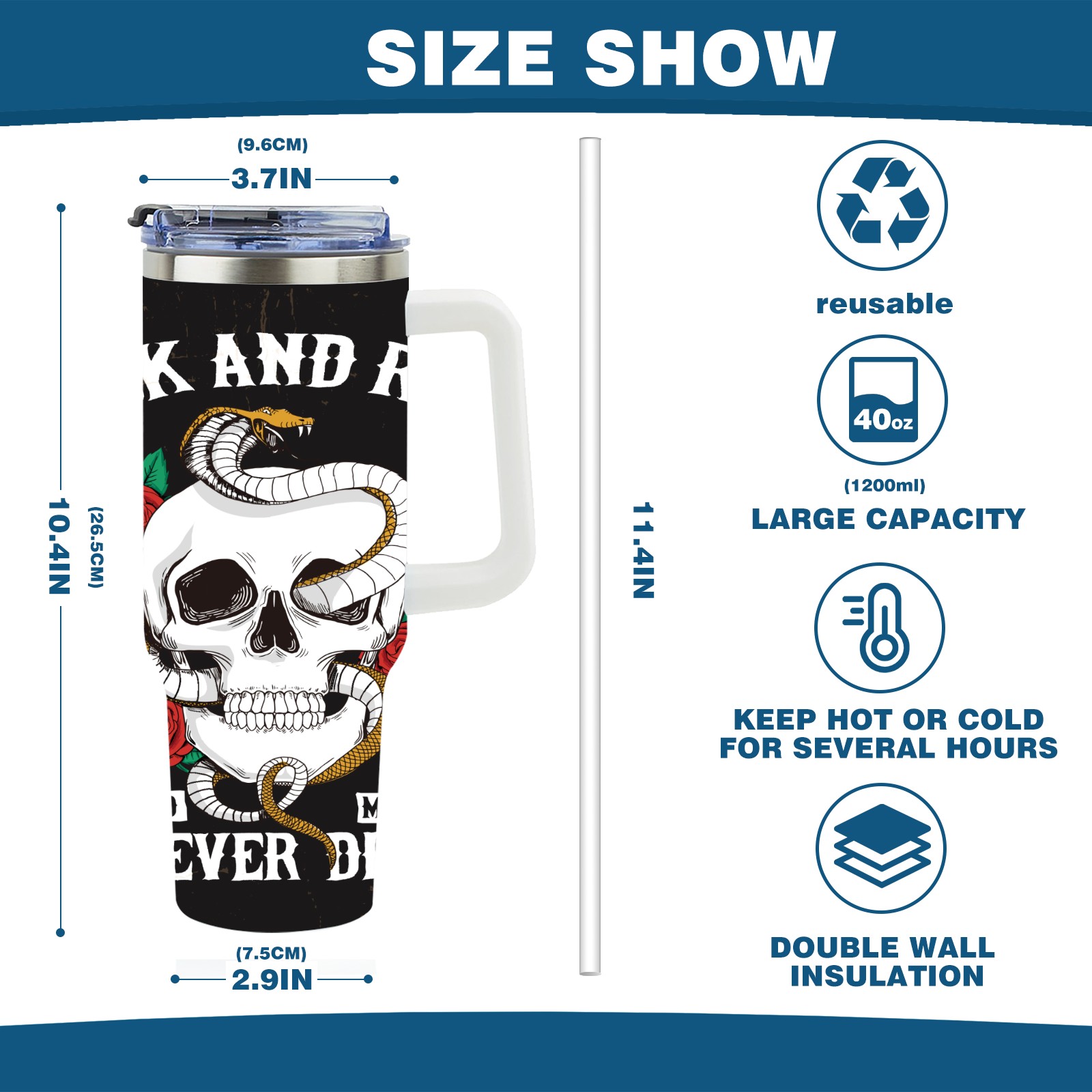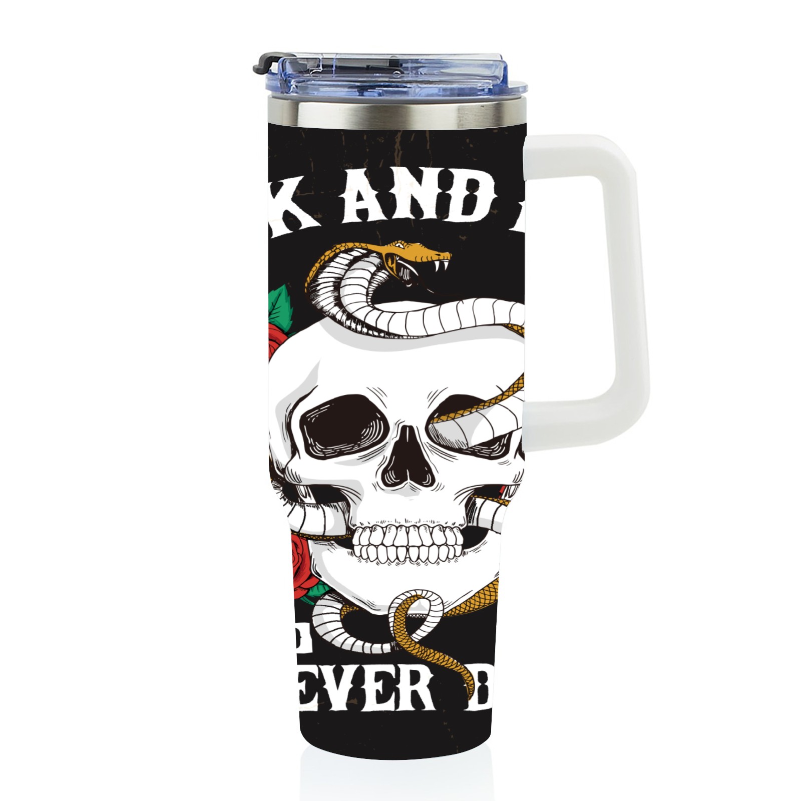 40 унций полностью напечатанный автомобильный стакан Rock And Roll Skull Rose Snake Cool