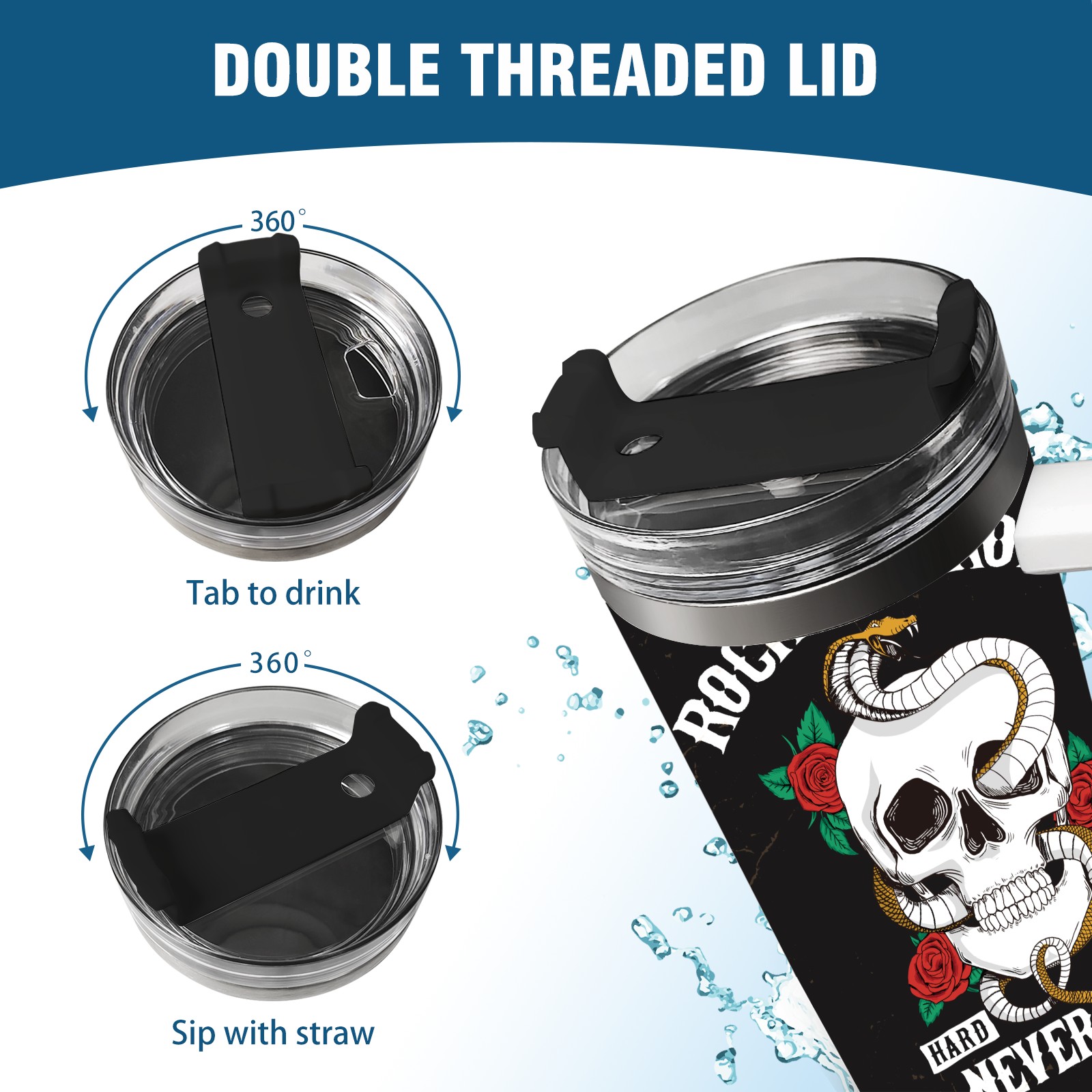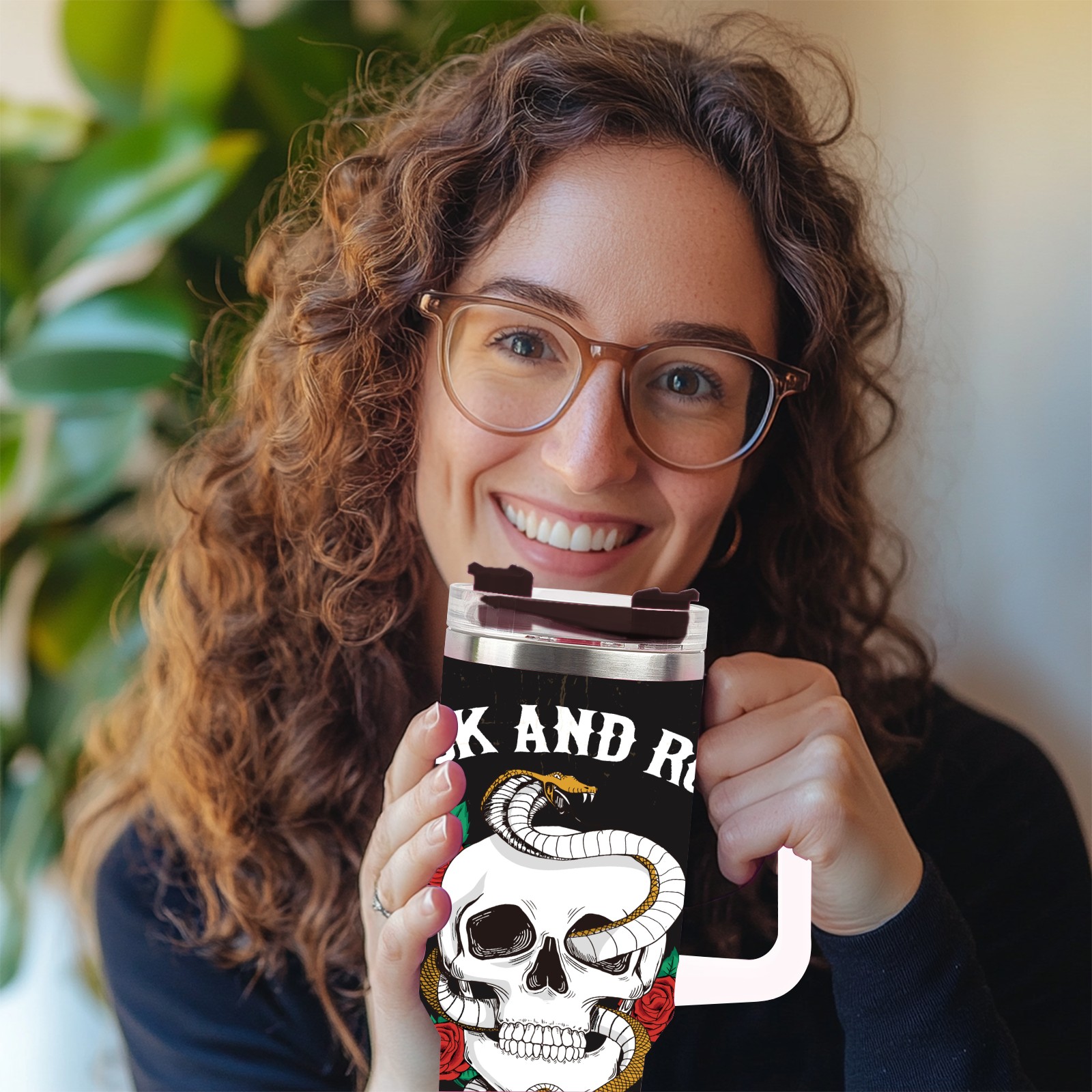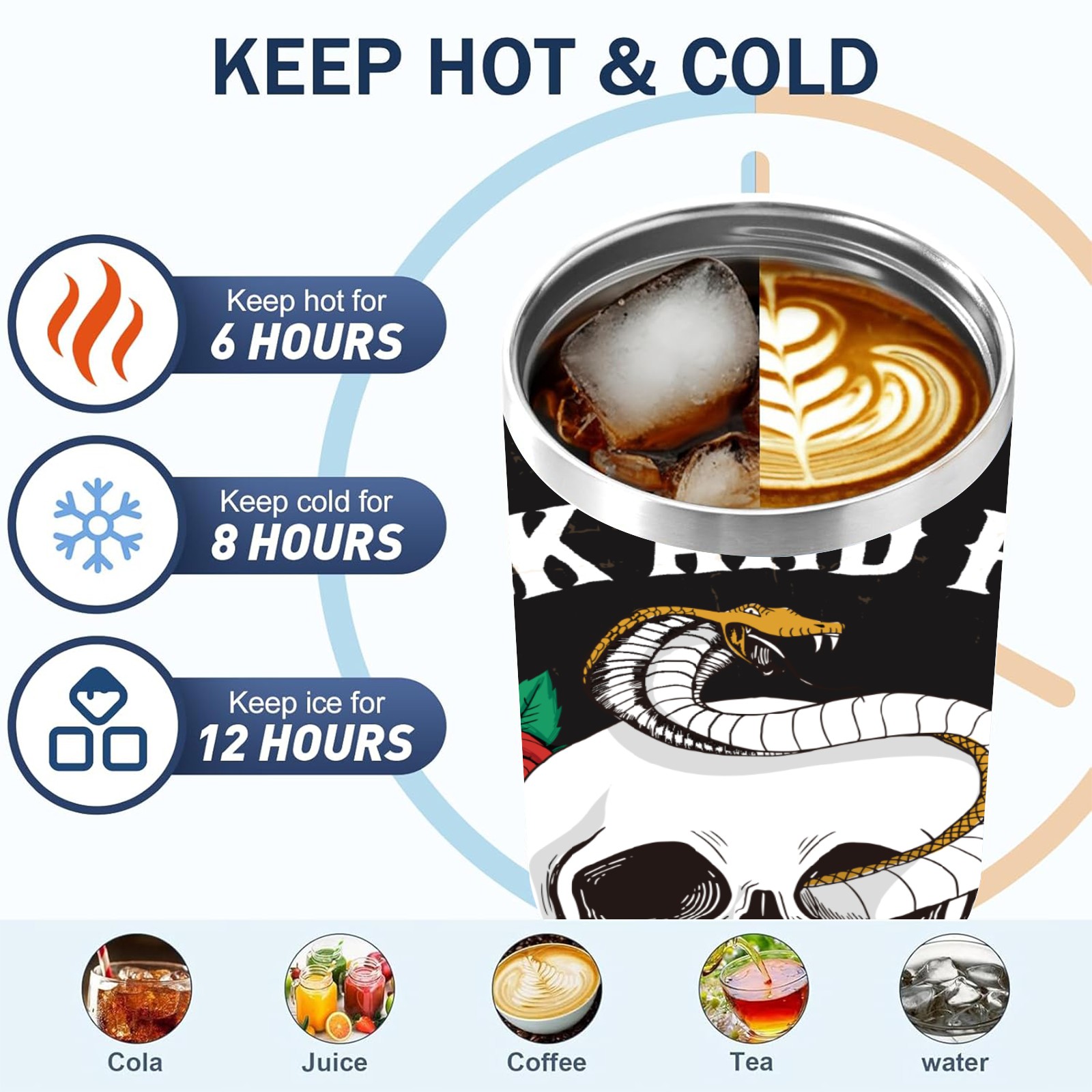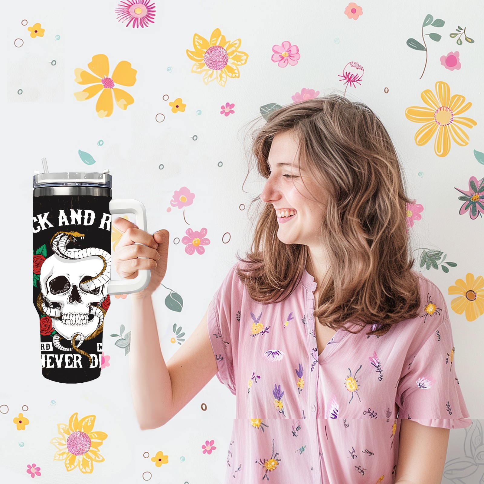 40 унций полностью напечатанный автомобильный стакан Rock And Roll Skull Rose Snake Cool