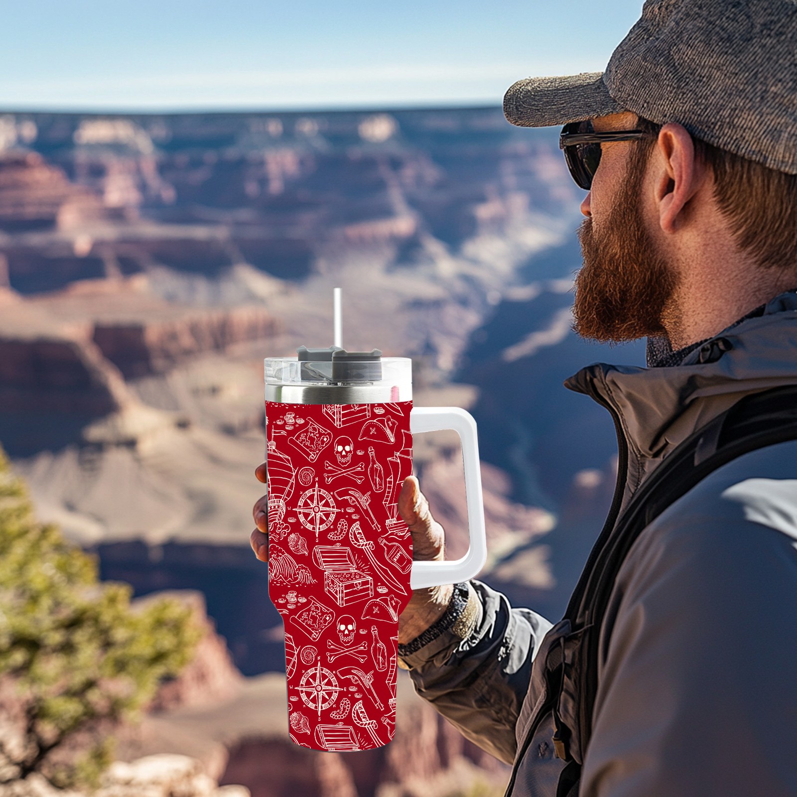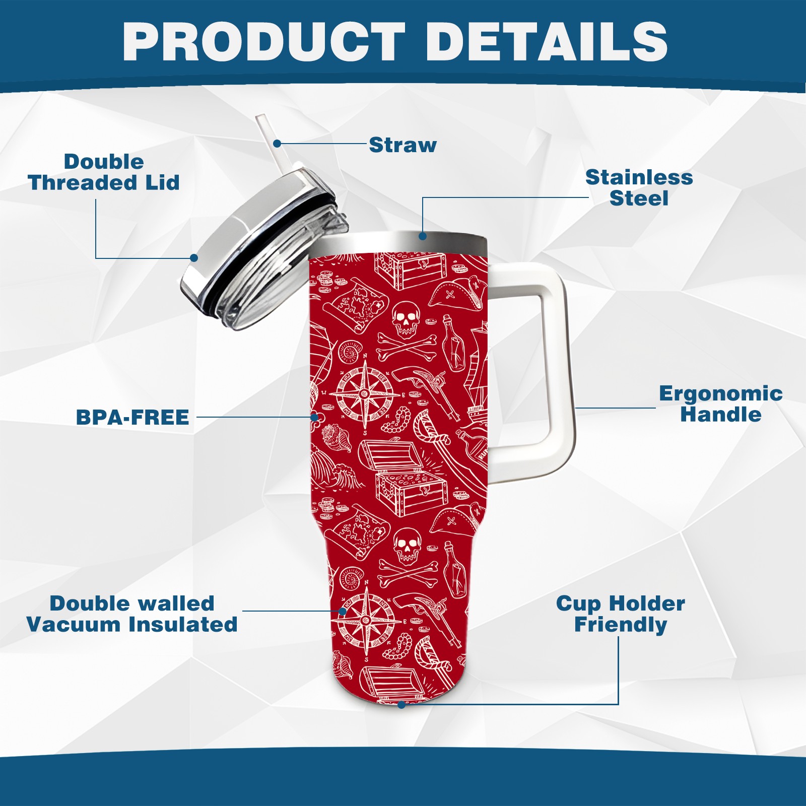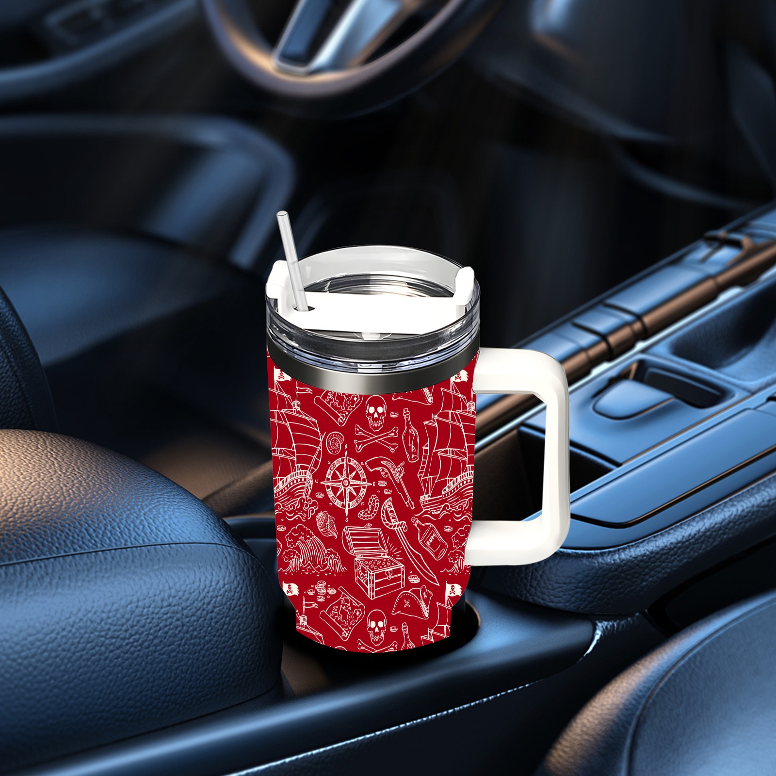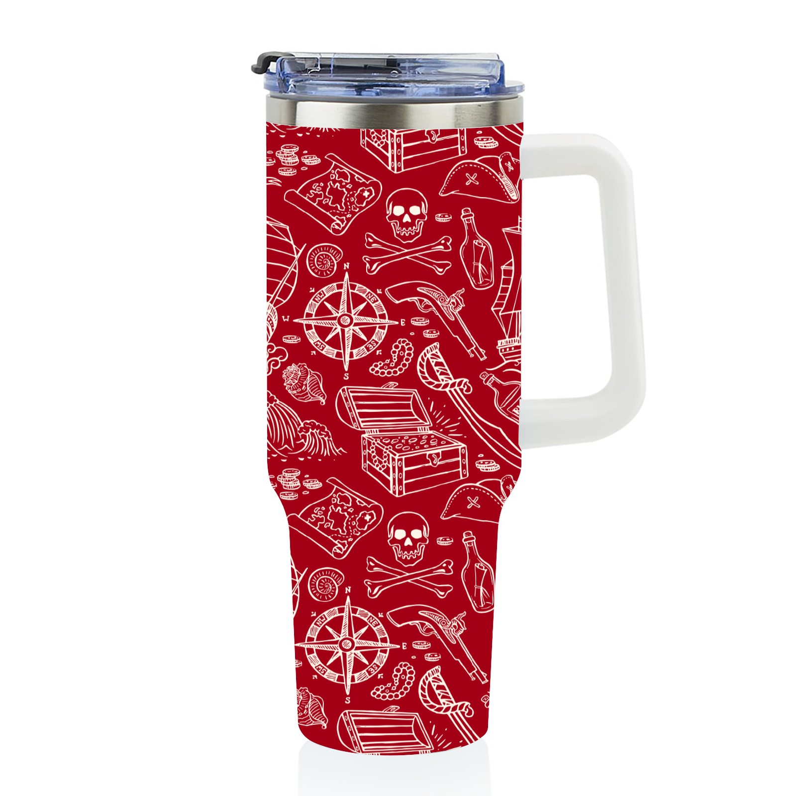 40 унций полностью напечатанный автомобильный стакан Red Nautical Pirate Sailboat Skull Pattern