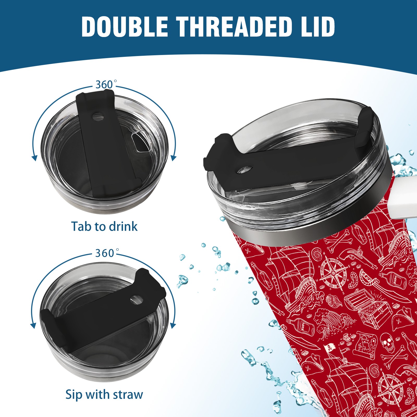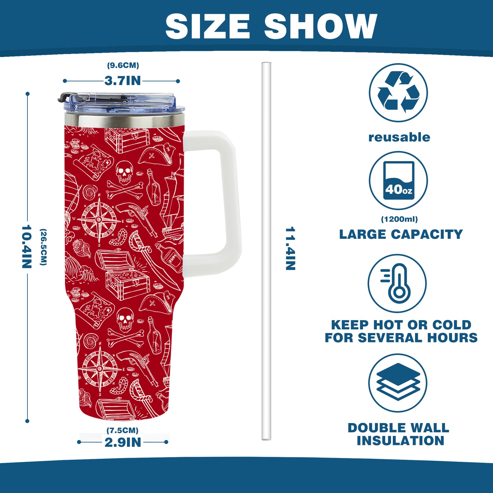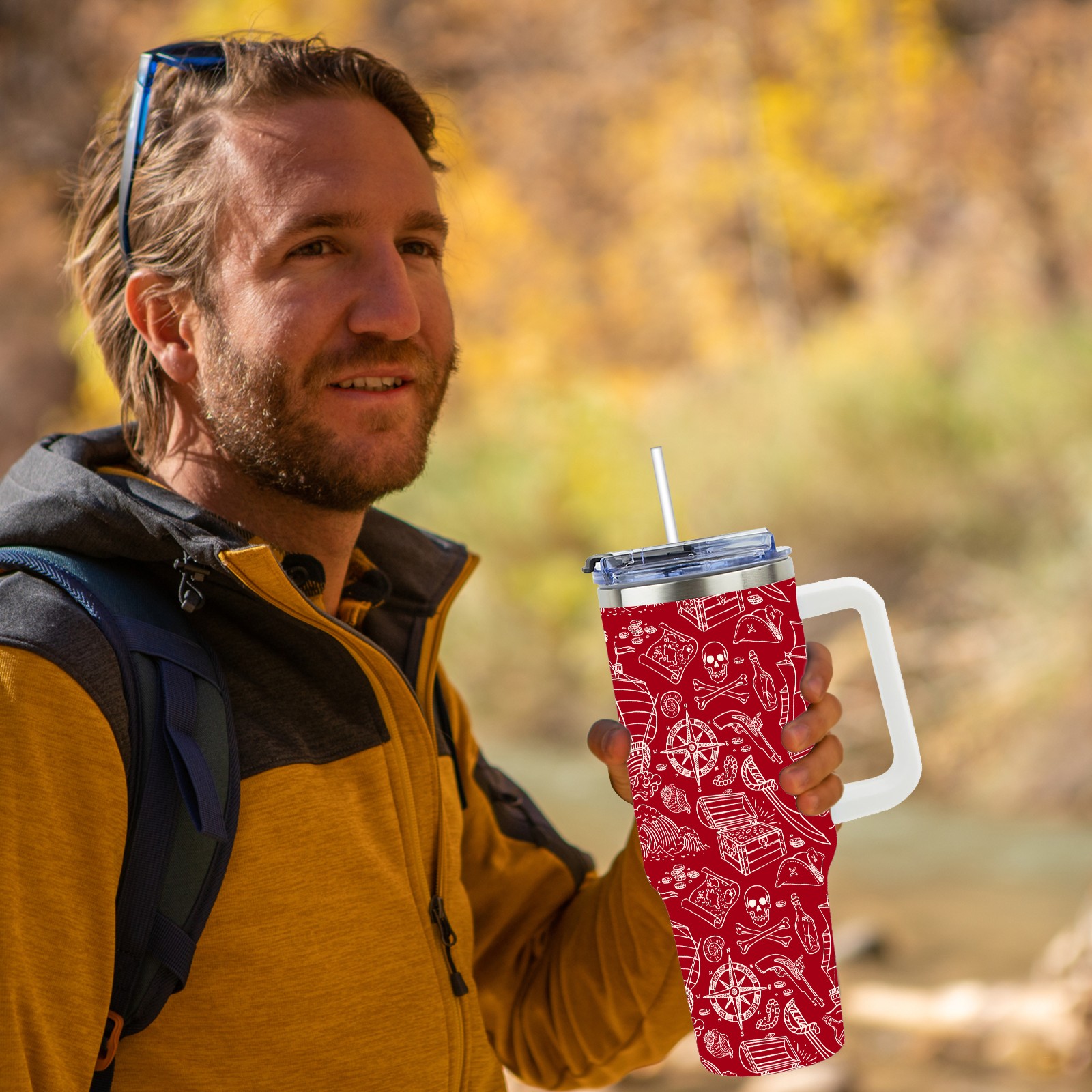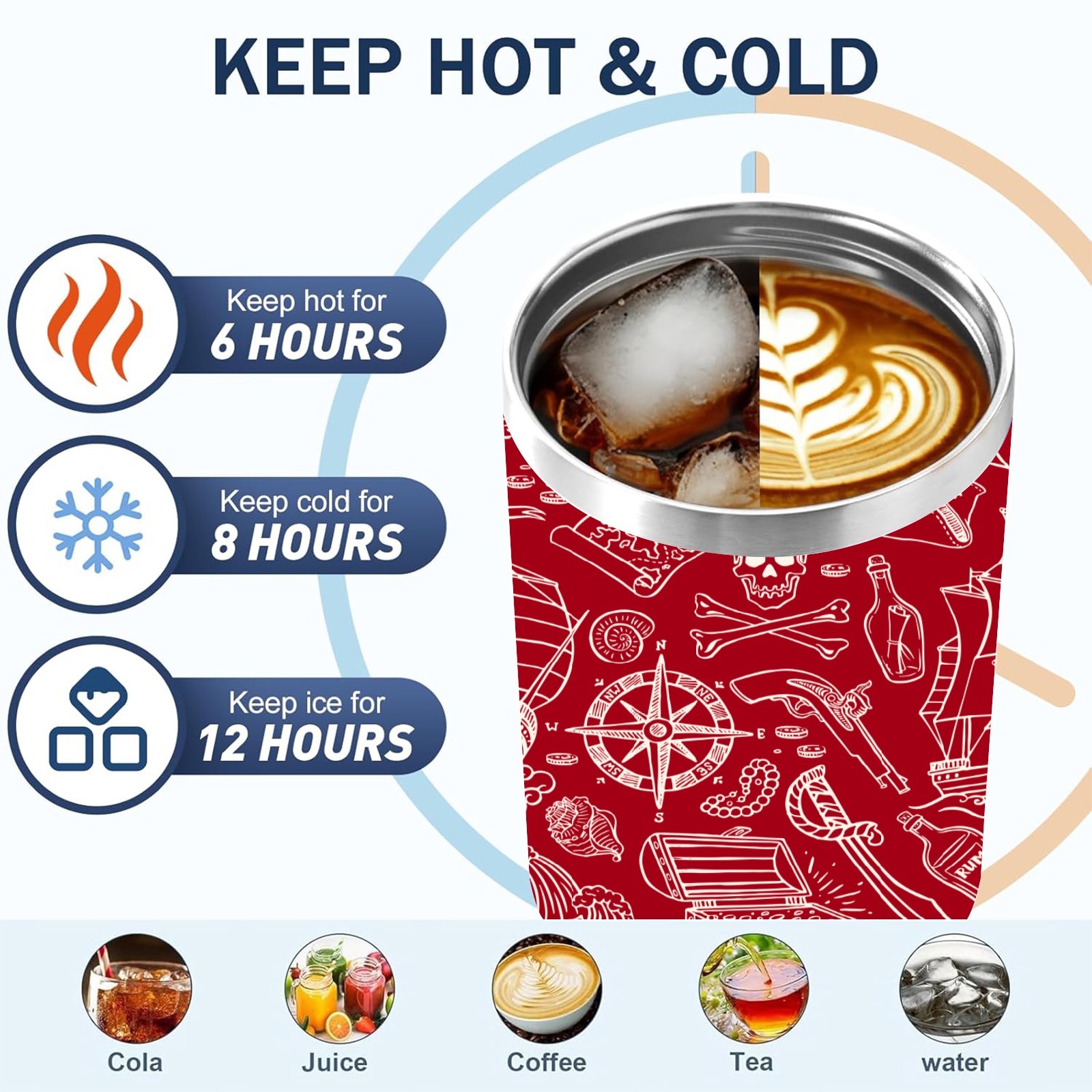 40 унций полностью напечатанный автомобильный стакан Red Nautical Pirate Sailboat Skull Pattern