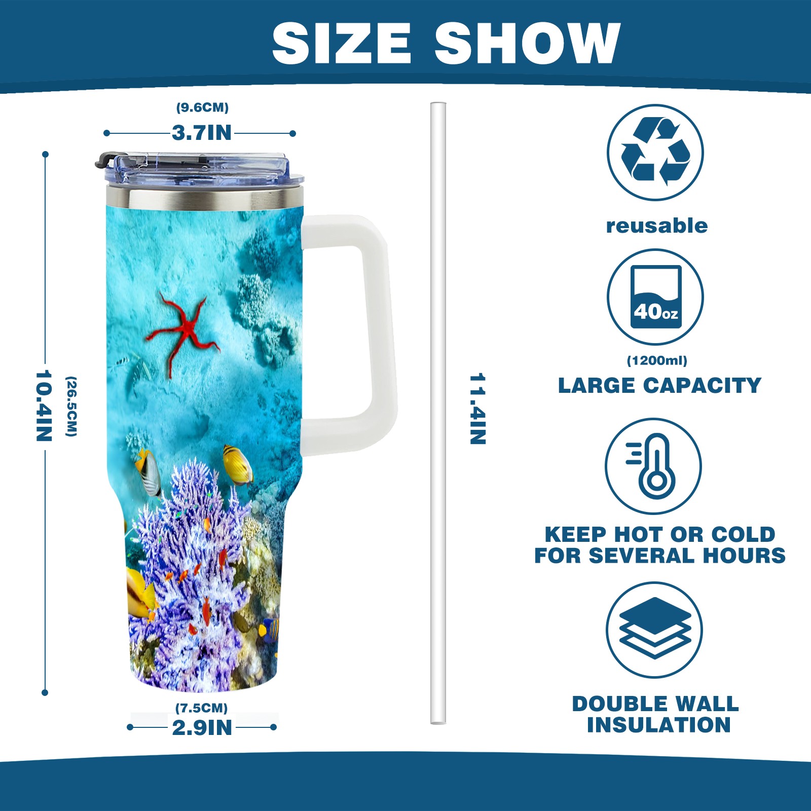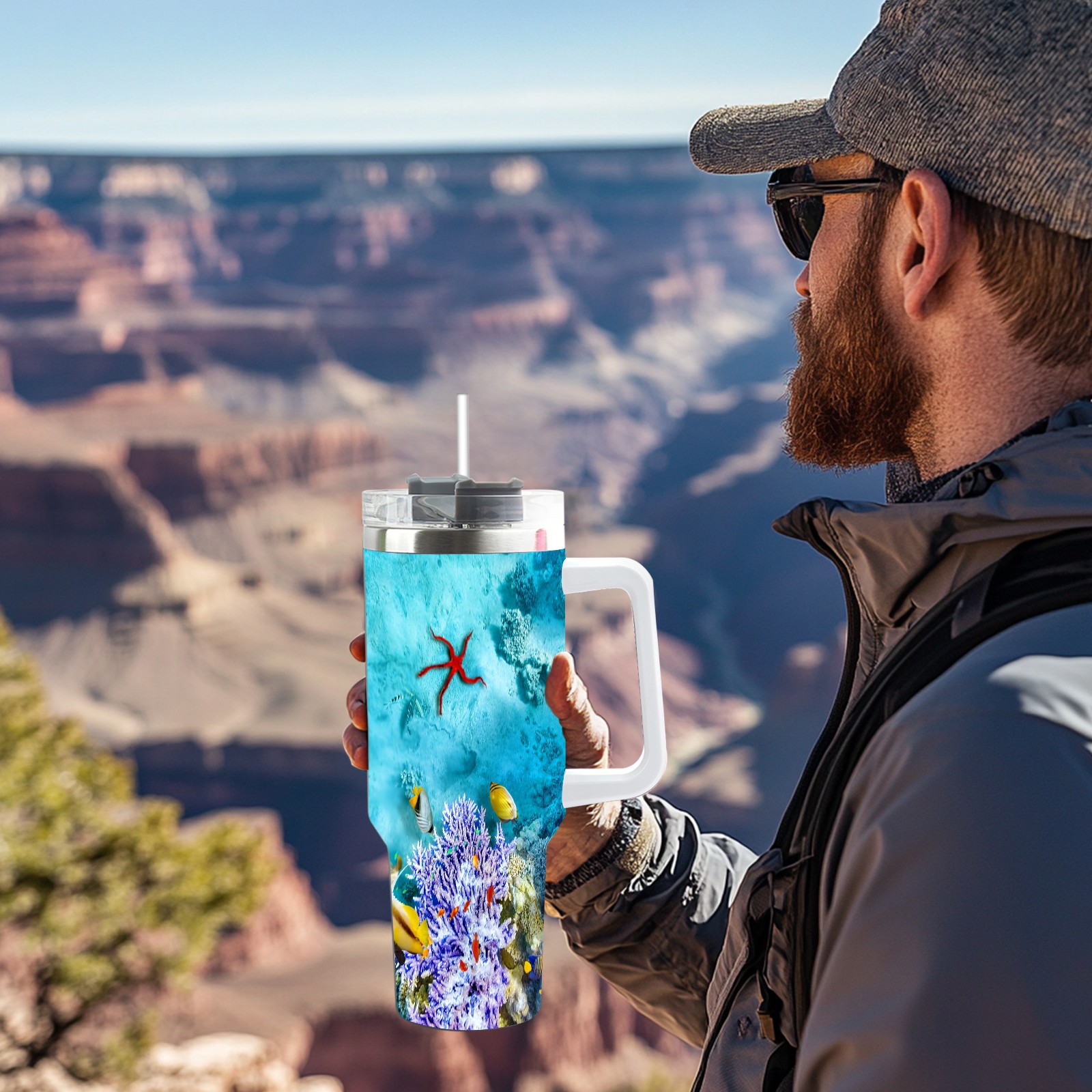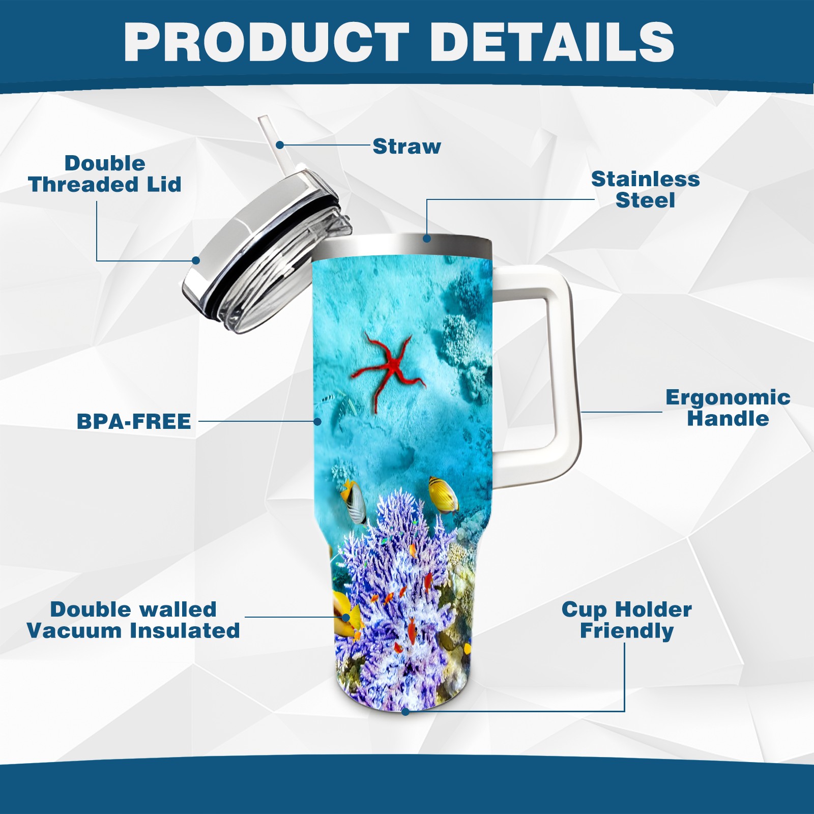 40 унций полностью напечатанный автомобильный стакан The Underwater World Coral Reef Fishes Starfish