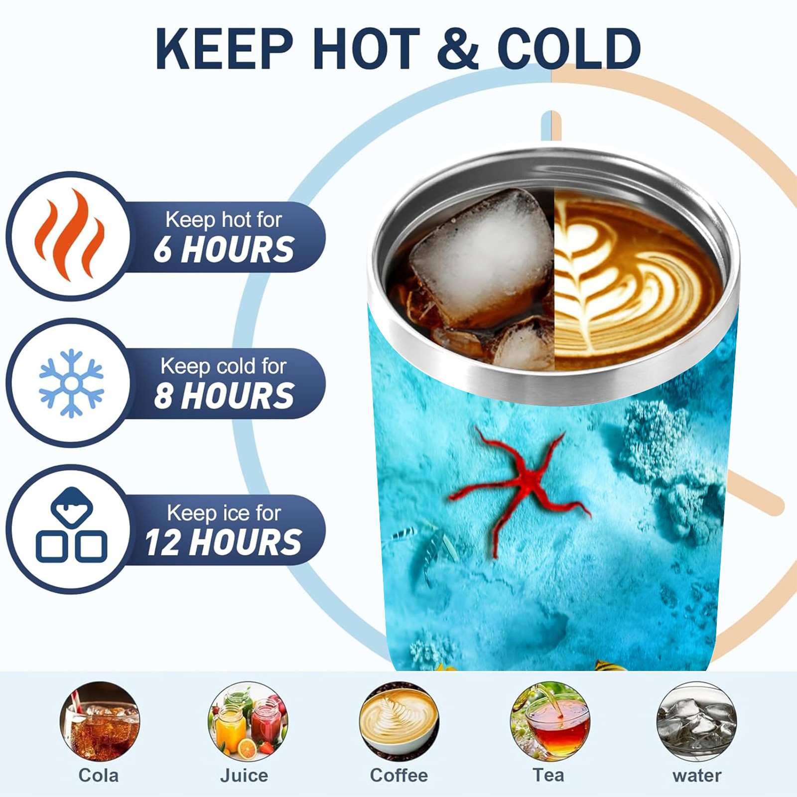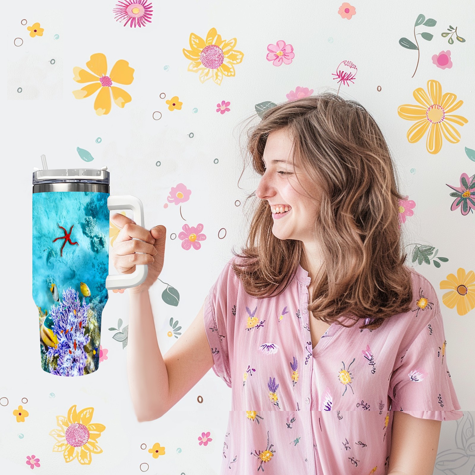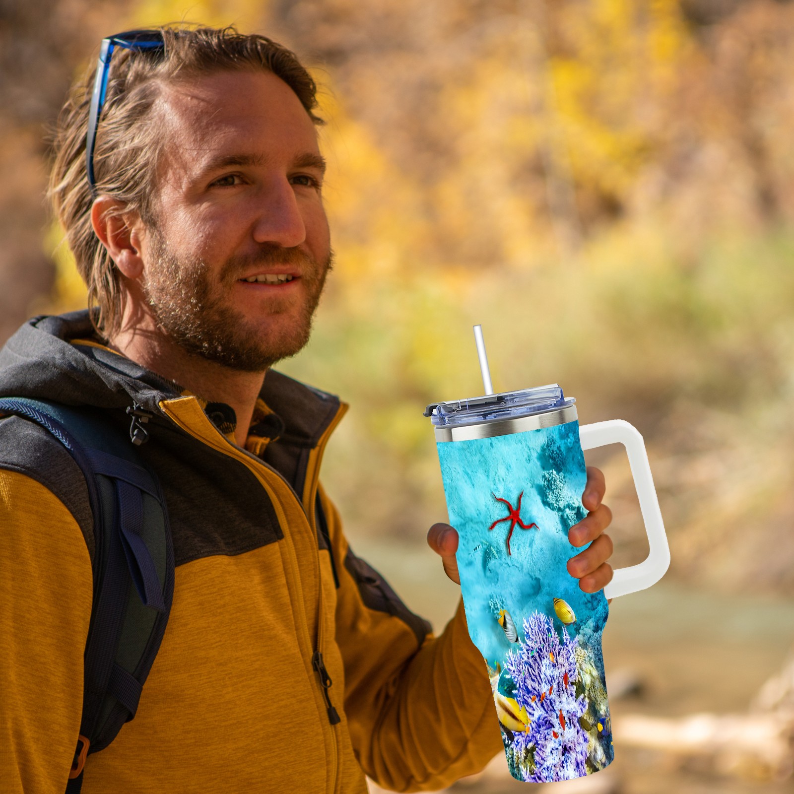 40 унций полностью напечатанный автомобильный стакан The Underwater World Coral Reef Fishes Starfish