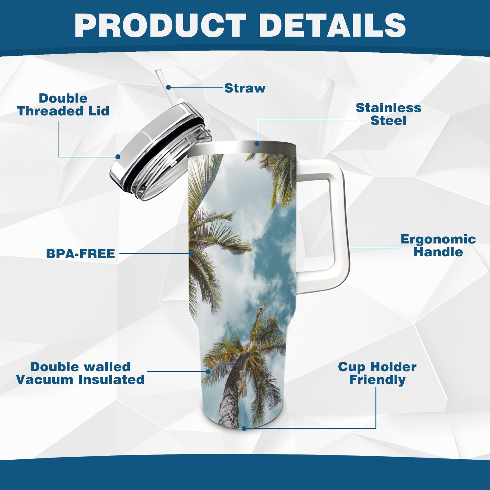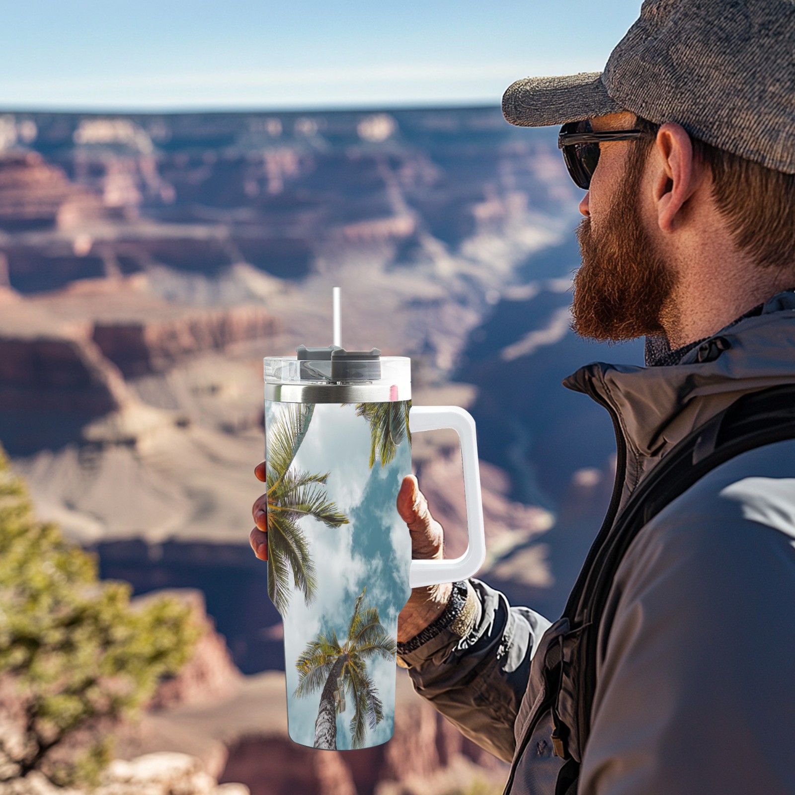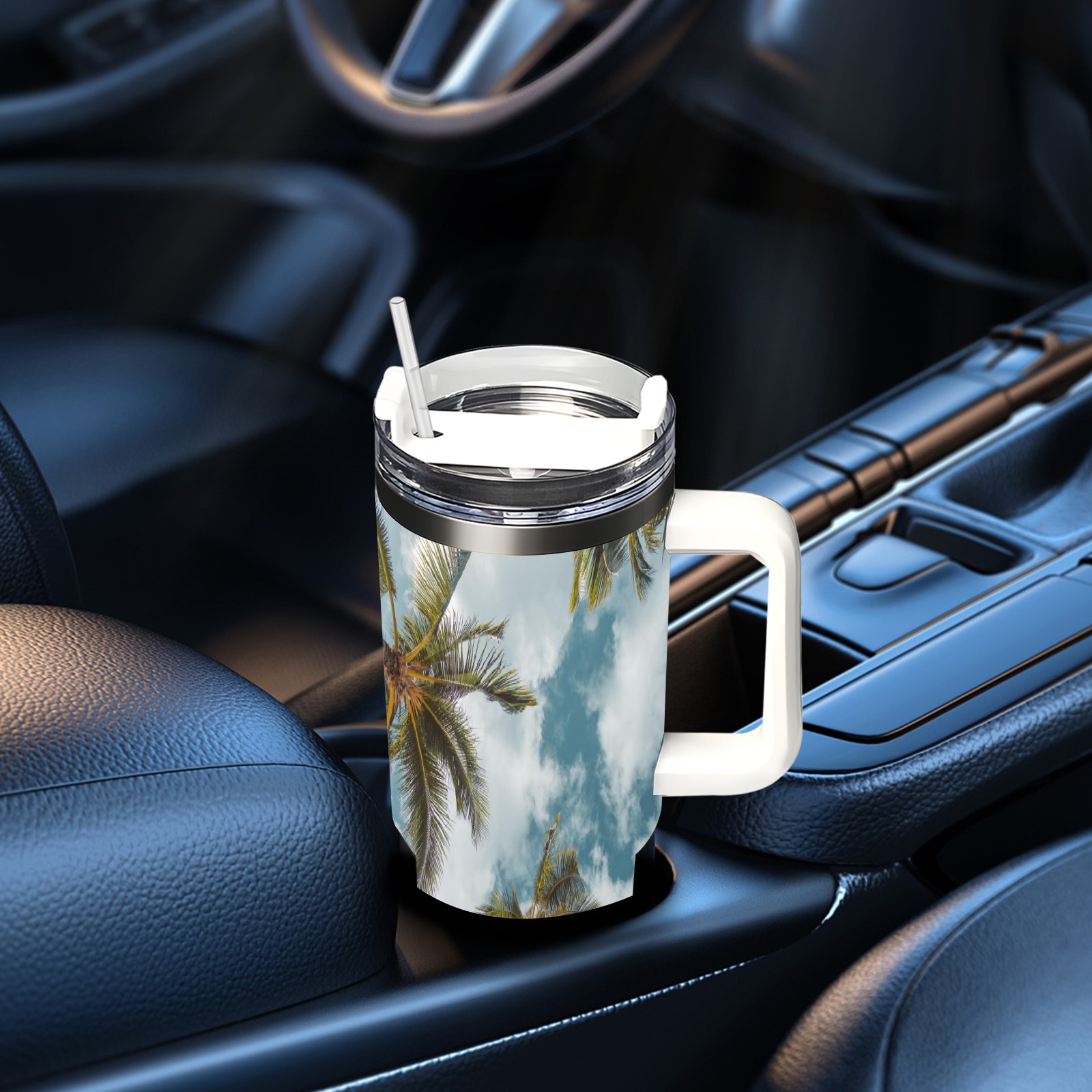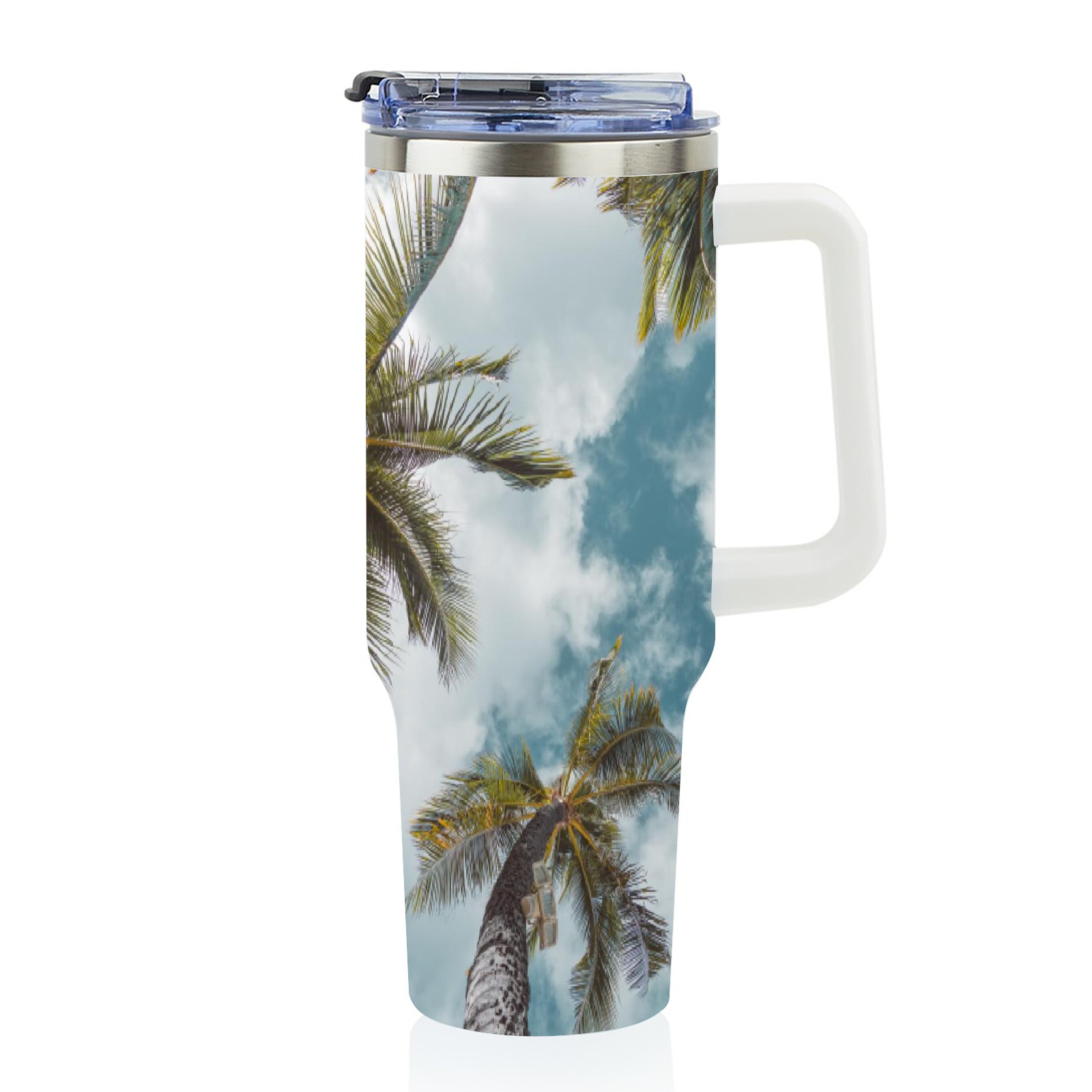 40 унций полностью напечатанный автомобильный стакан Palm Tree Clouds Sky