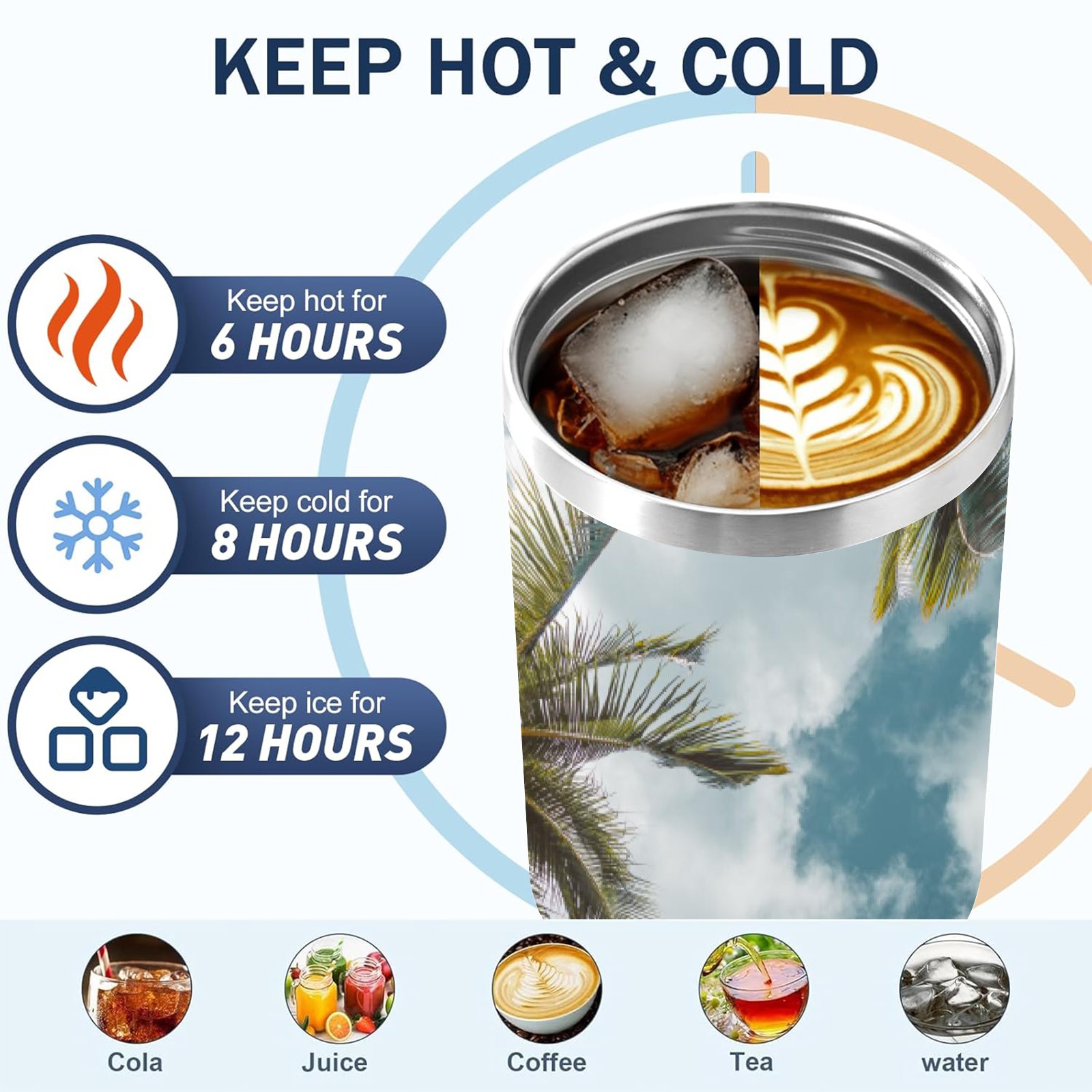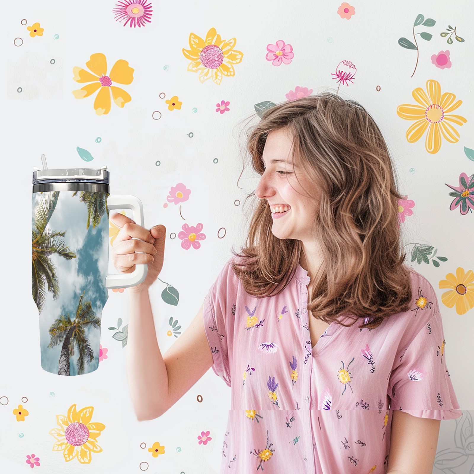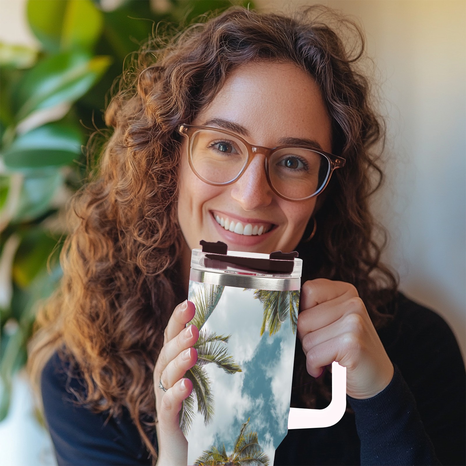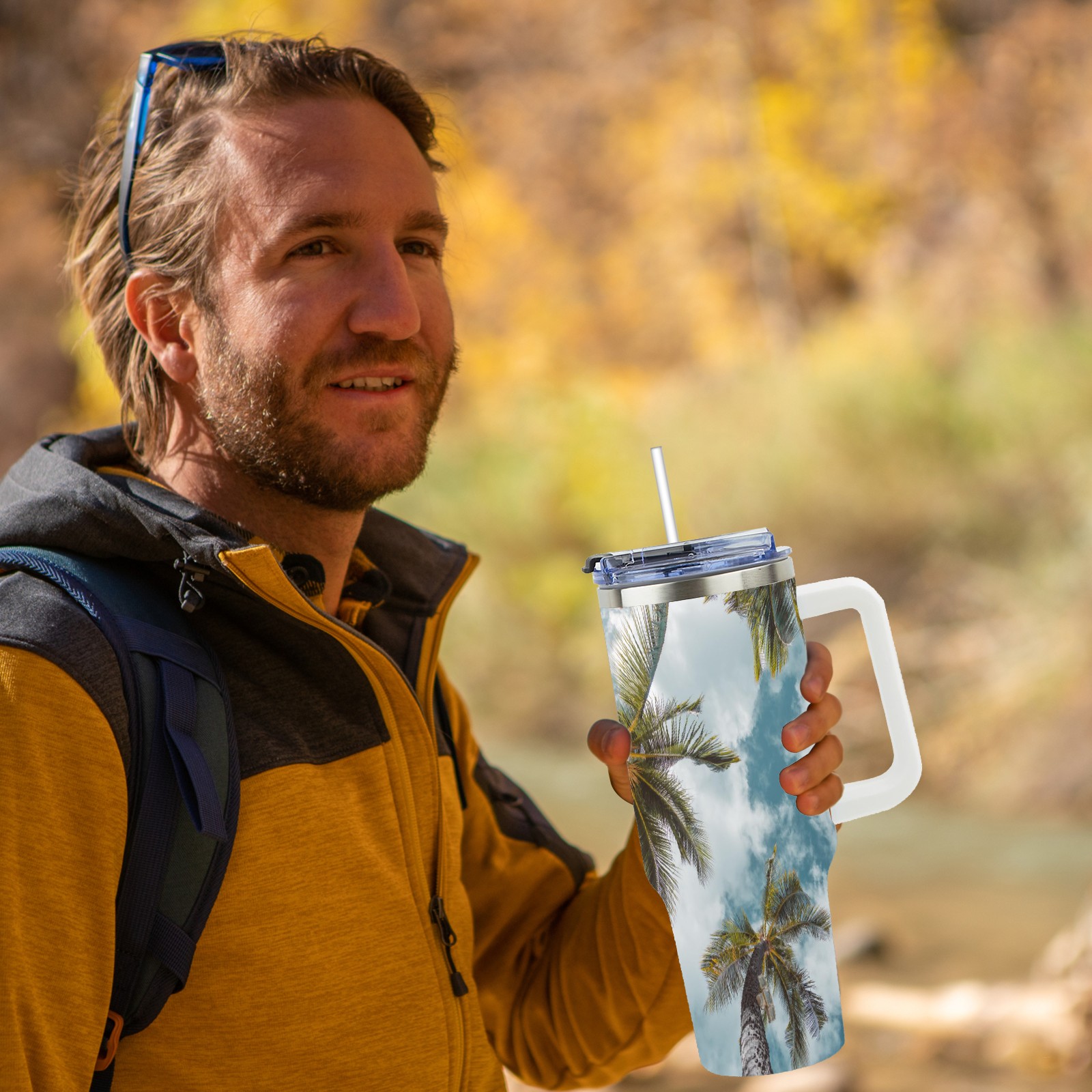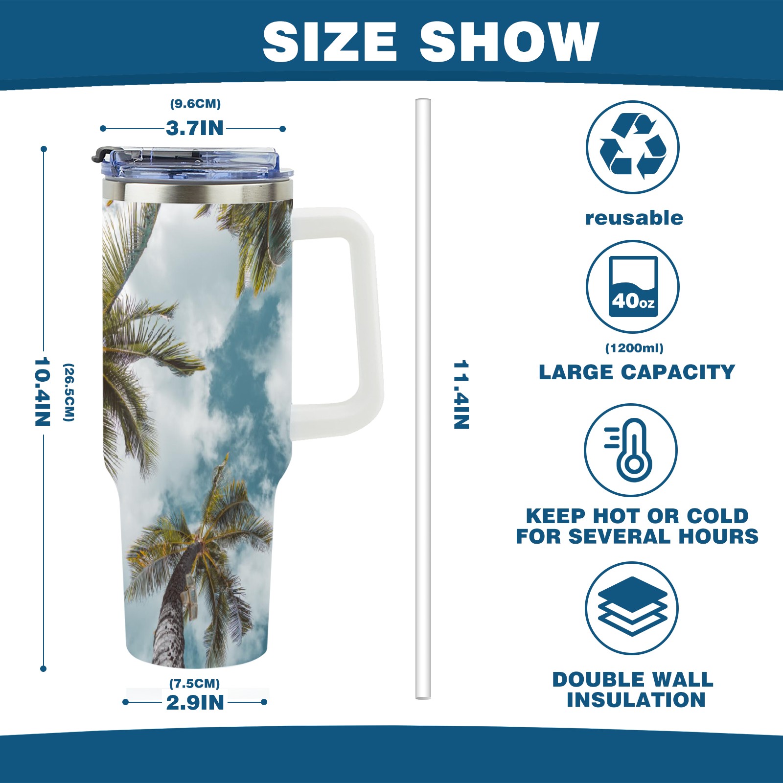 40 унций полностью напечатанный автомобильный стакан Palm Tree Clouds Sky