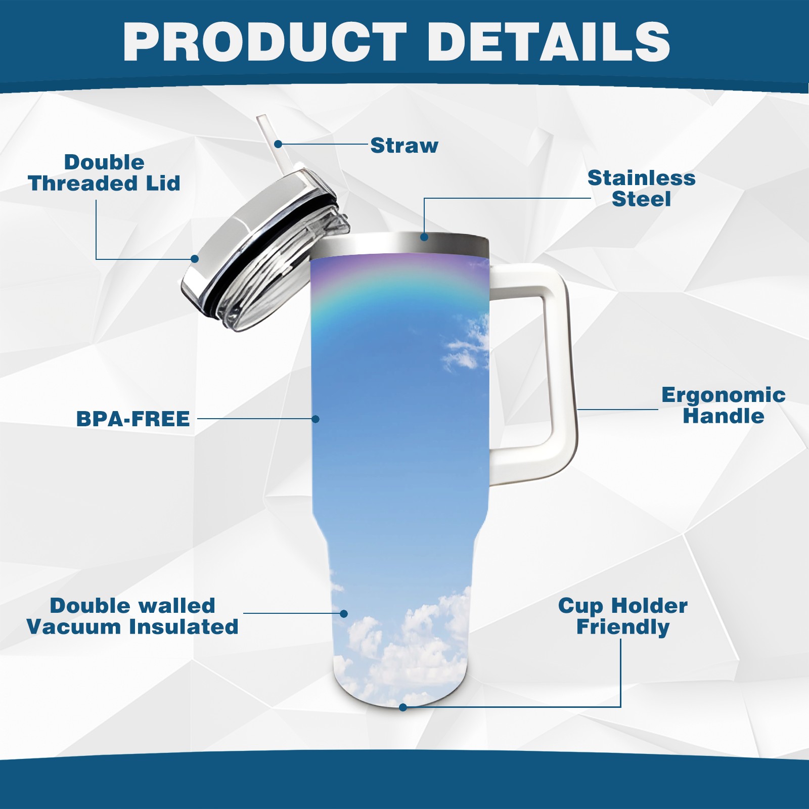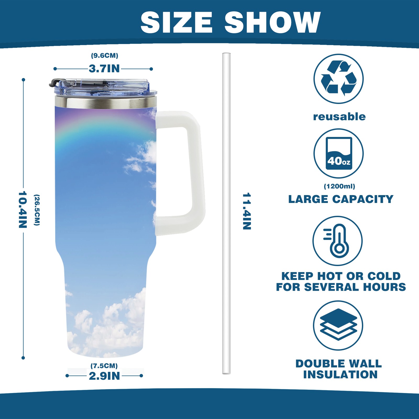 • С большой емкостью 40 унций, он обеспечивает вас гидратацией в течение всего дня, идеально подходит для воды, кофе, сока или других напитков. Эргономичный дизайн идеально вписывается в автомобильные держатели для бутылок, а прочный, герметичный колпачок предотвращает утечки во время передвижения. Путешествие. Антискользящее основание обеспечивает устойчивость, а гладкие поверхности делают уборку легкой — просто мойте вручную или кладите в посудомоечную машину (рекомендуется верхний поддон).