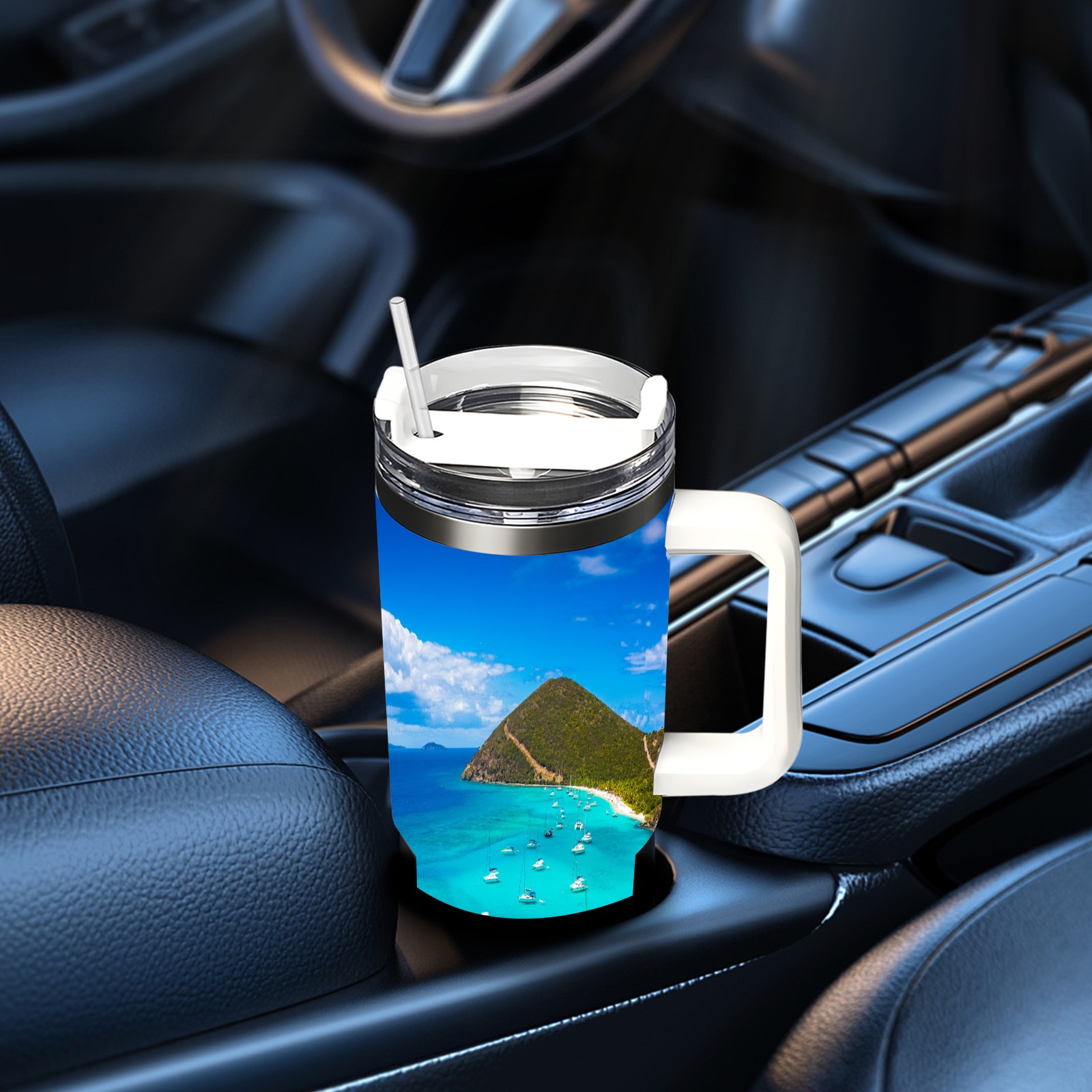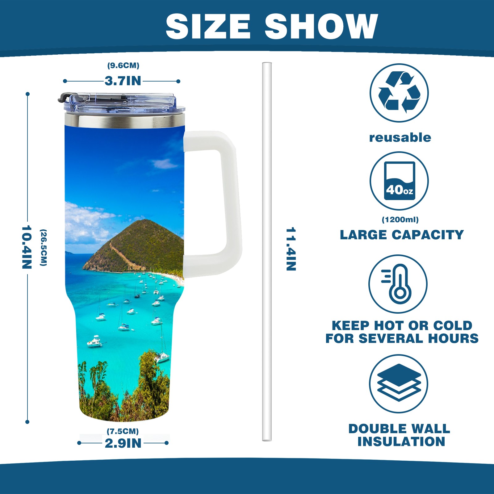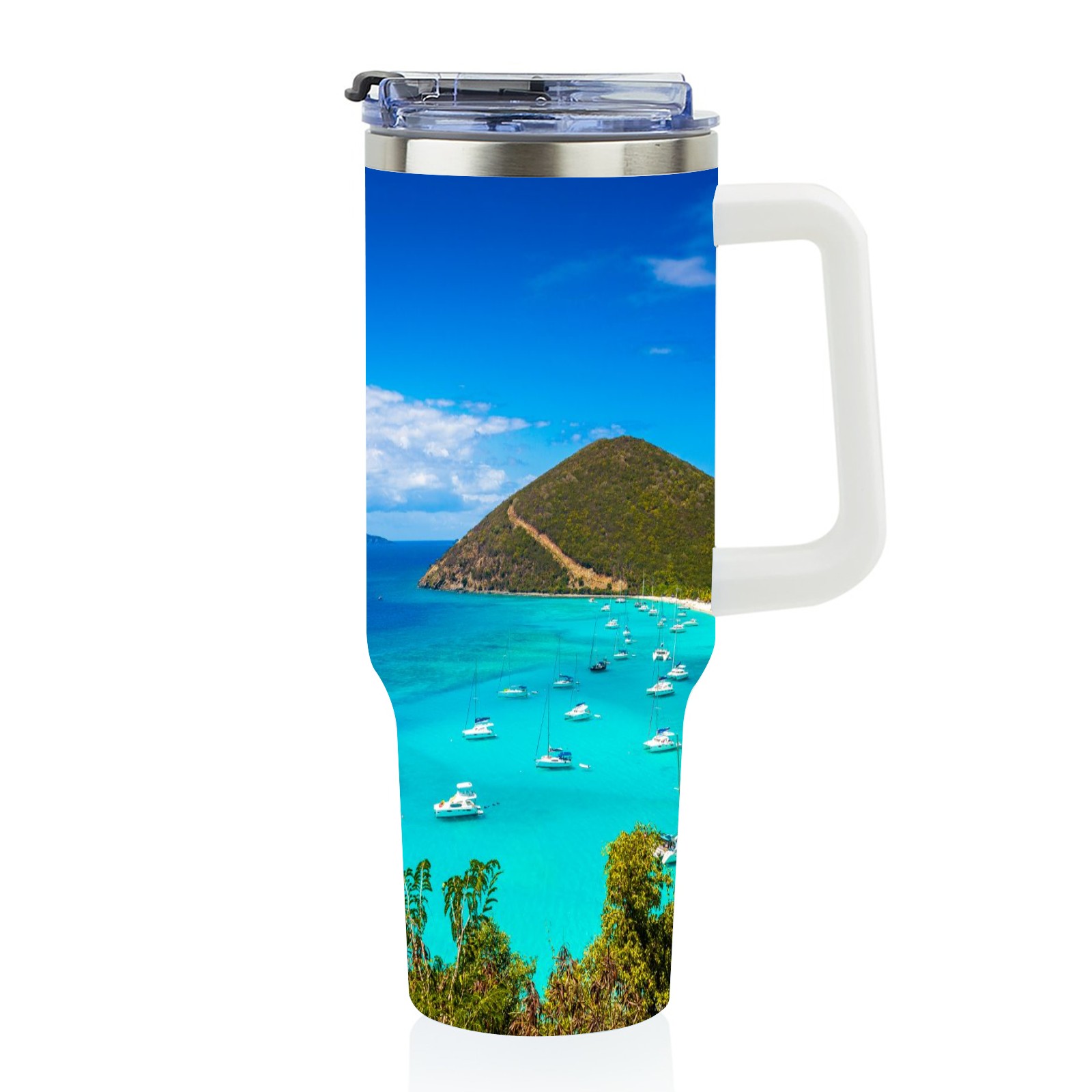 40 унций полностью напечатанный автомобильный стакан Clear Blue Sea Seashore Mountain View