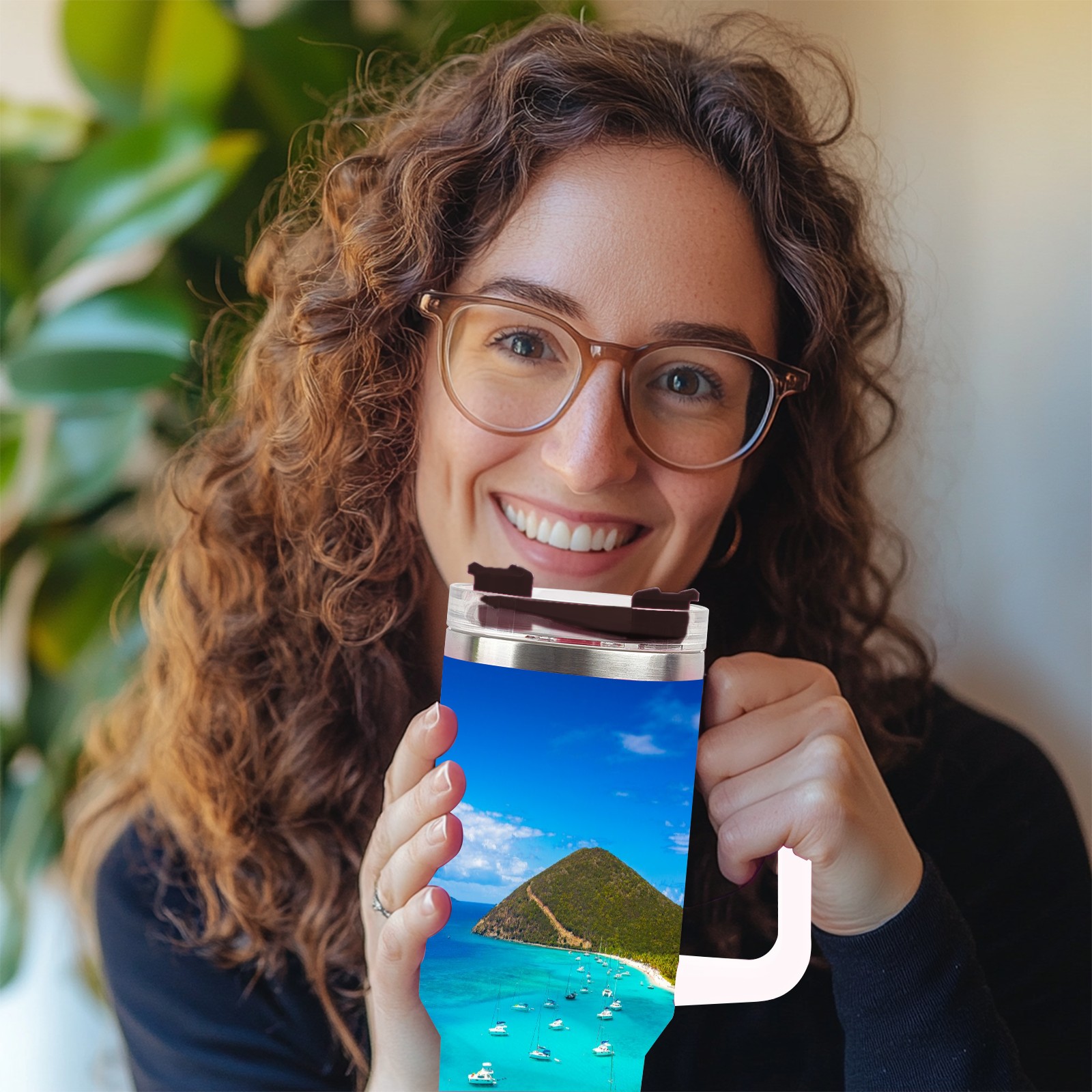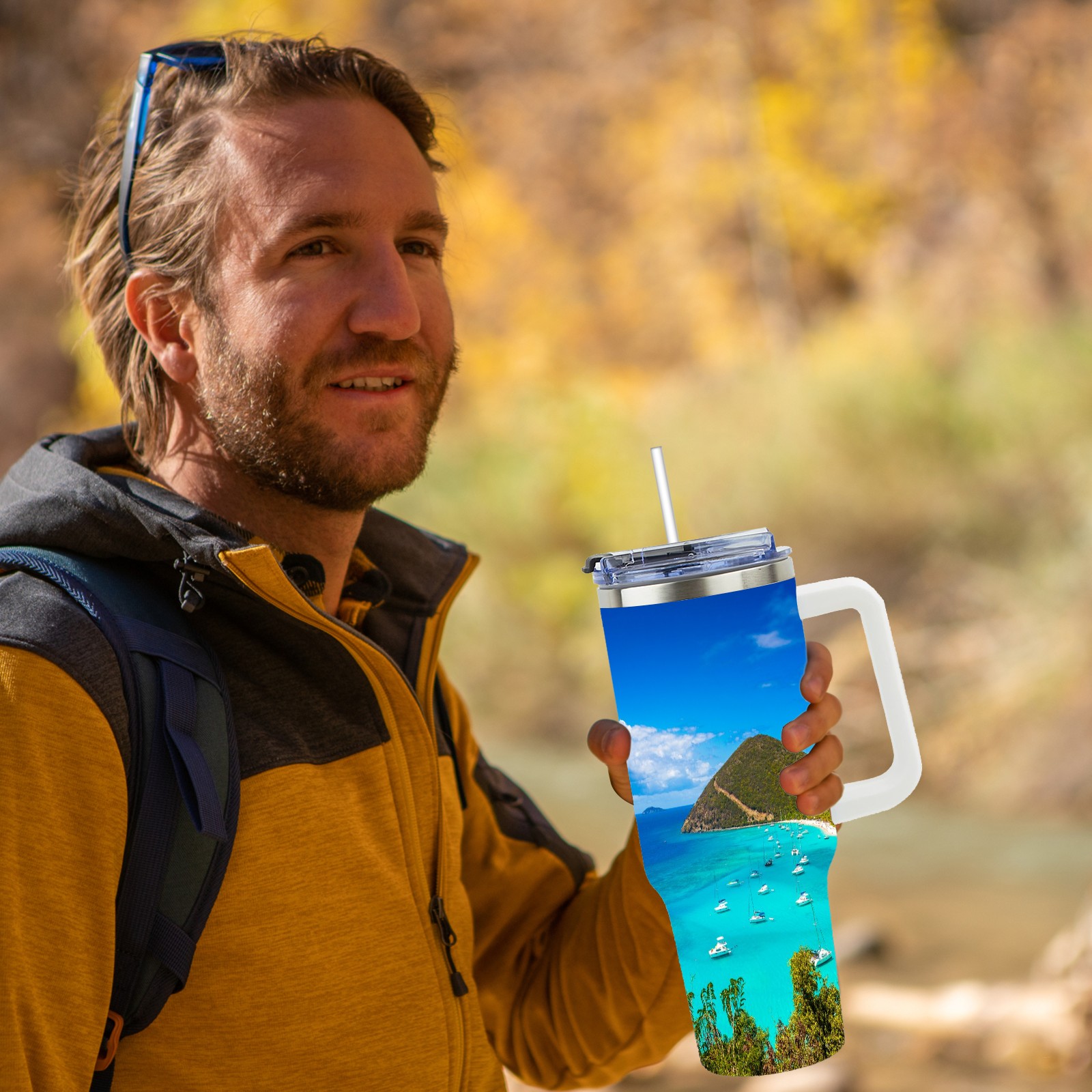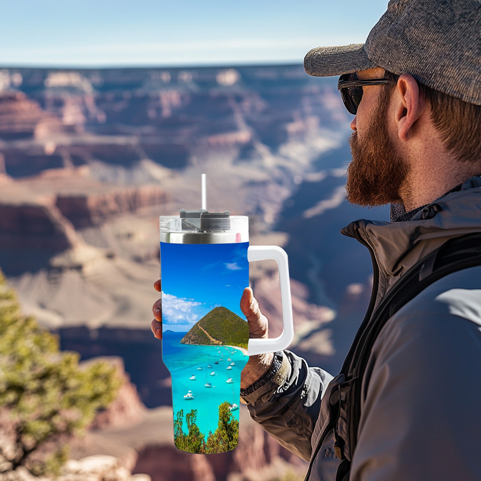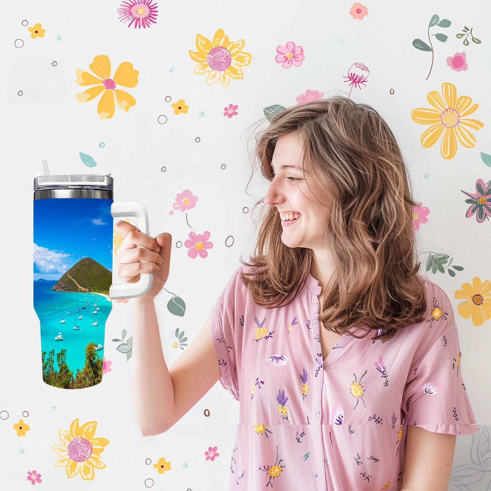 40 унций полностью напечатанный автомобильный стакан Clear Blue Sea Seashore Mountain View
