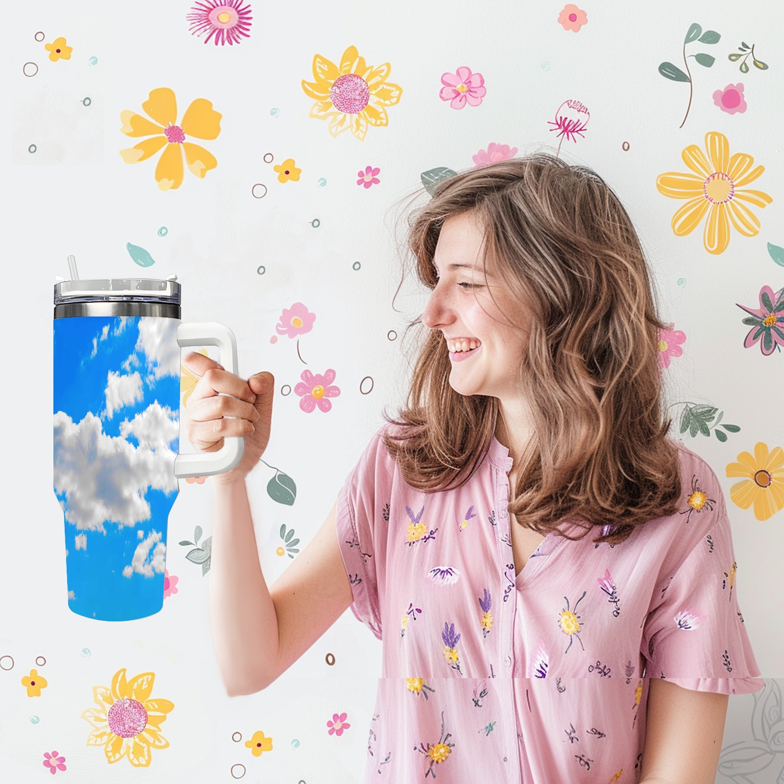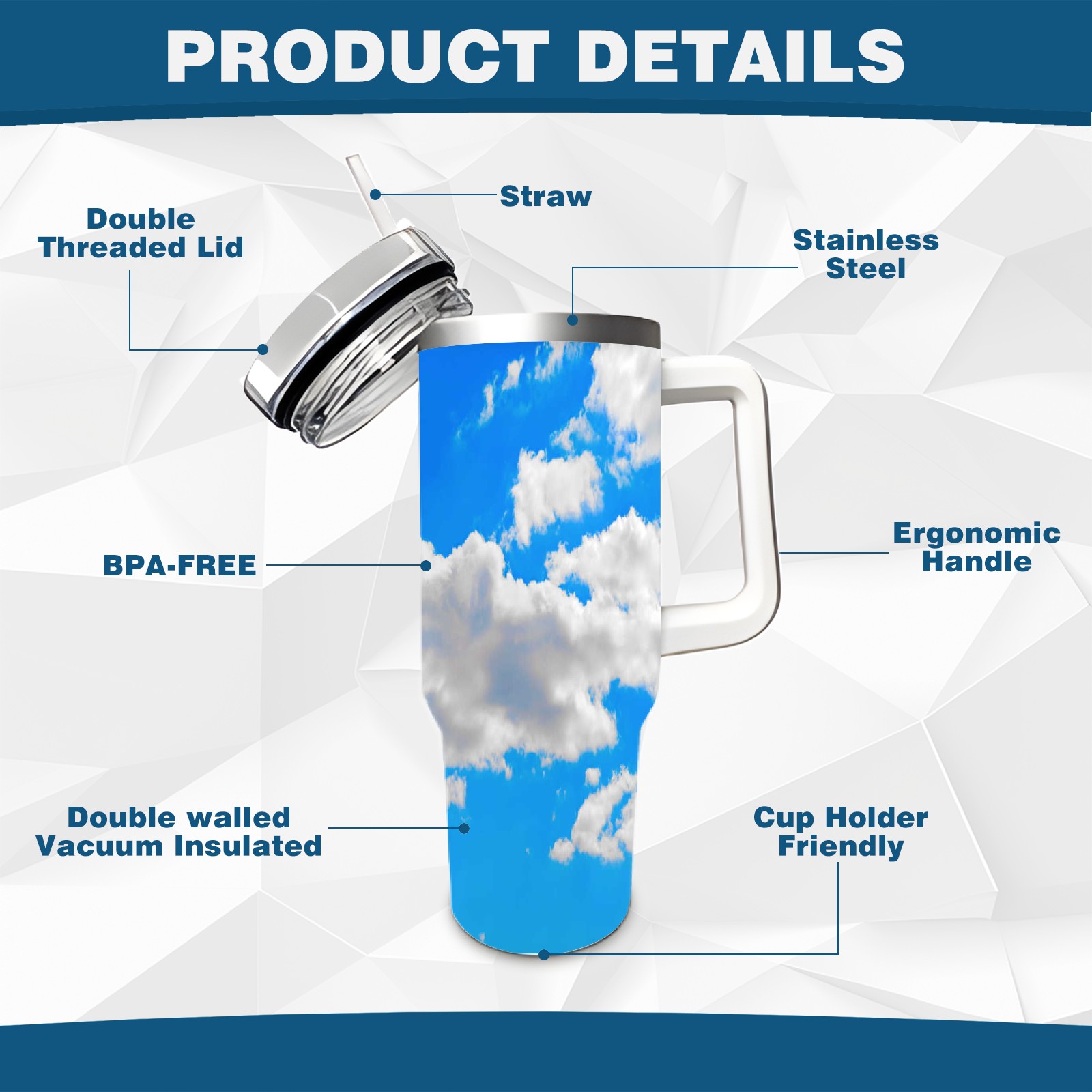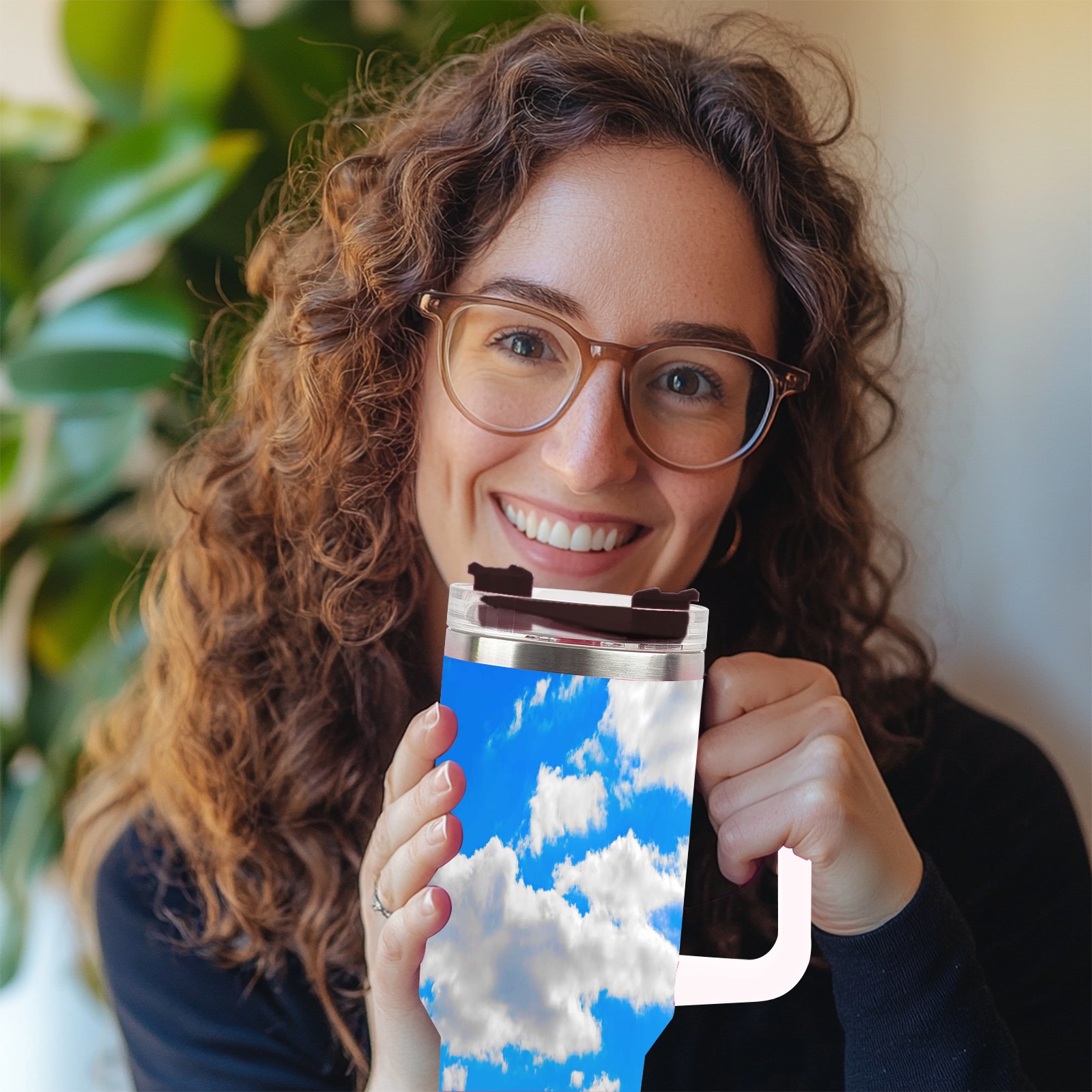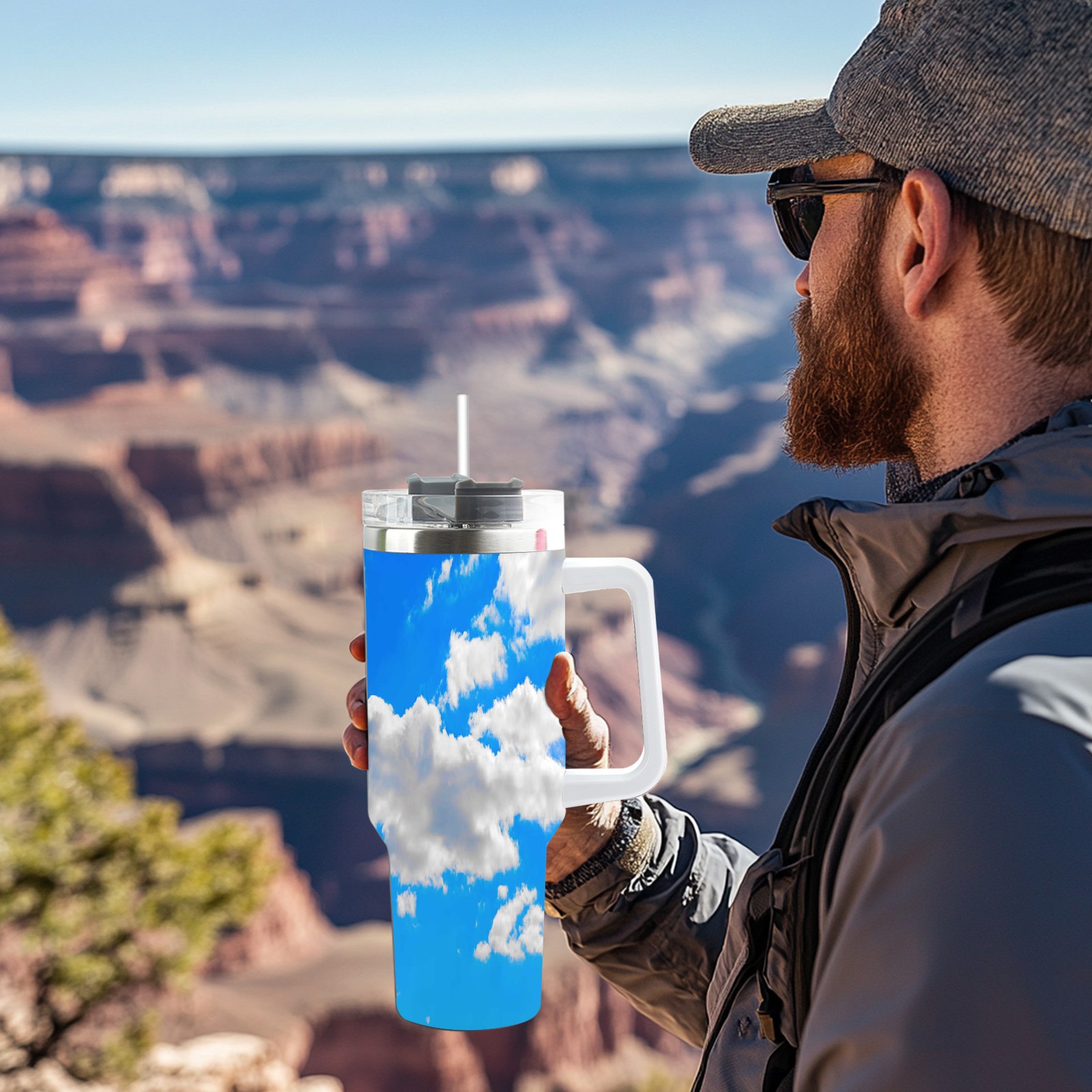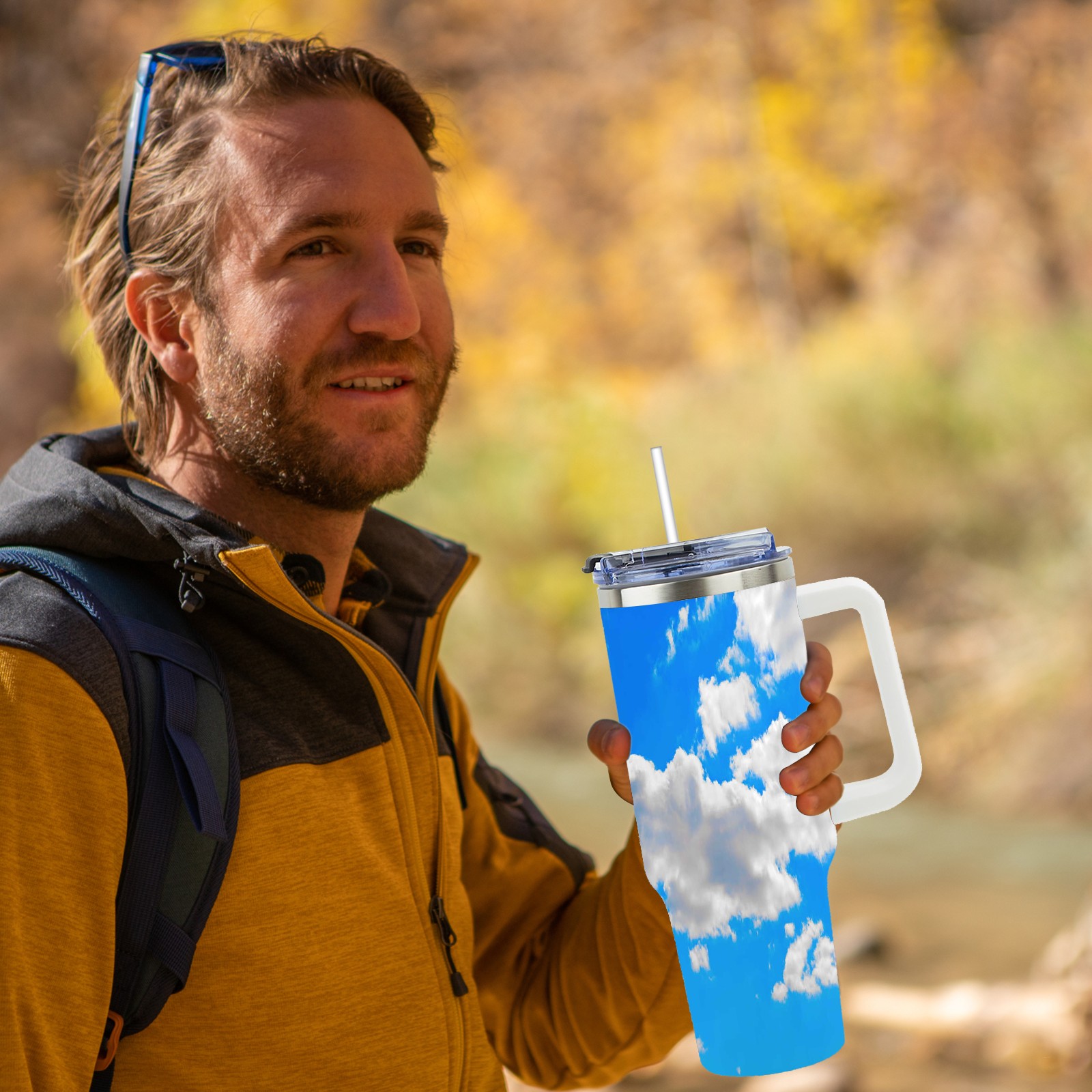 40 унций полностью напечатанный автомобильный стакан Blue Sky White Clouds Relax