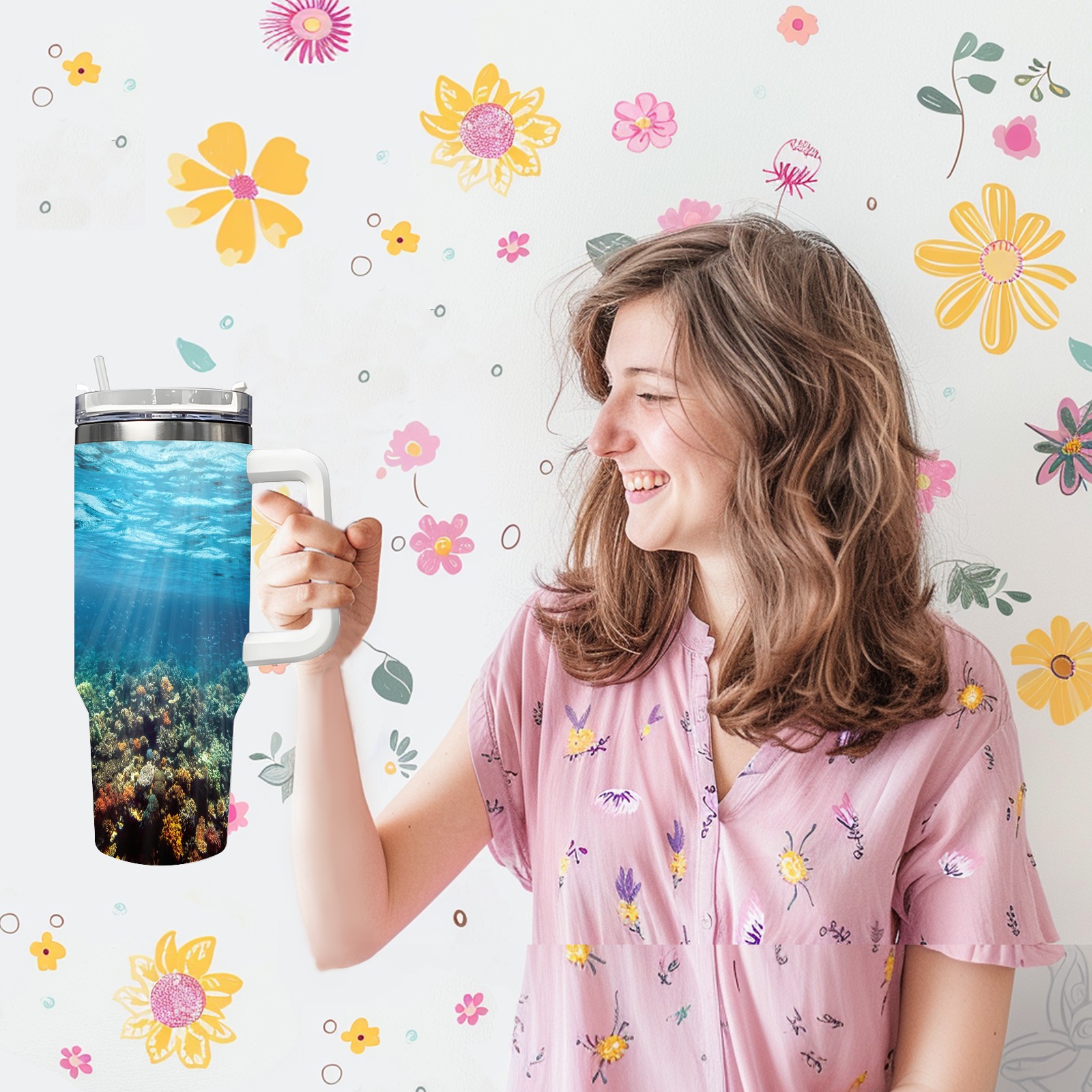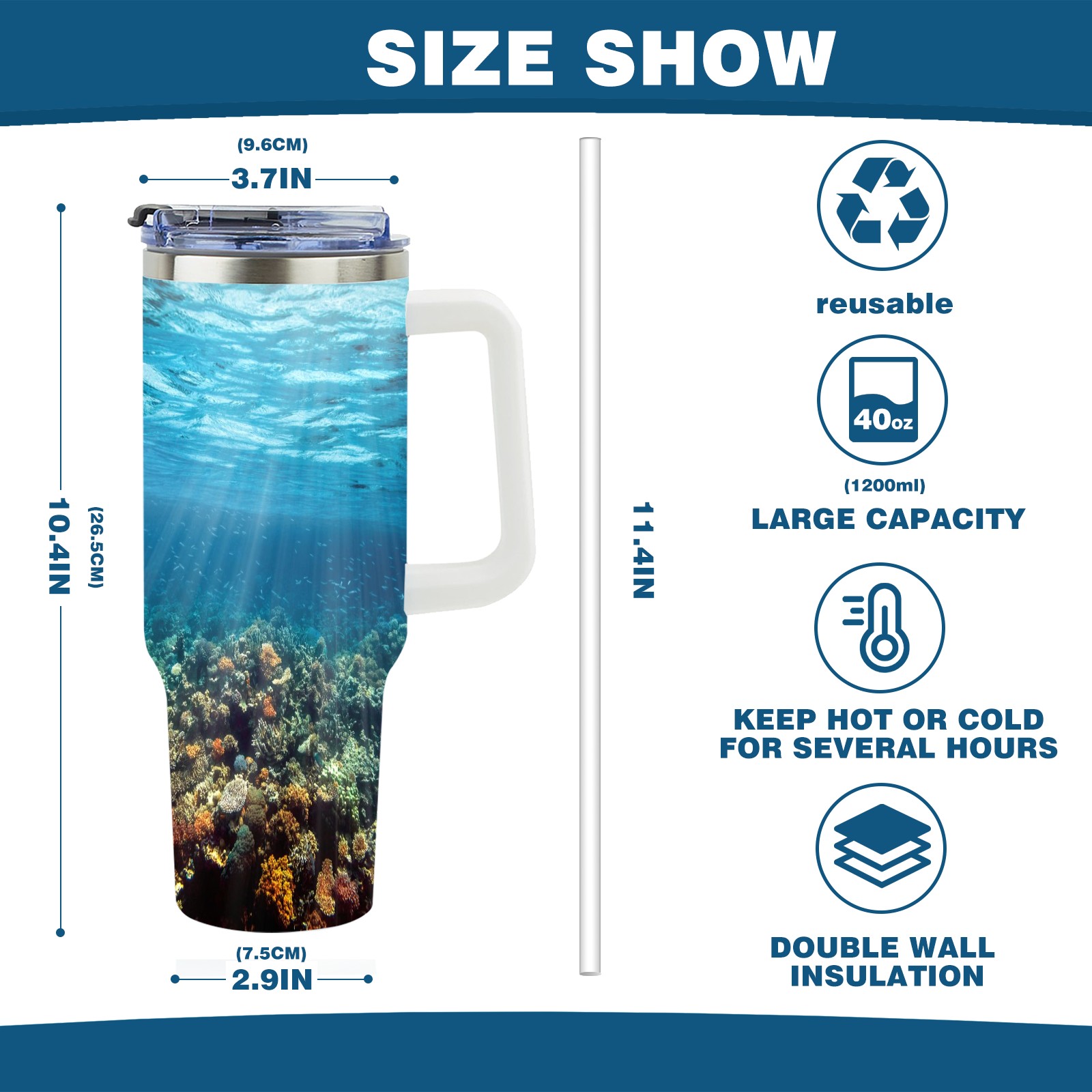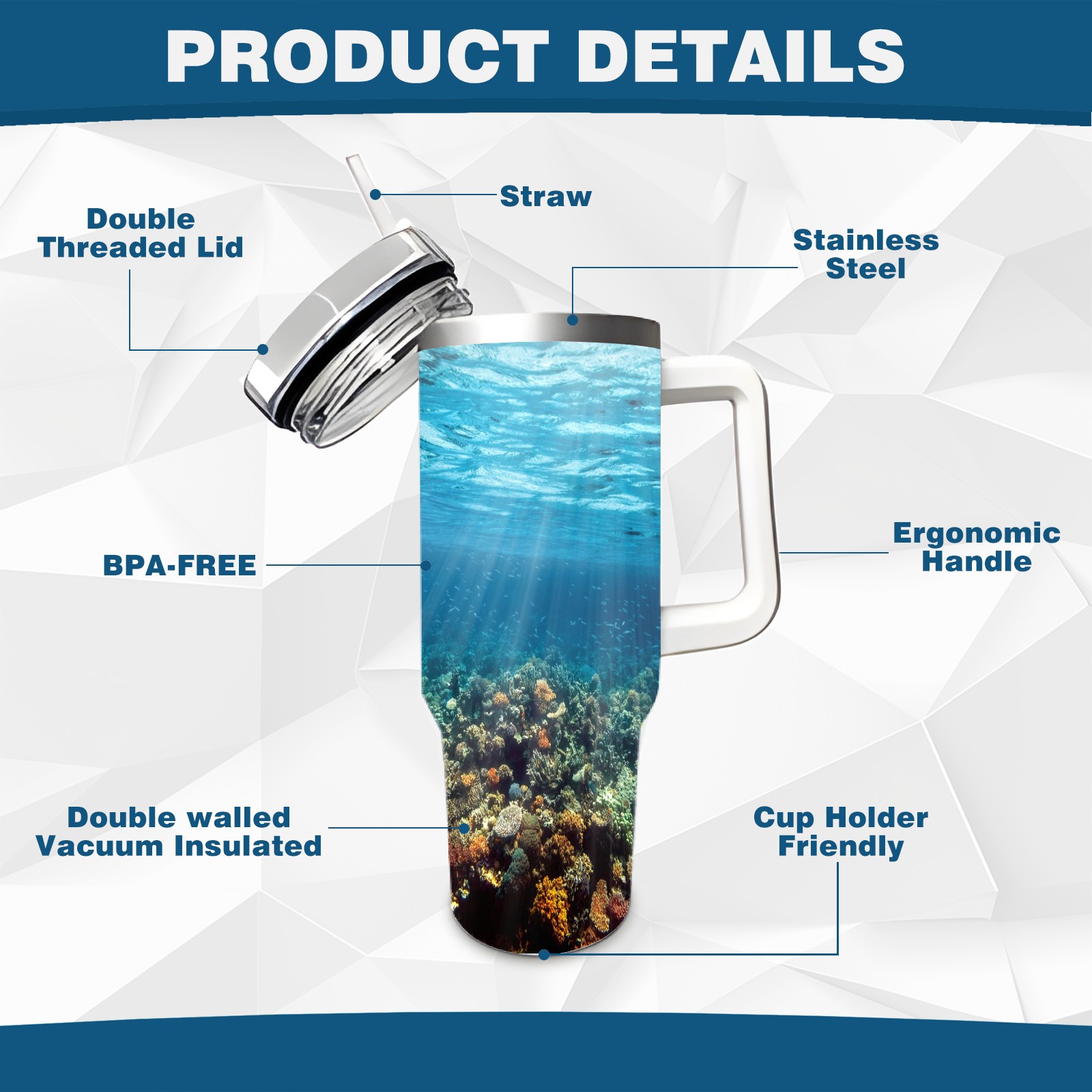 40 унций полностью напечатанный автомобильный стакан Underwater Coral