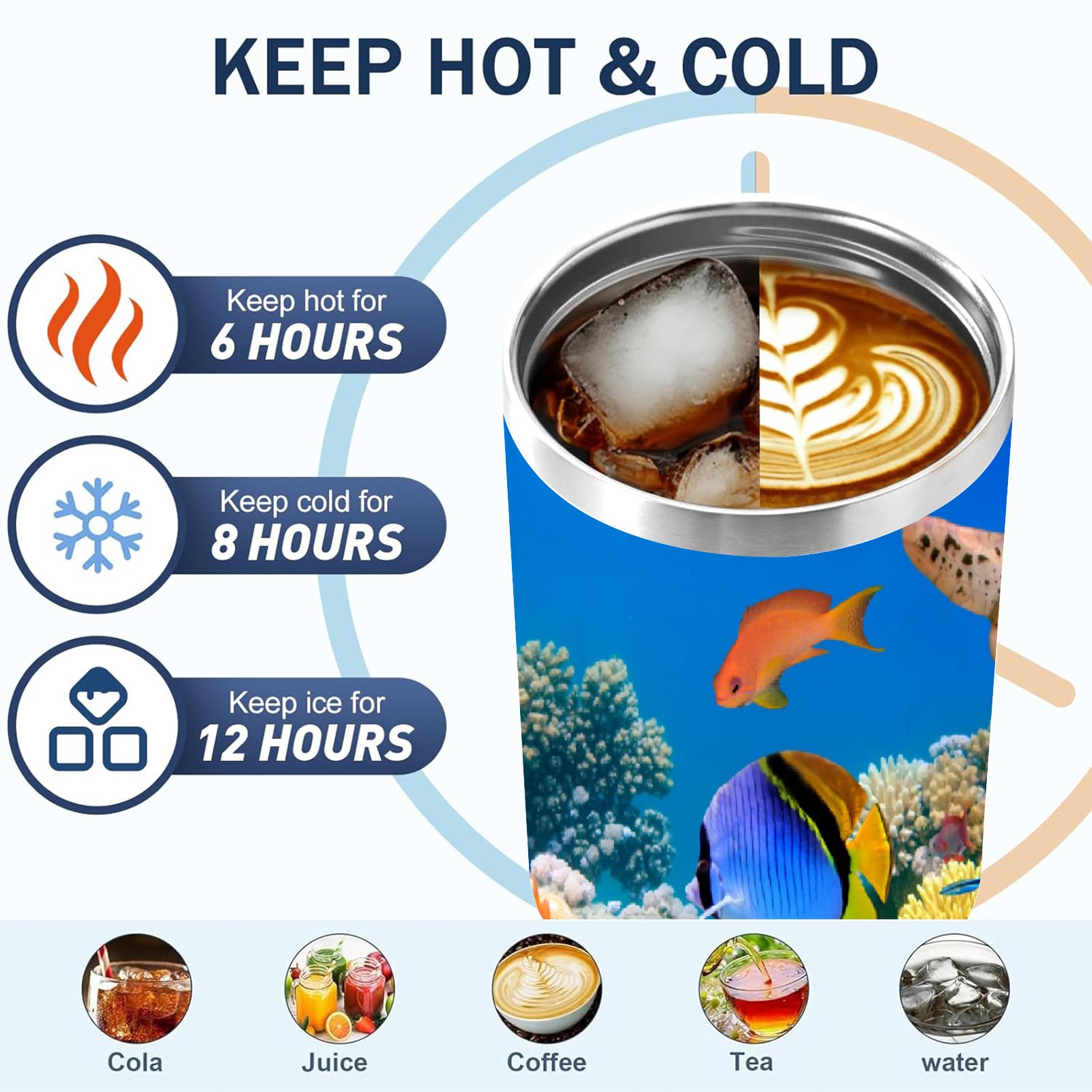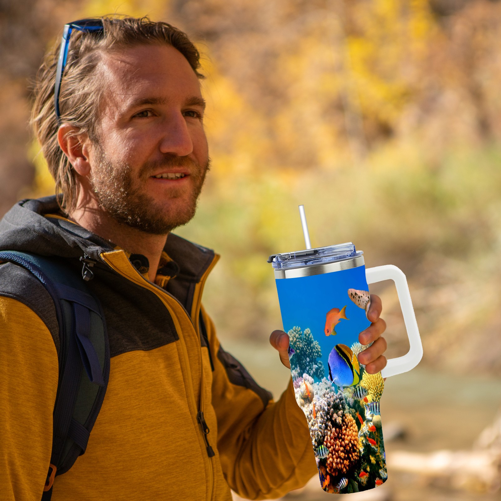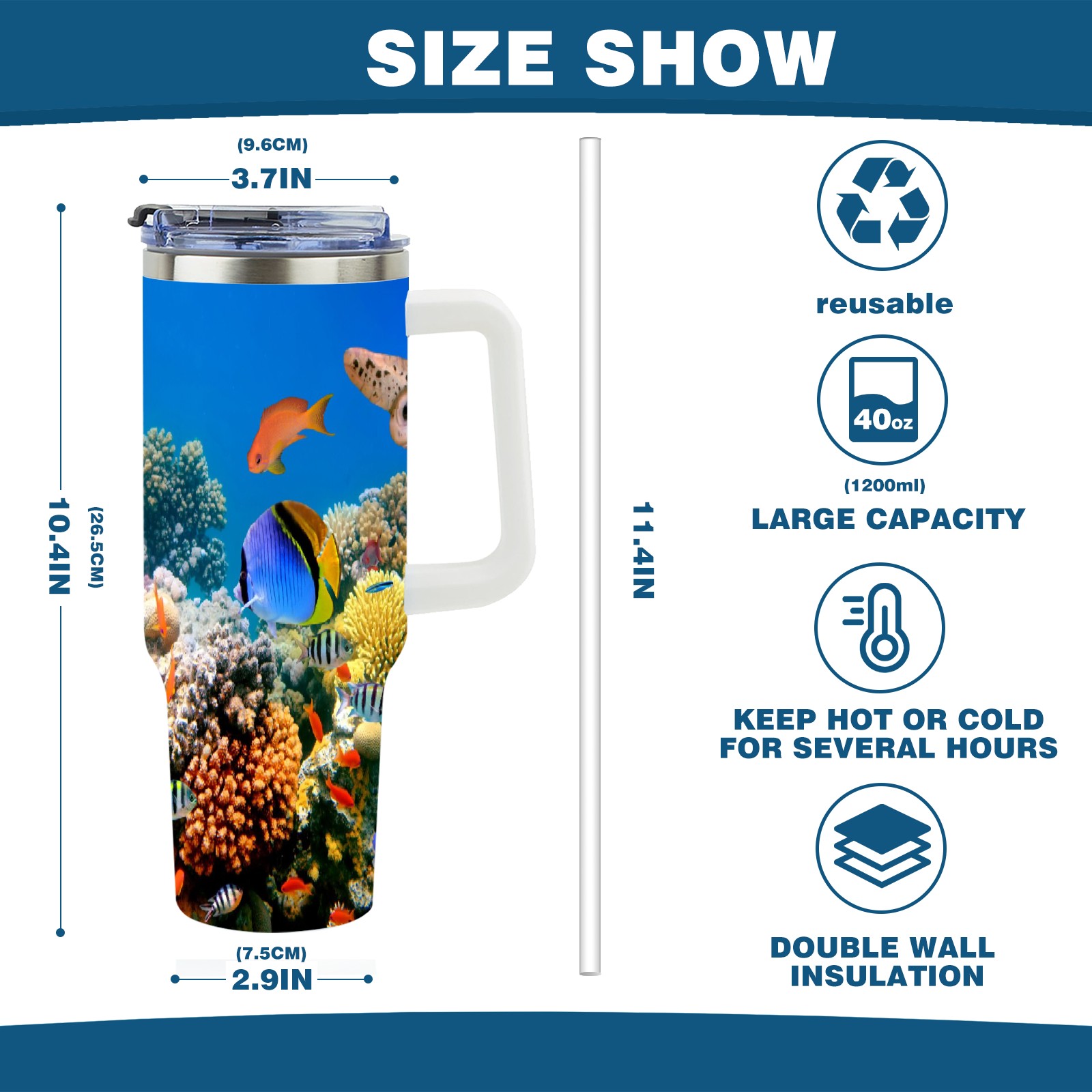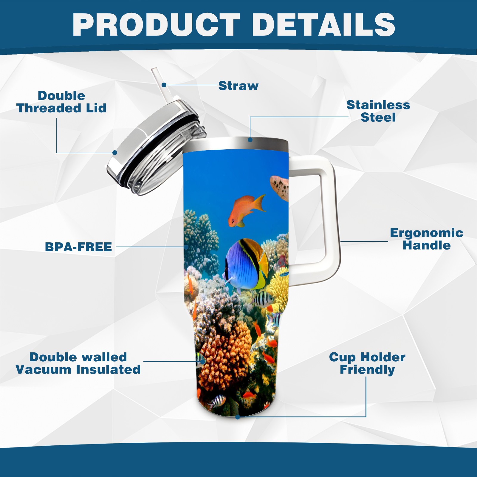 40 унций полностью напечатанный автомобильный стакан Ocean World Fish