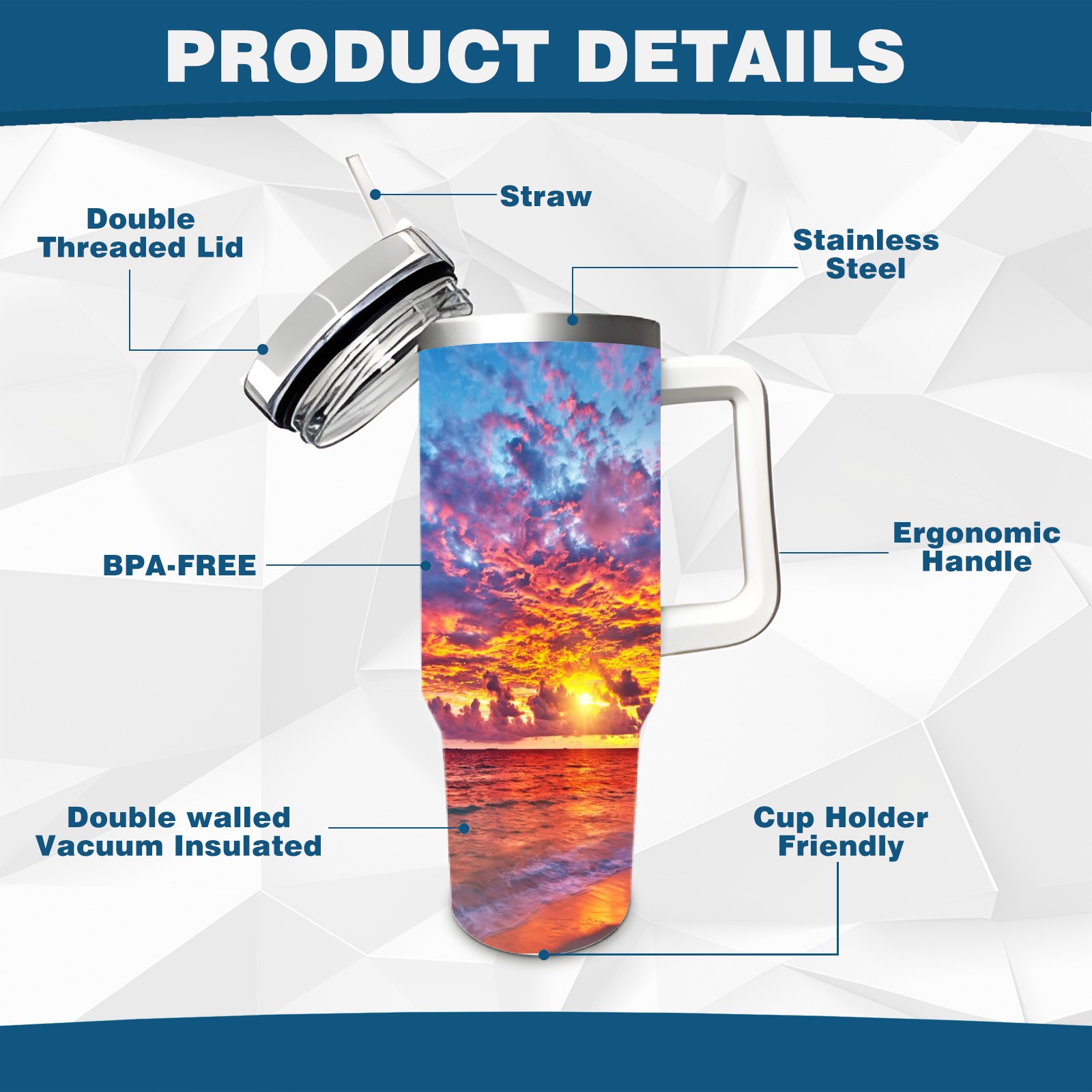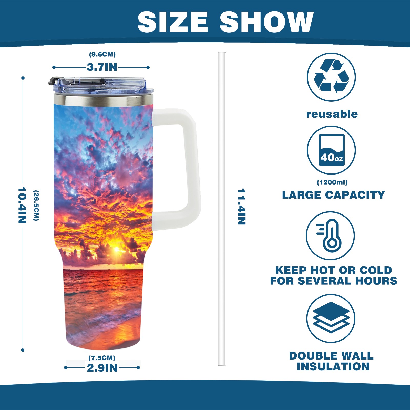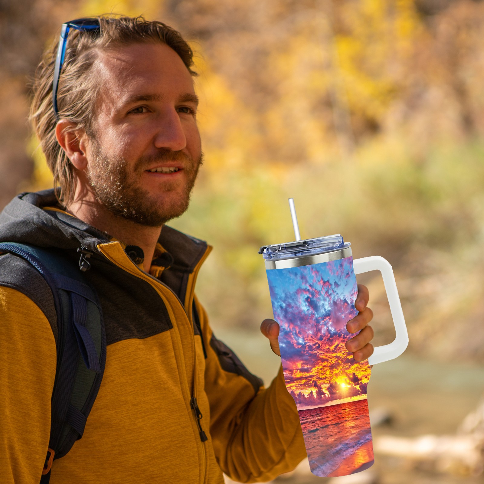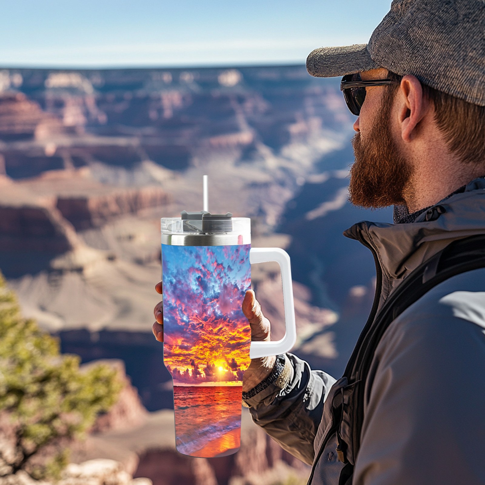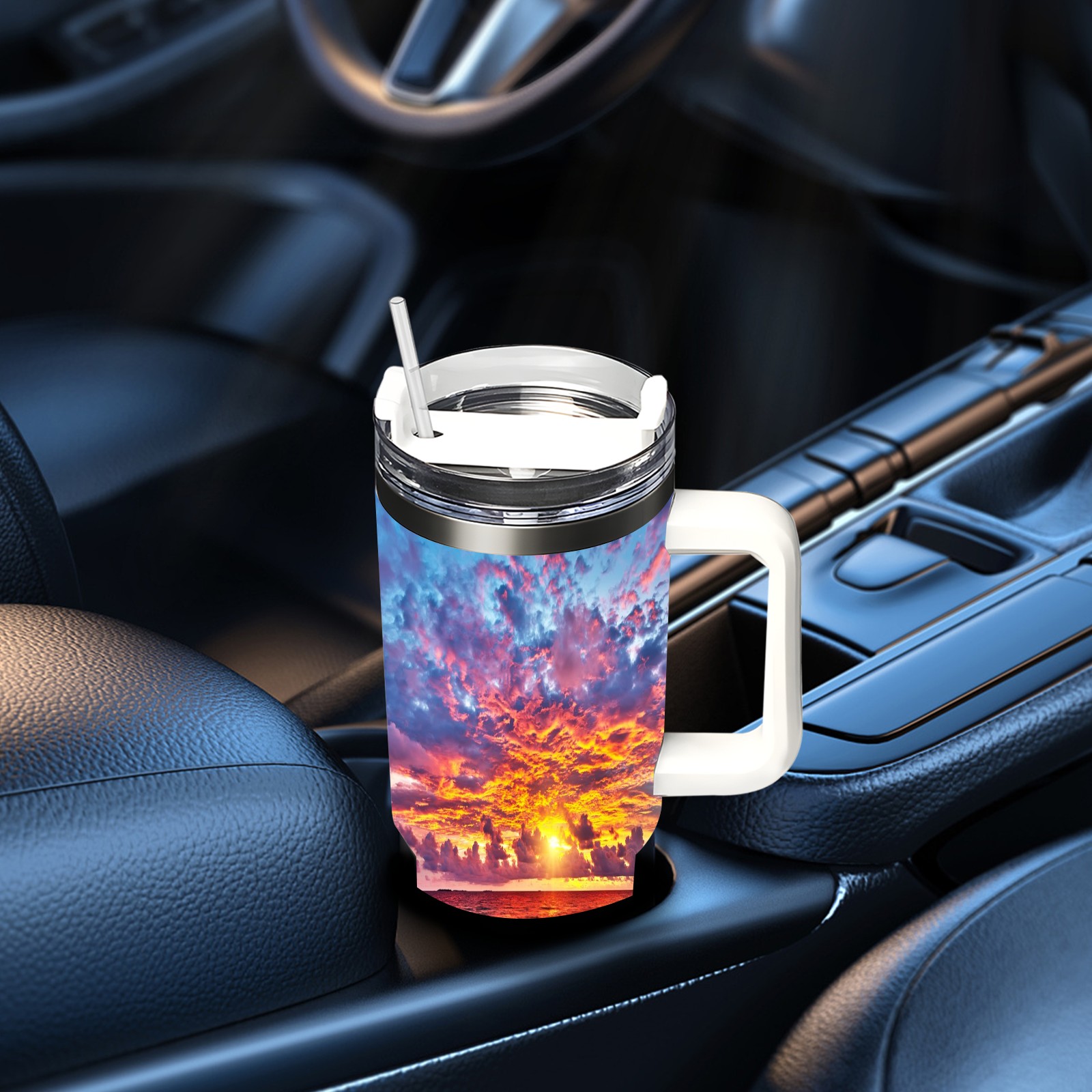 40 унций полностью напечатанный автомобильный стакан Beach Scenery Sunset