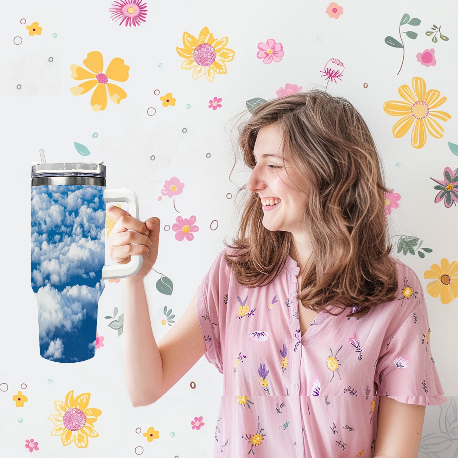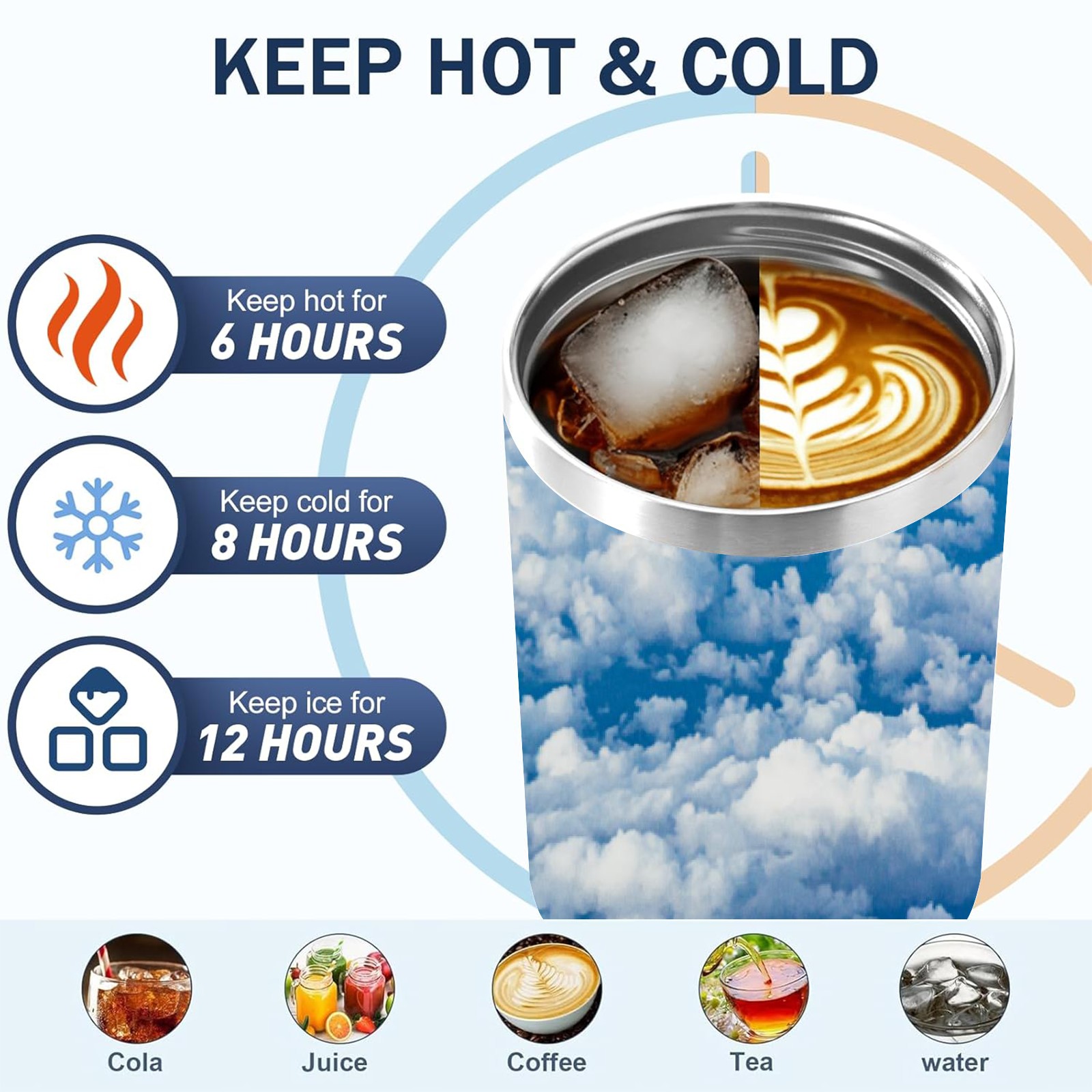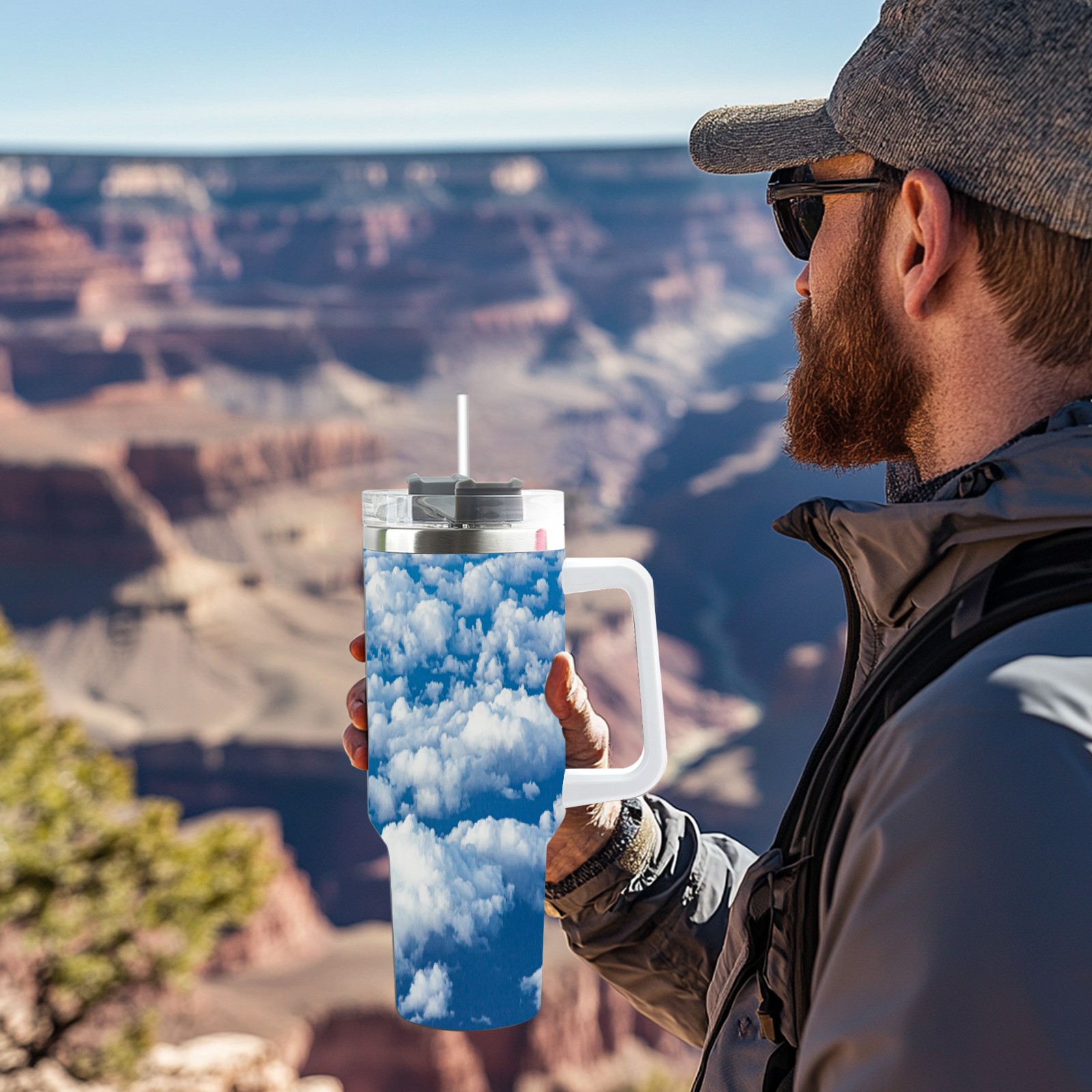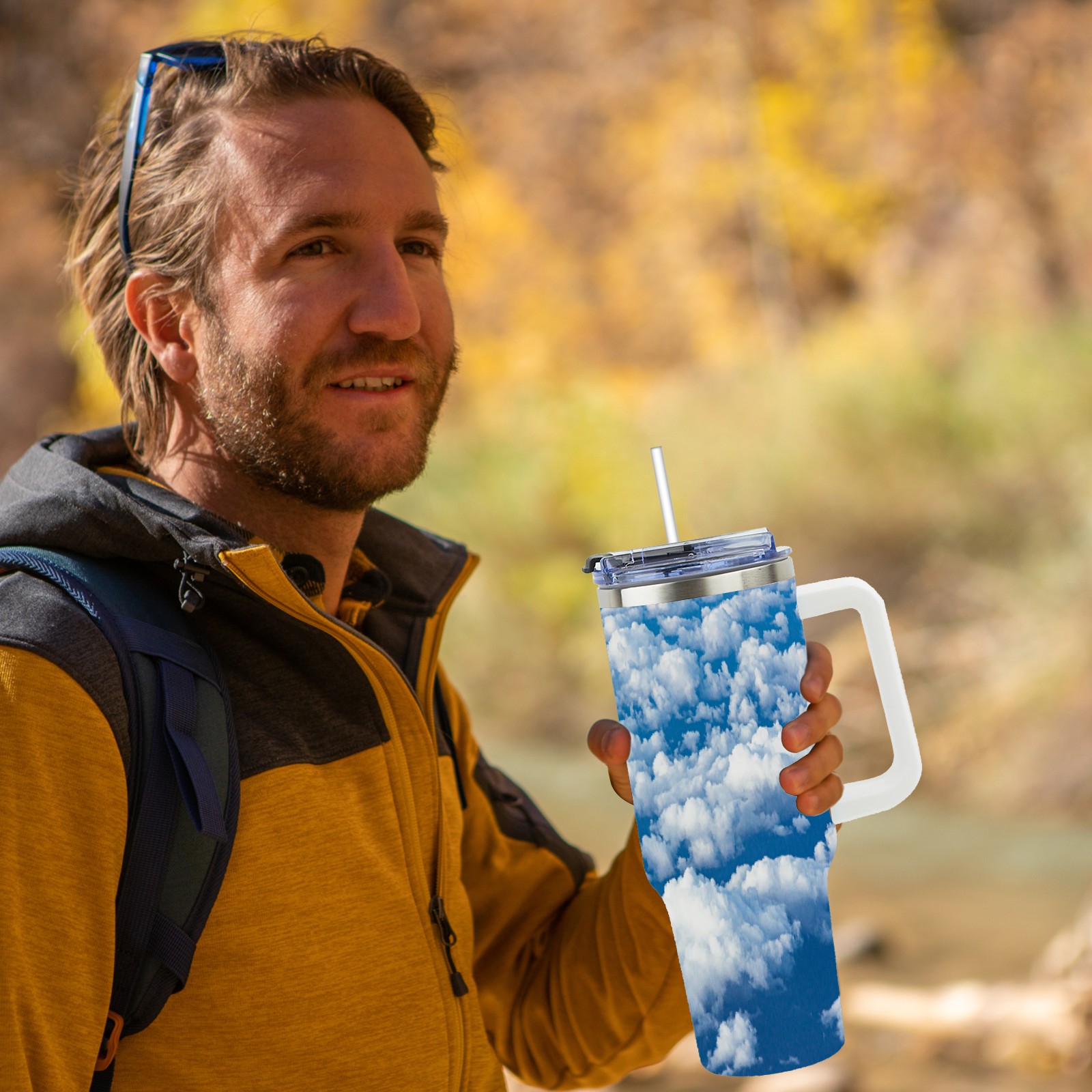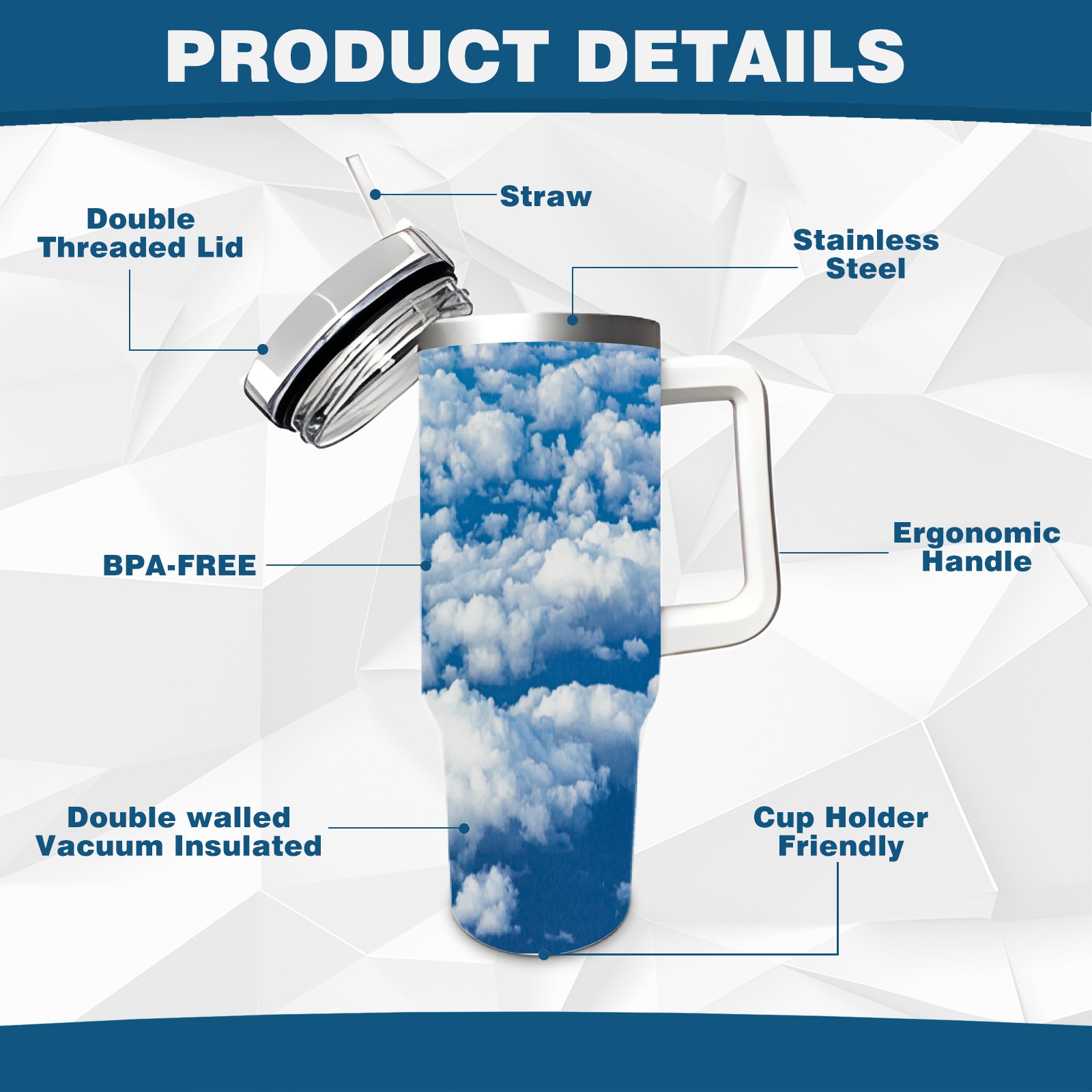 40 унций полностью напечатанный автомобильный стакан Blue Sky And White Clouds