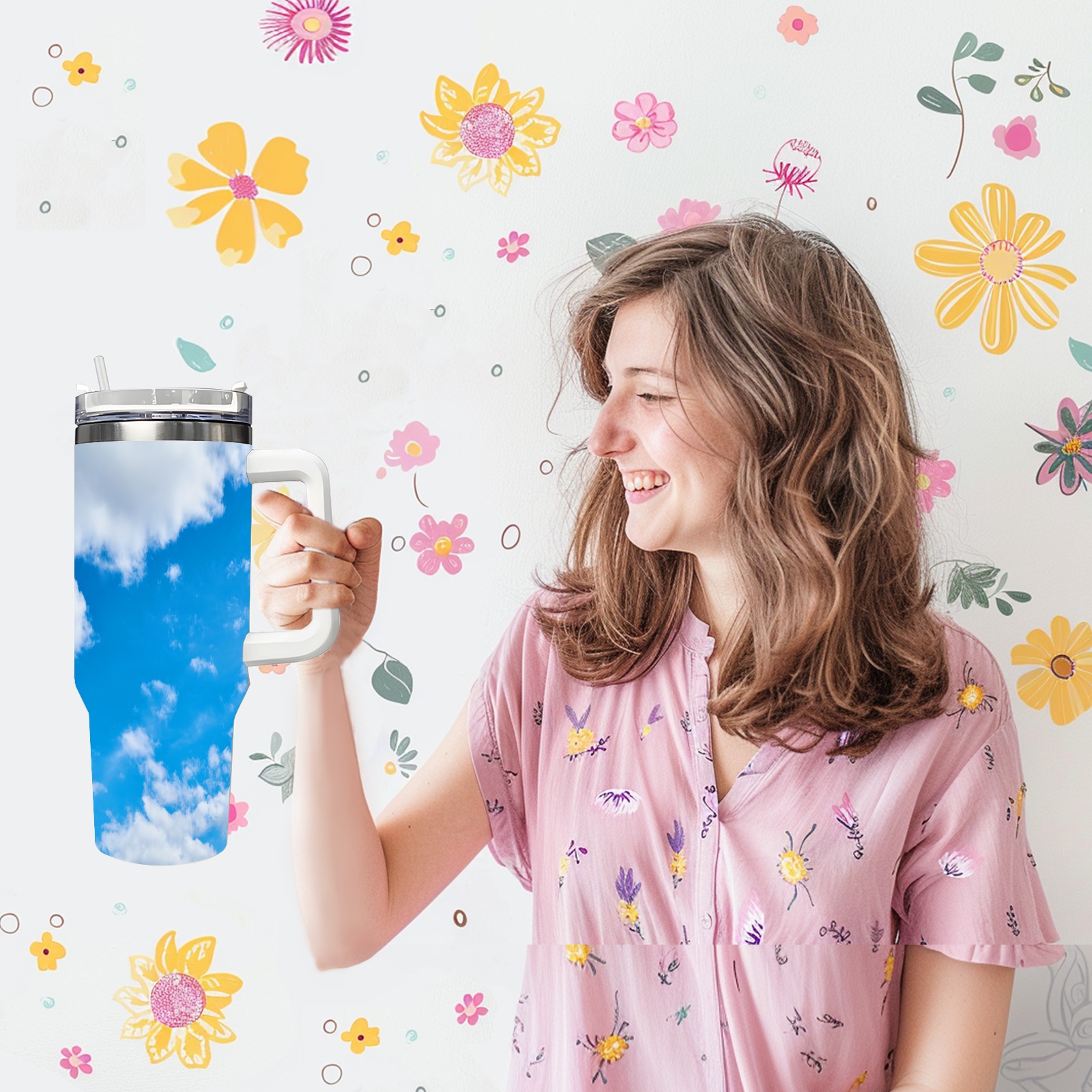 40 унций полностью напечатанный автомобильный стакан Sky Blue Clouds Nature Amazing