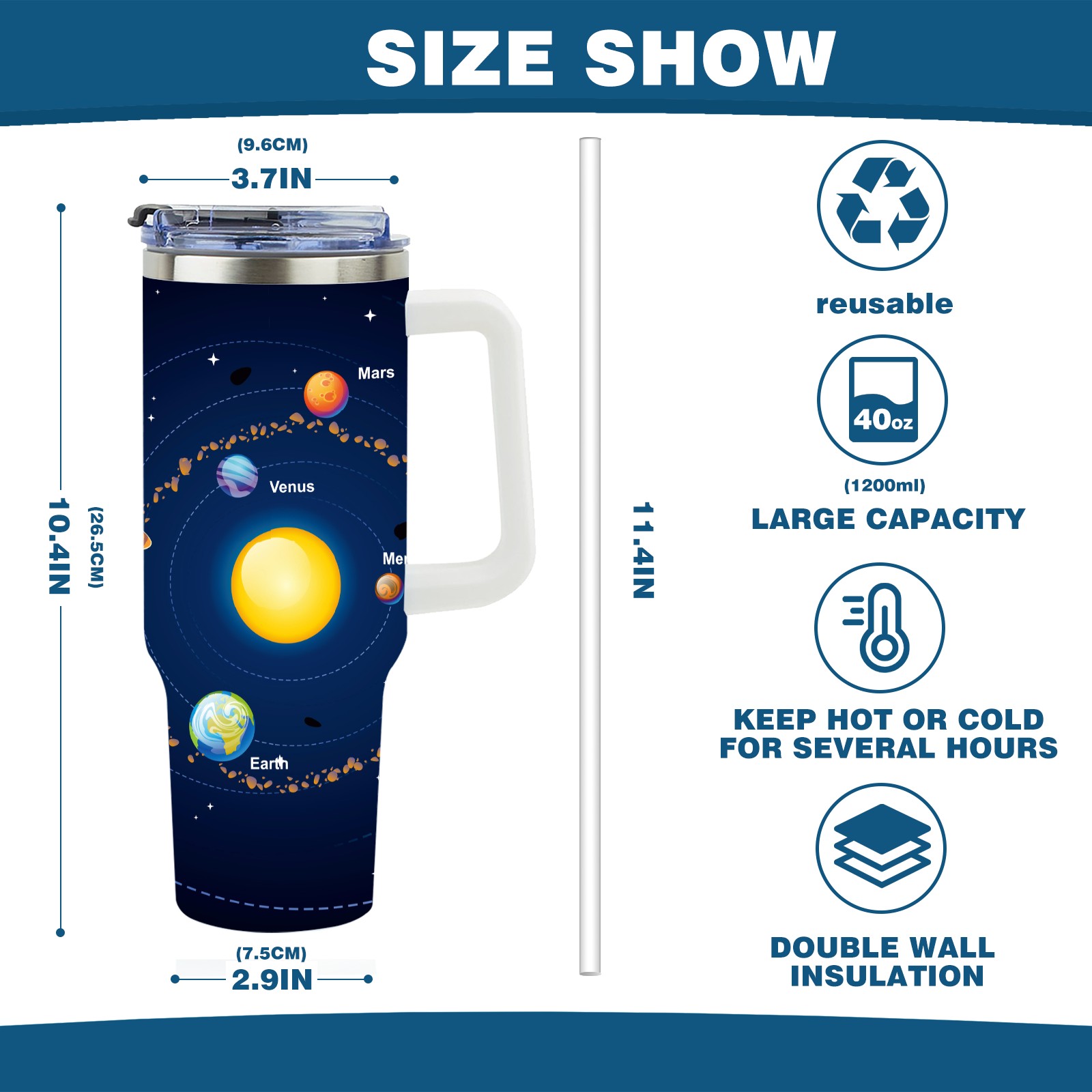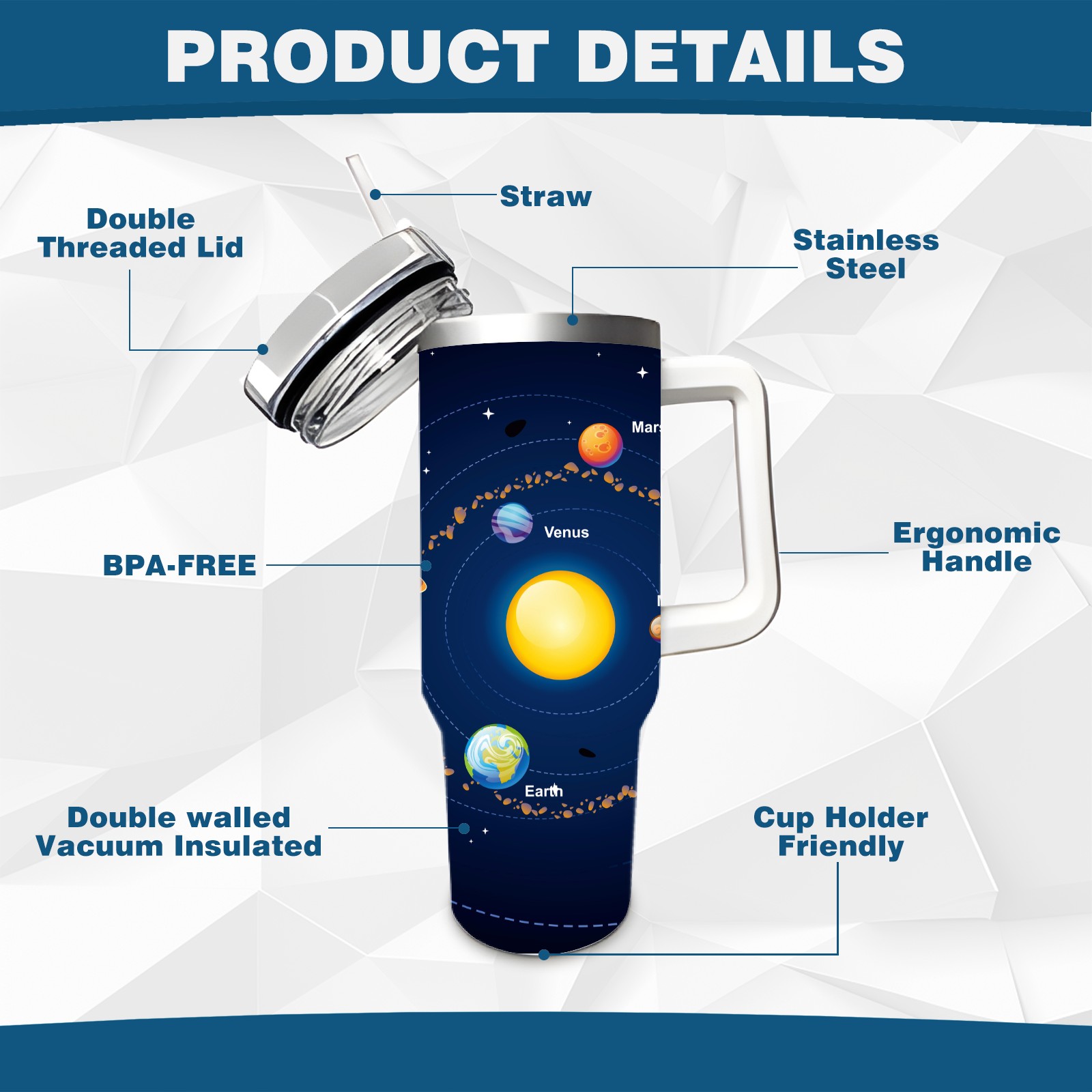 40 унций полностью напечатанный автомобильный стакан Solar System