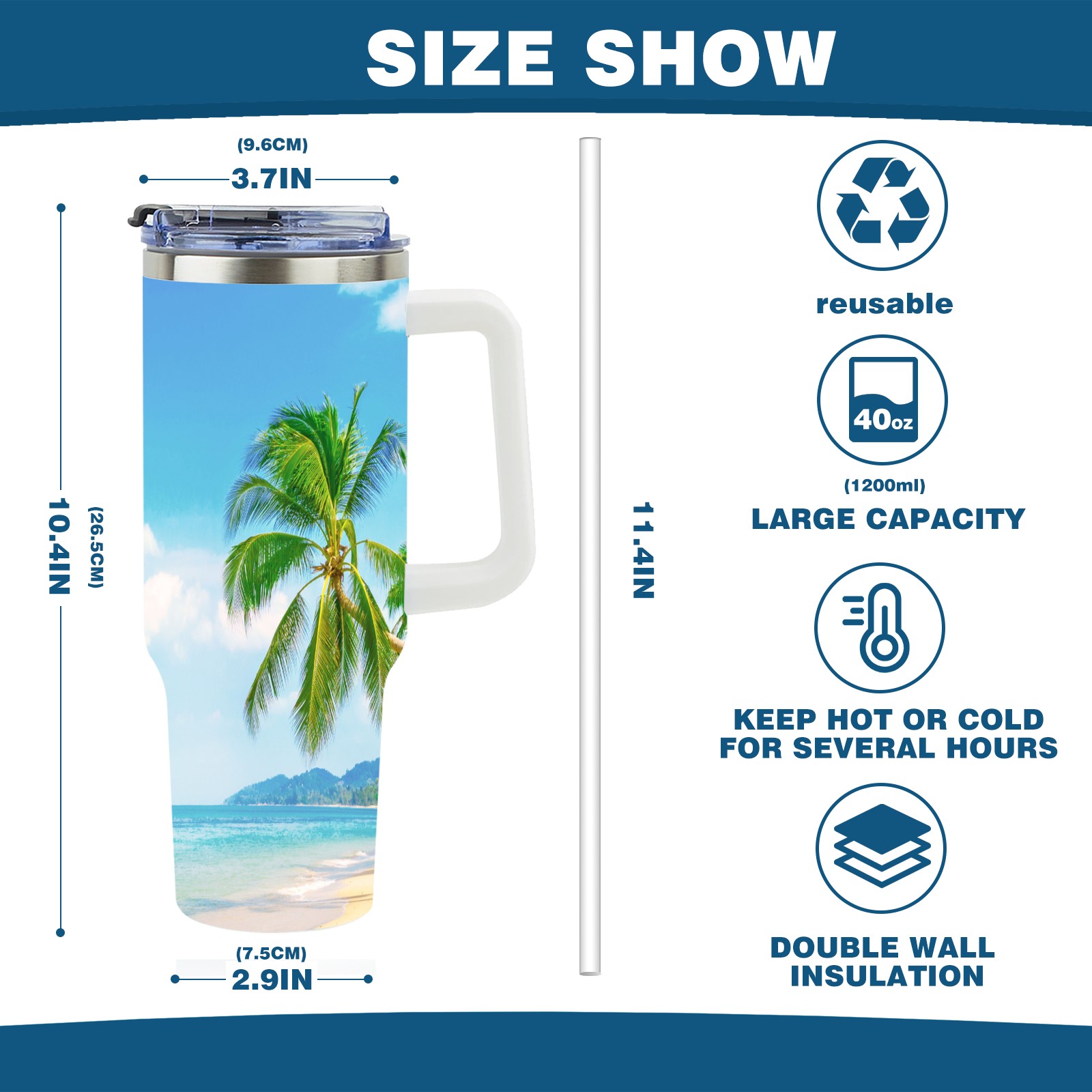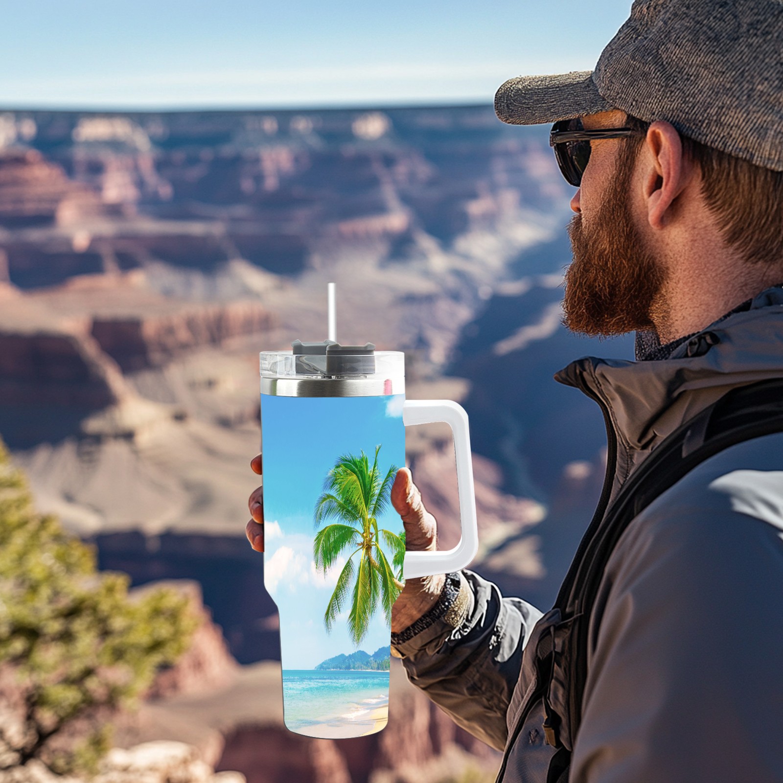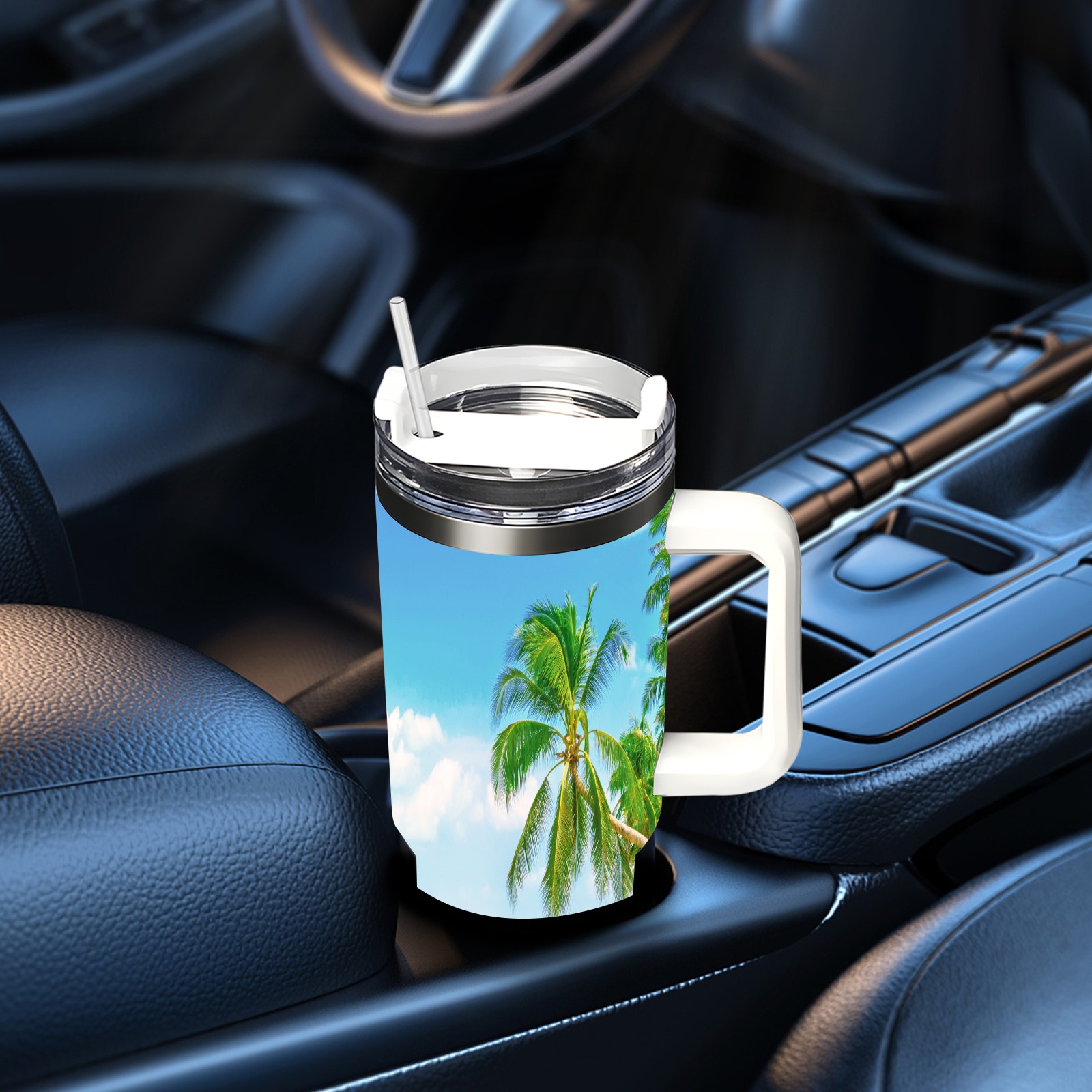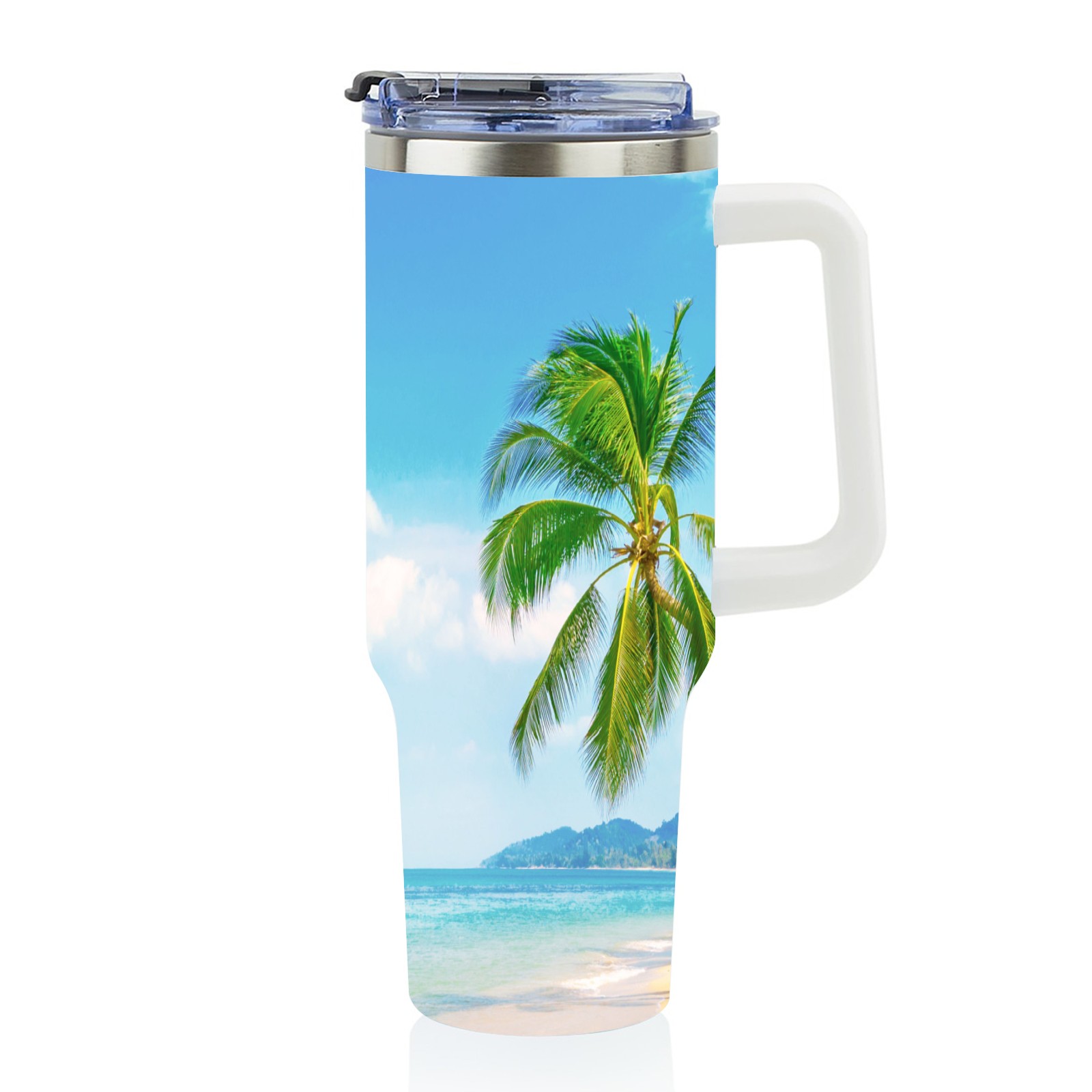 40 унций полностью напечатанный автомобильный стакан Summer Sea Beach Sunny Holiday Tropical Palm Tree