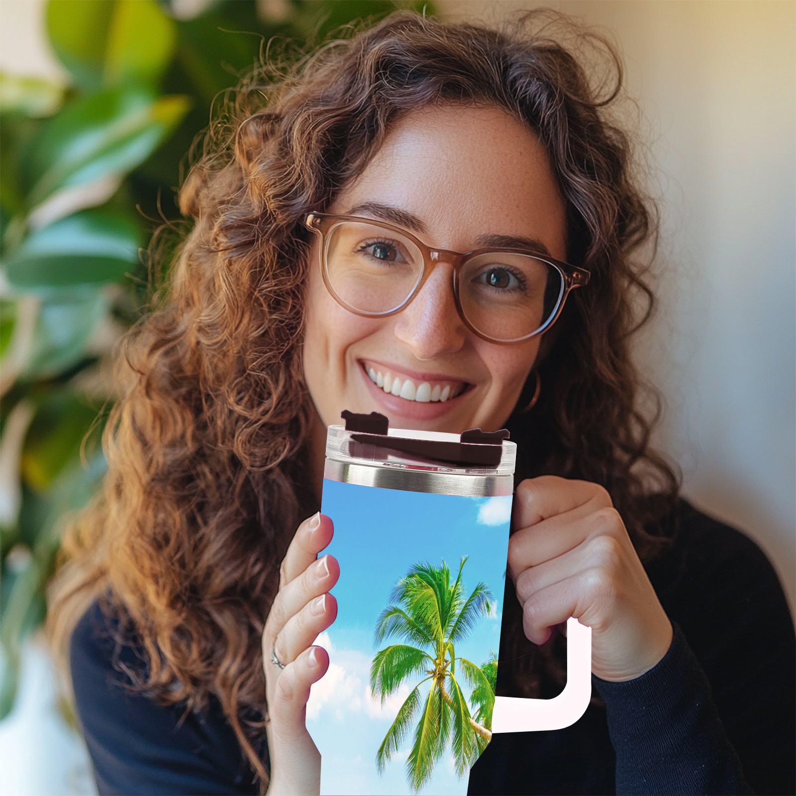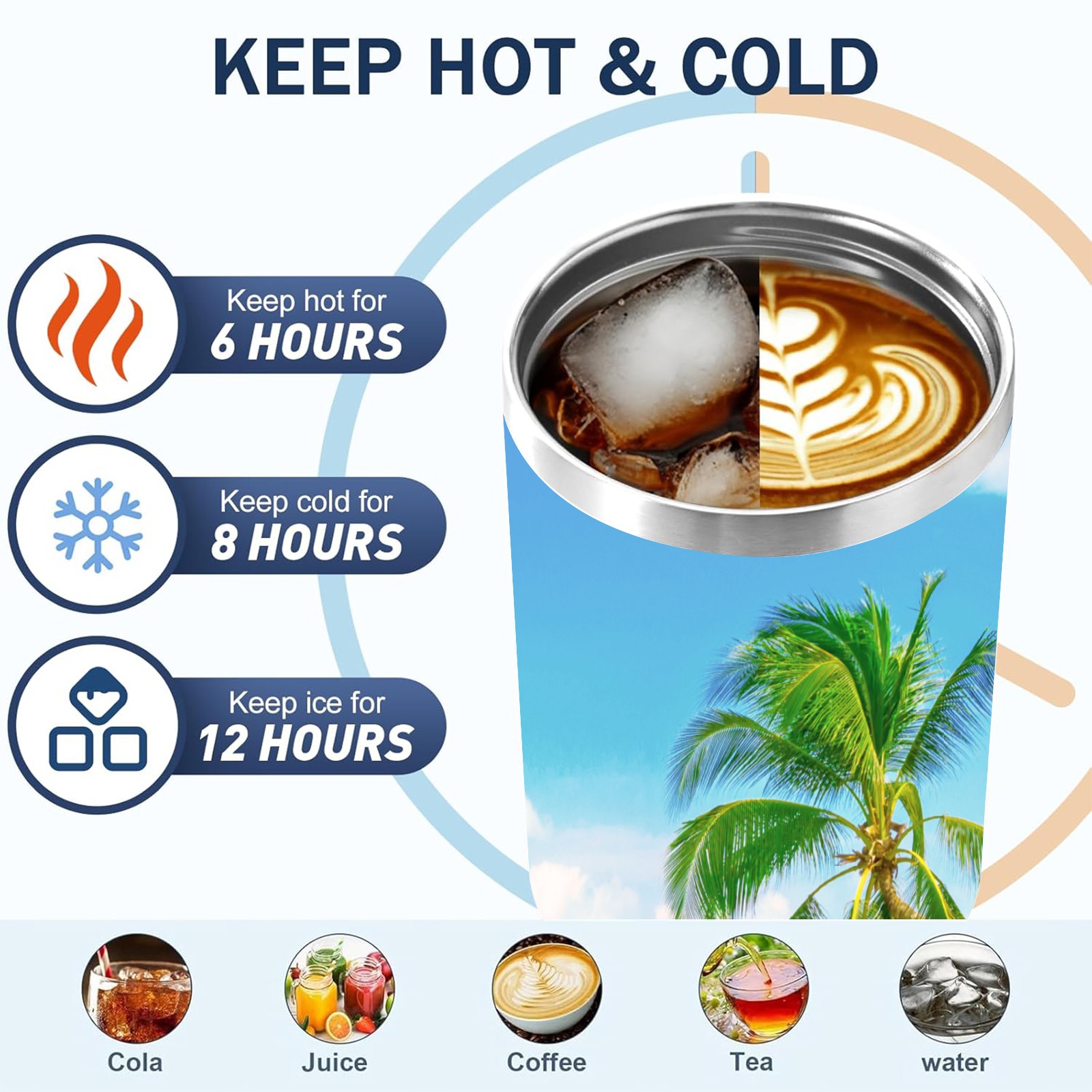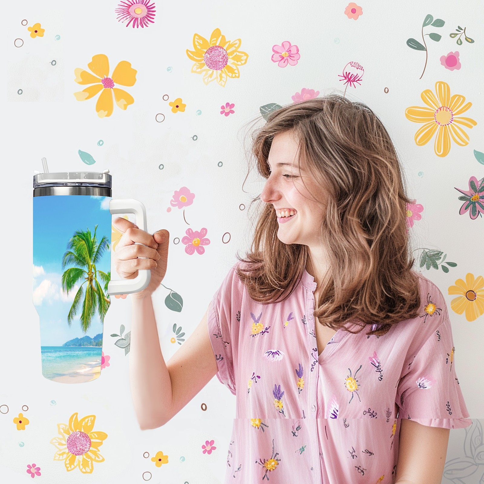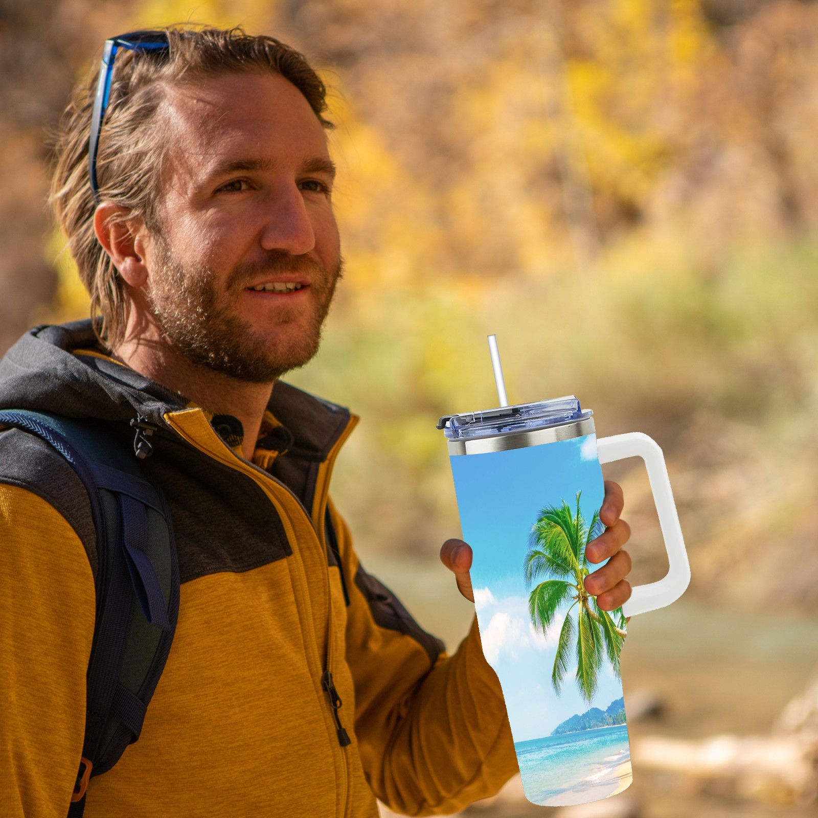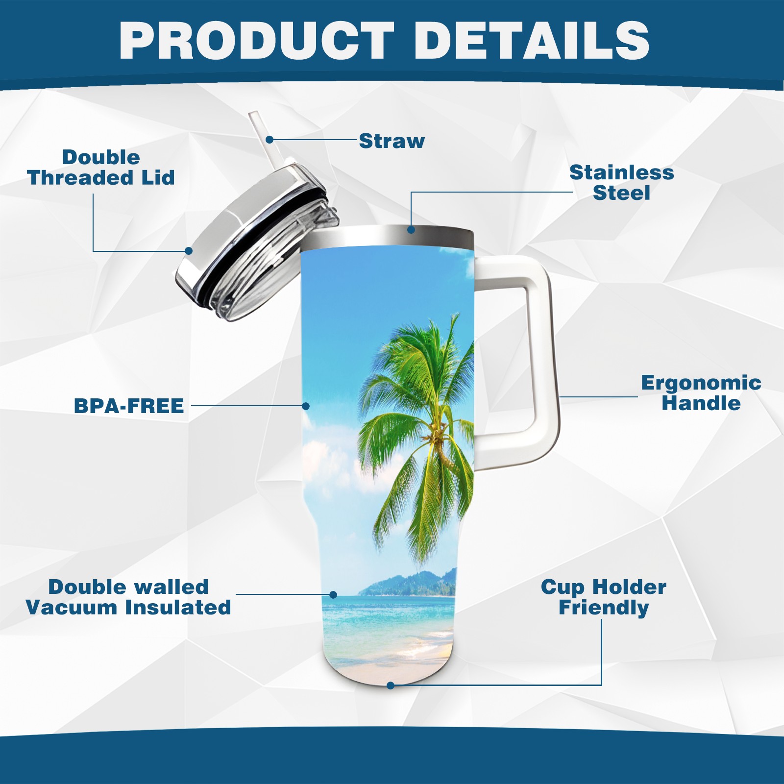 40 унций полностью напечатанный автомобильный стакан Summer Sea Beach Sunny Holiday Tropical Palm Tree